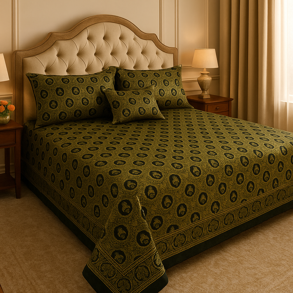 Bring the timeless beauty of Banaras into your home with our luxurious Banarasi Brocade Bed Cover Sets. Made from intricately woven brocade fabric featuring traditional zari work, floral and elephant motifs, and regal textures, these sets add a majestic touch to any bedroom. Designed to combine opulence with comfort, they reflect the grandeur of Indian craftsmanship.