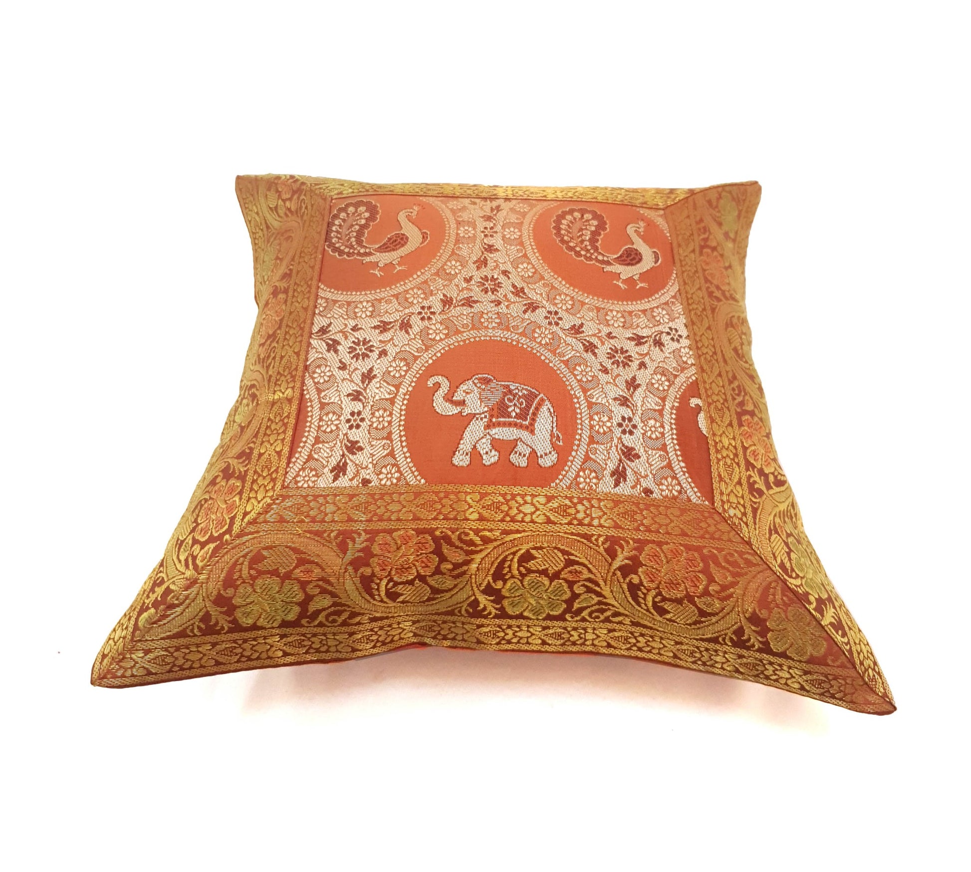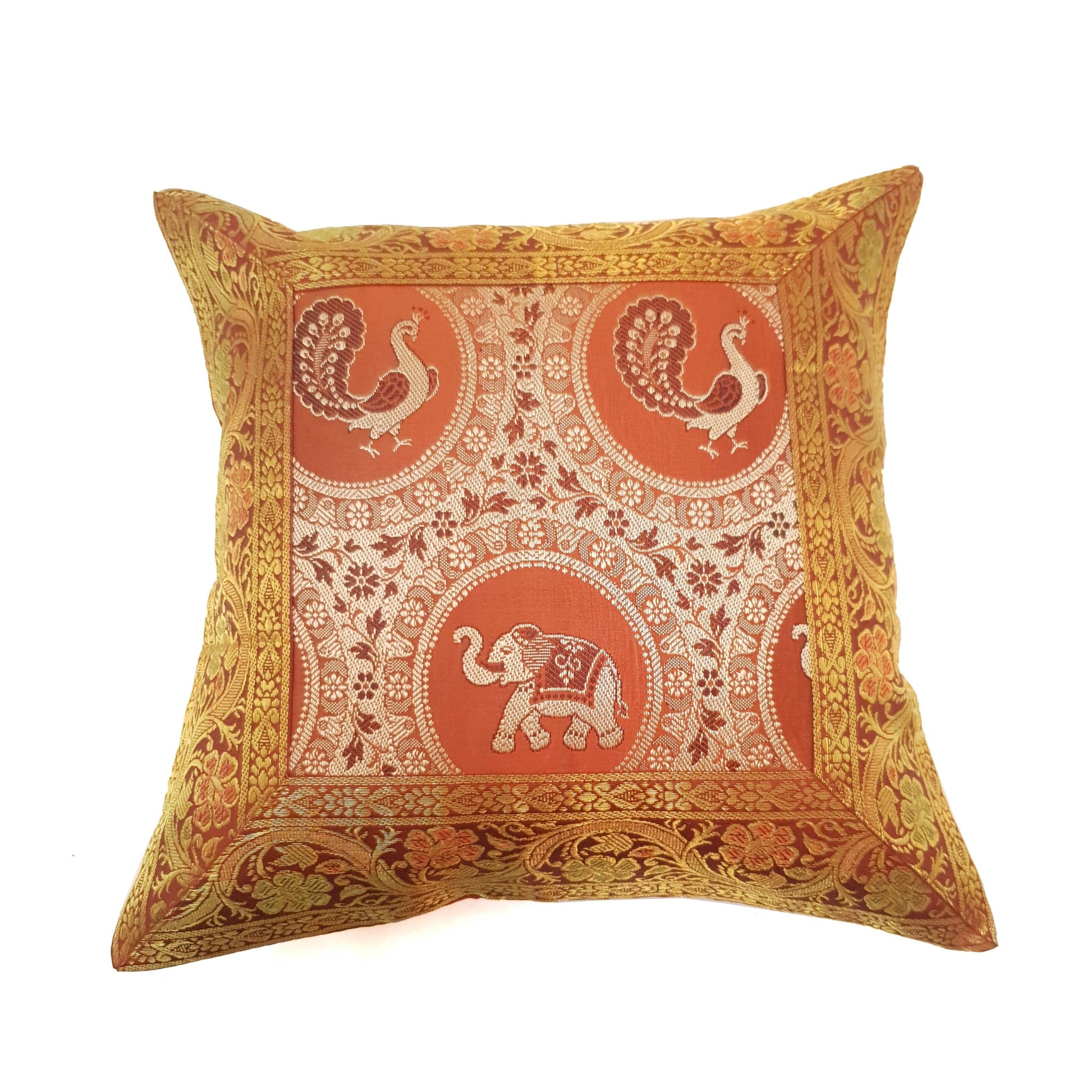 12x12 Inch Animal Cushion Pillow Covers Indian Woven Zari Brocade Banarasi Silk