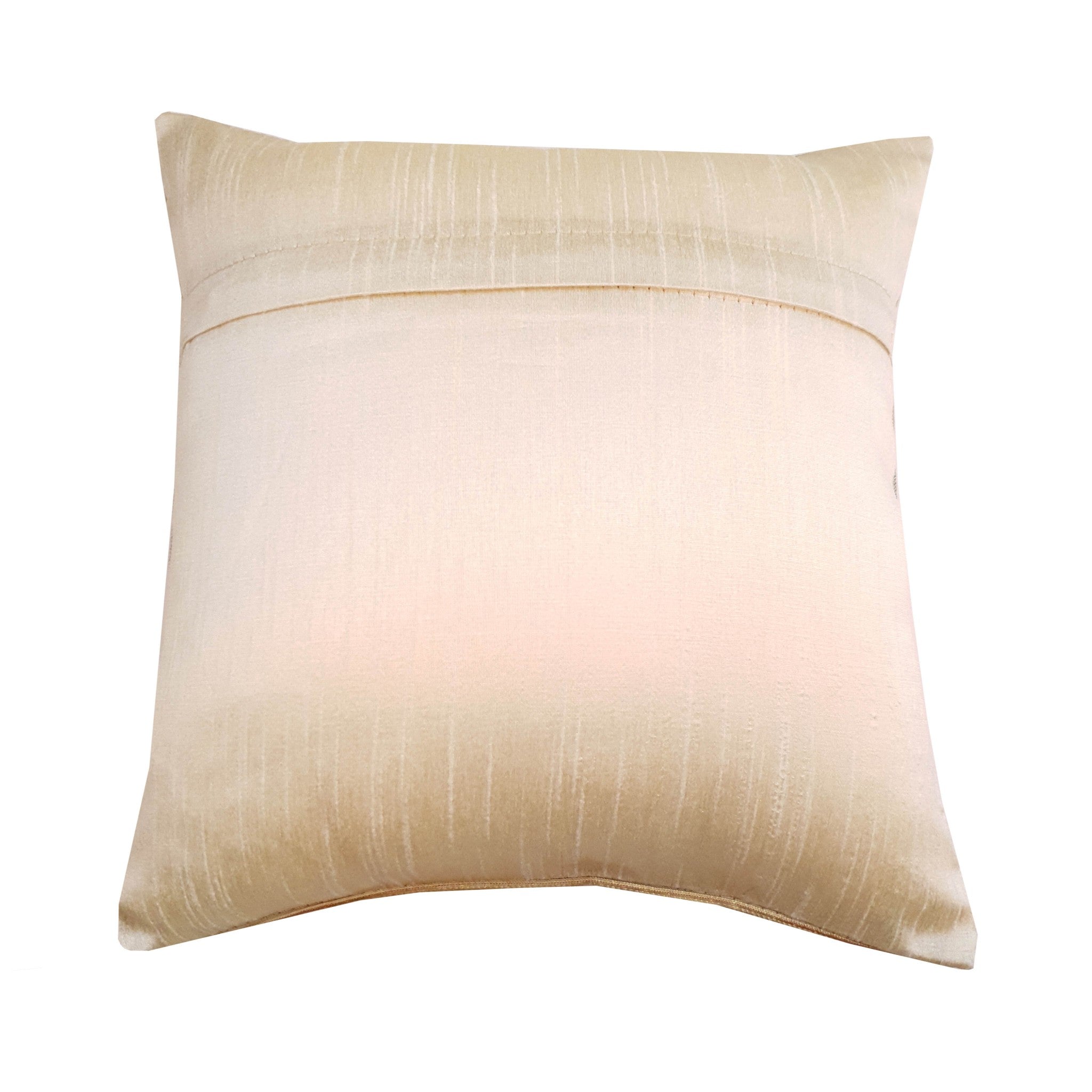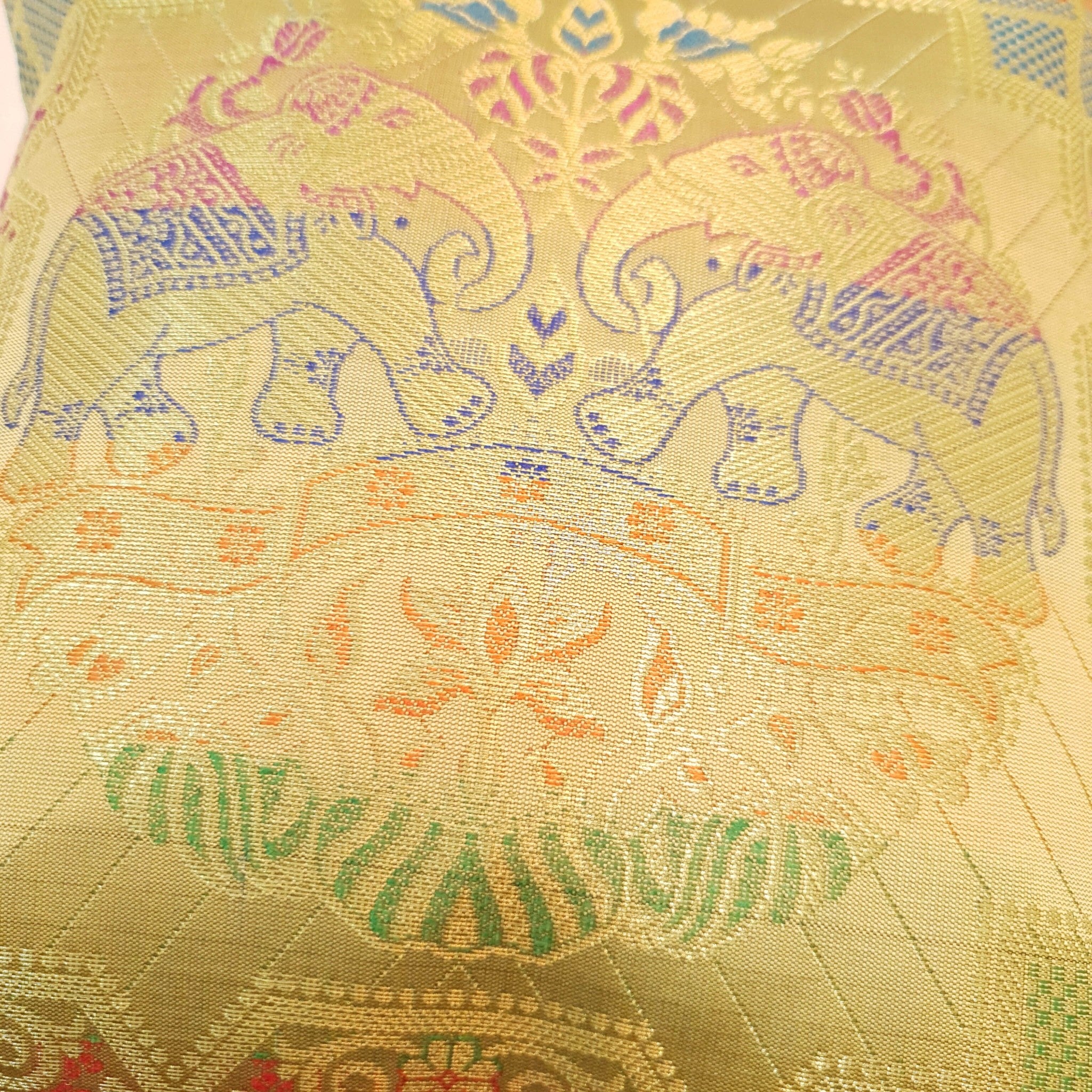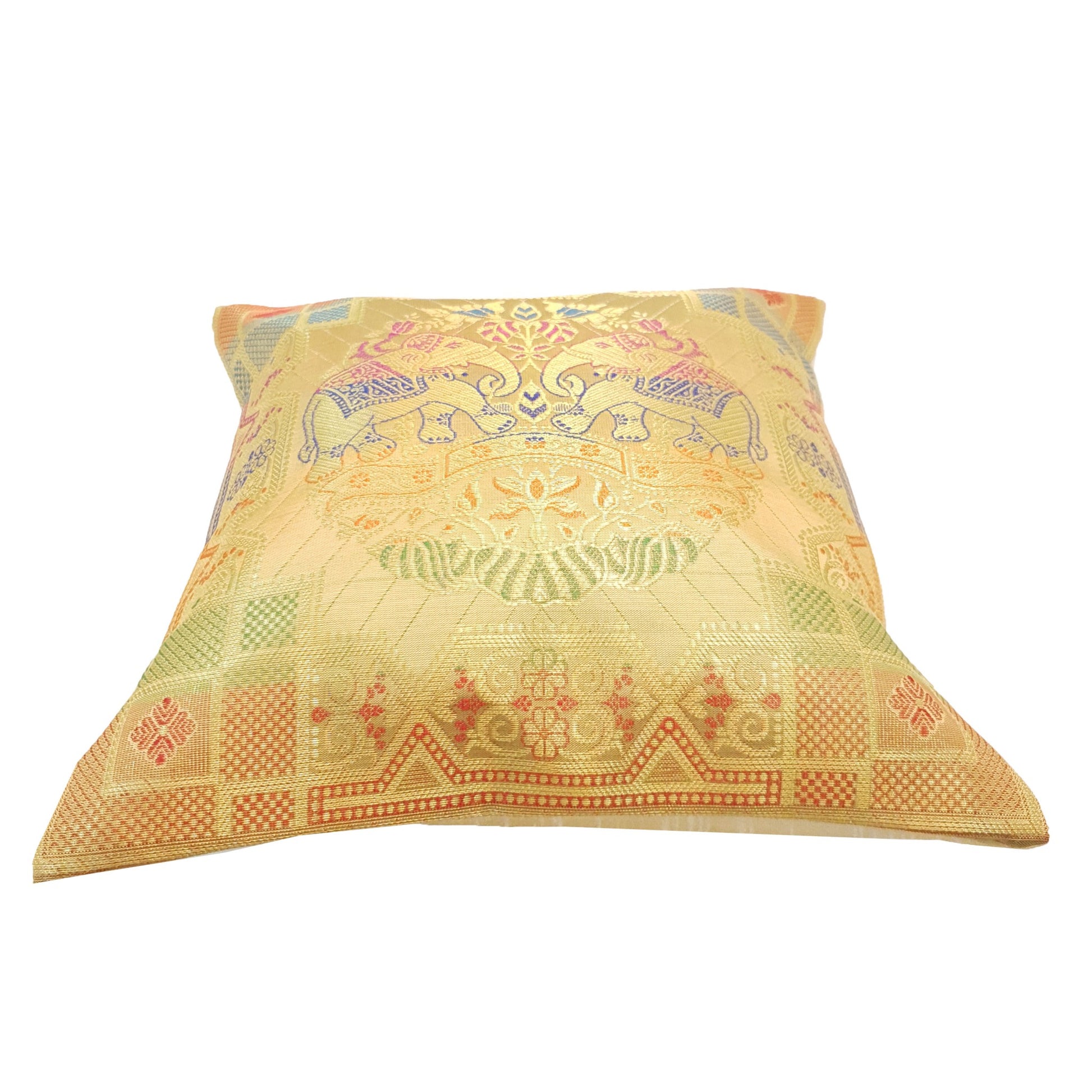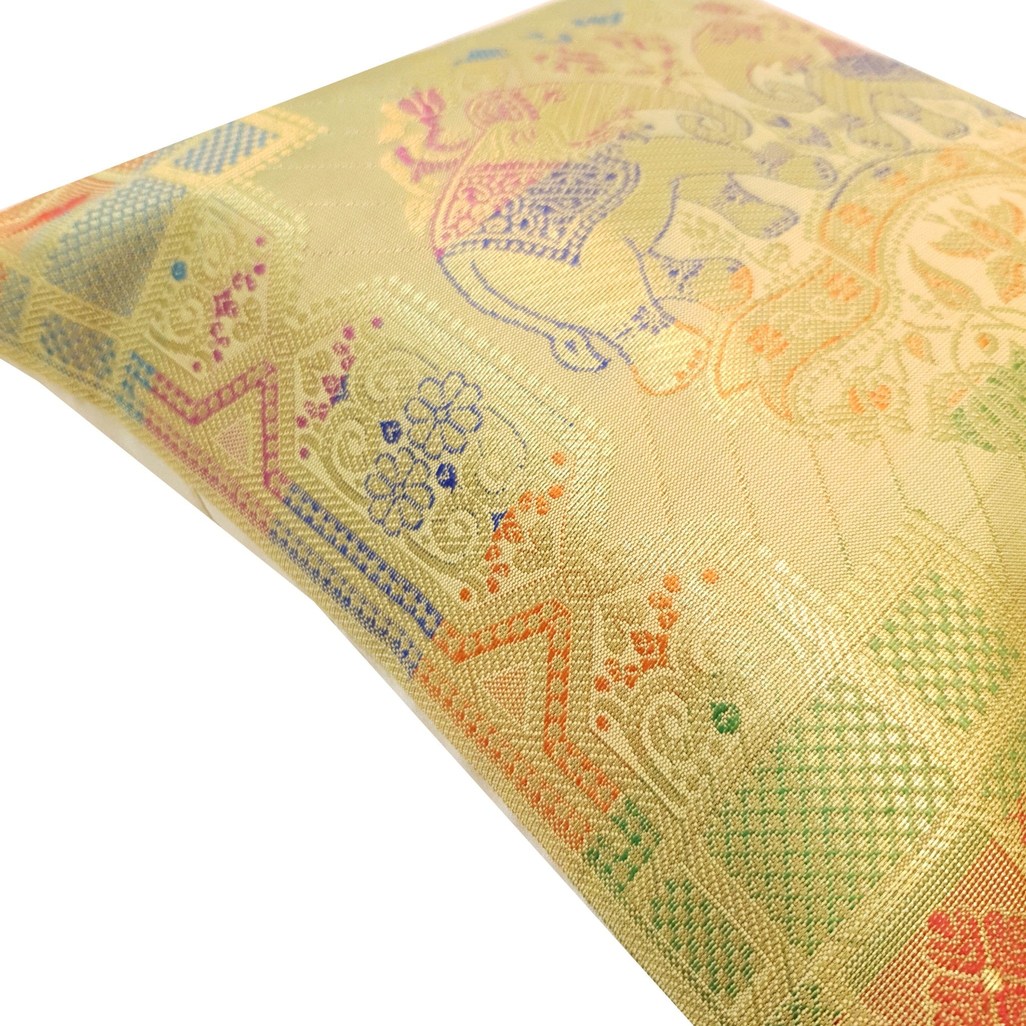 12x12 Inch Beige Cushion Cover Banarasi Indian Elephant Woven Zari Brocade Silk