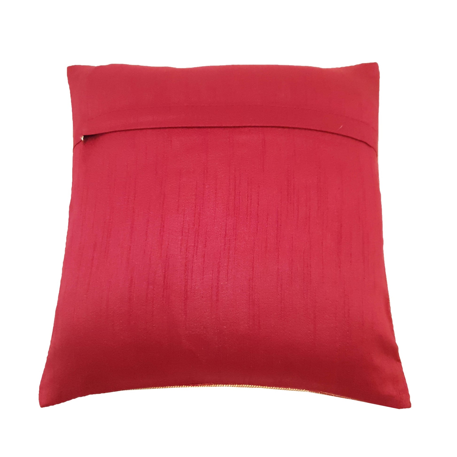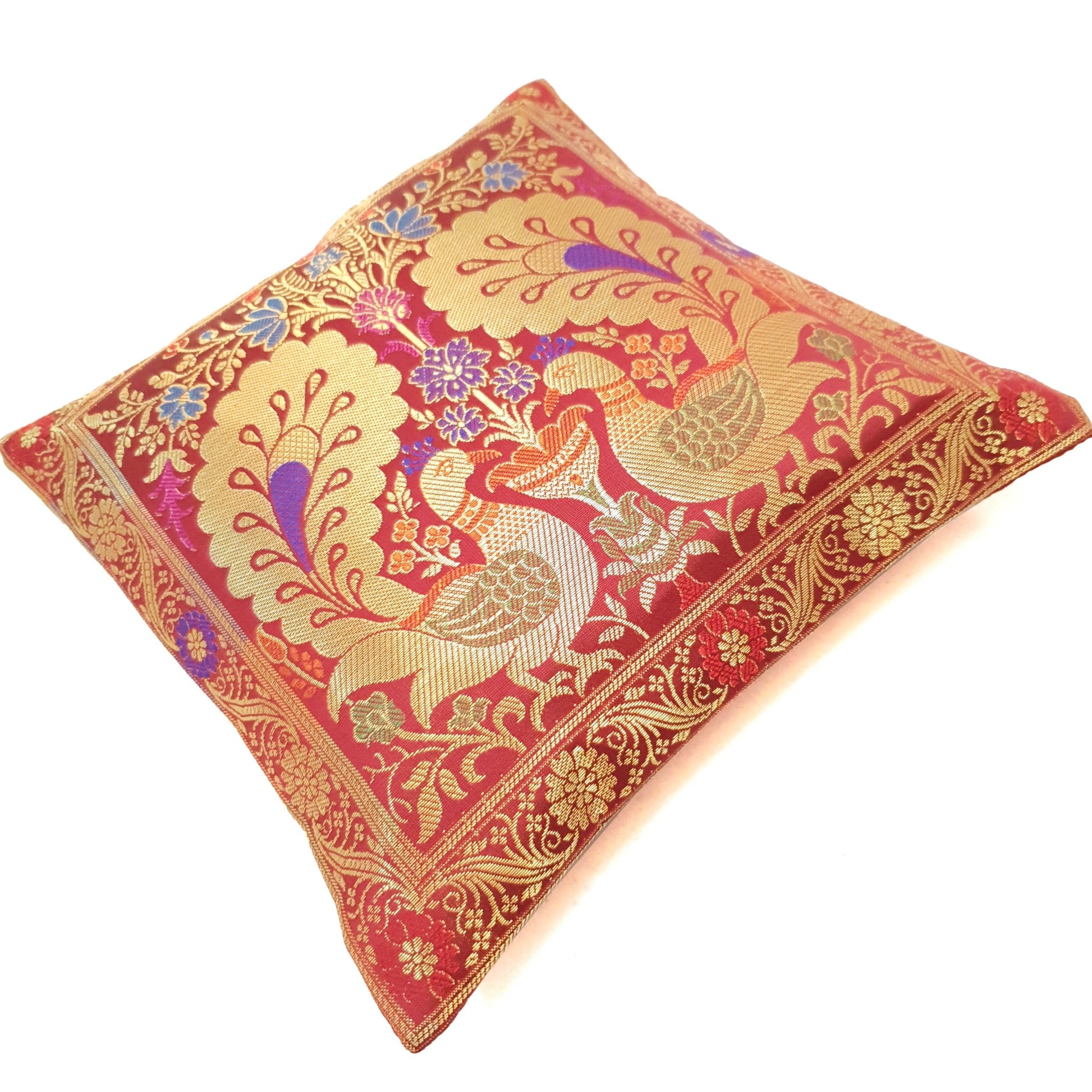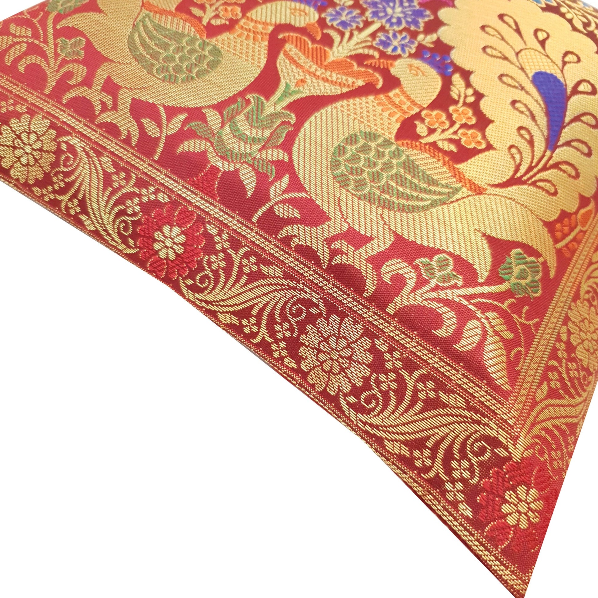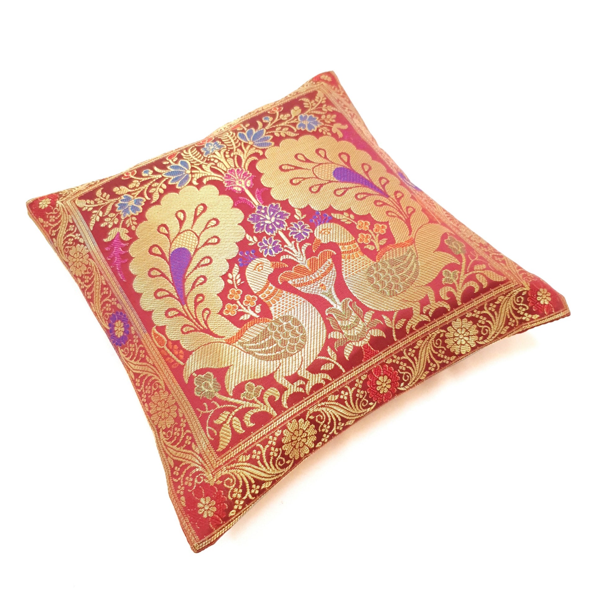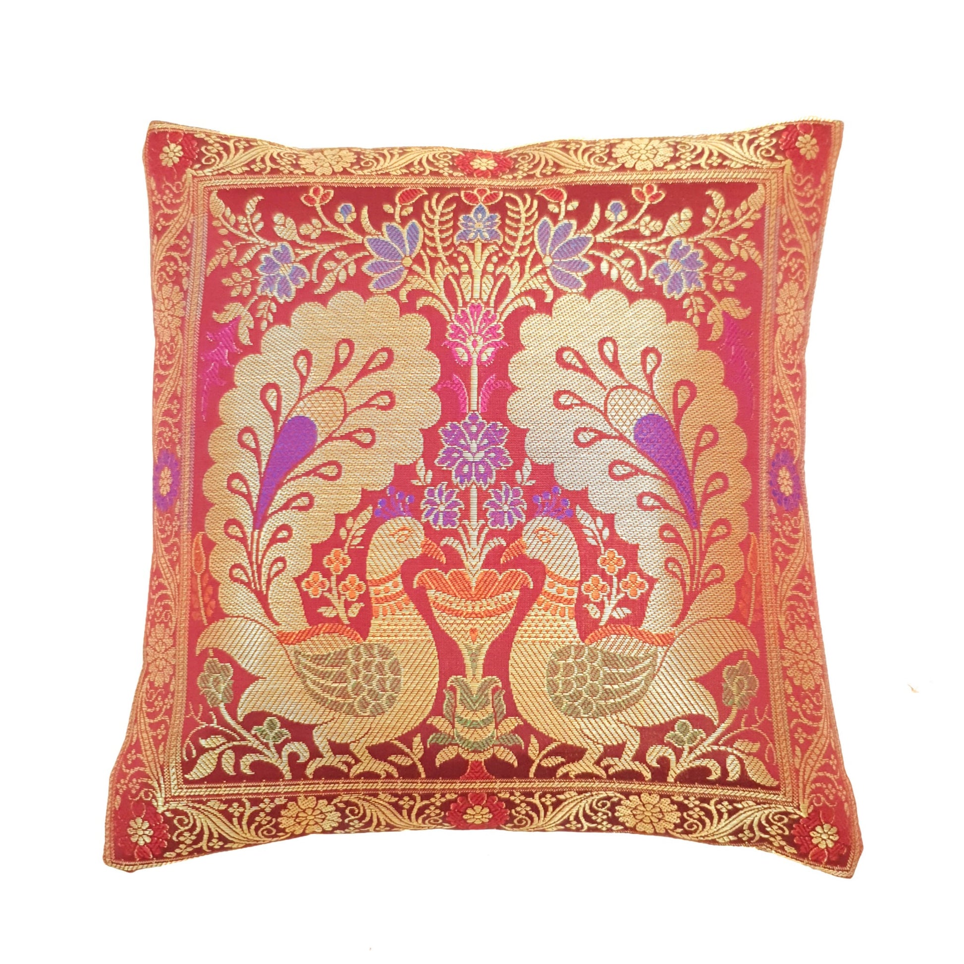 12x12 Inch Cushion Cover Banarasi Decor Woven Peacock Zari Brocade Silk Maroon