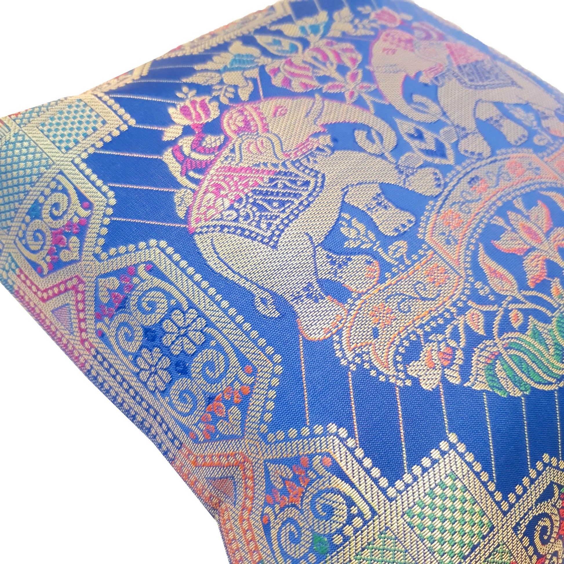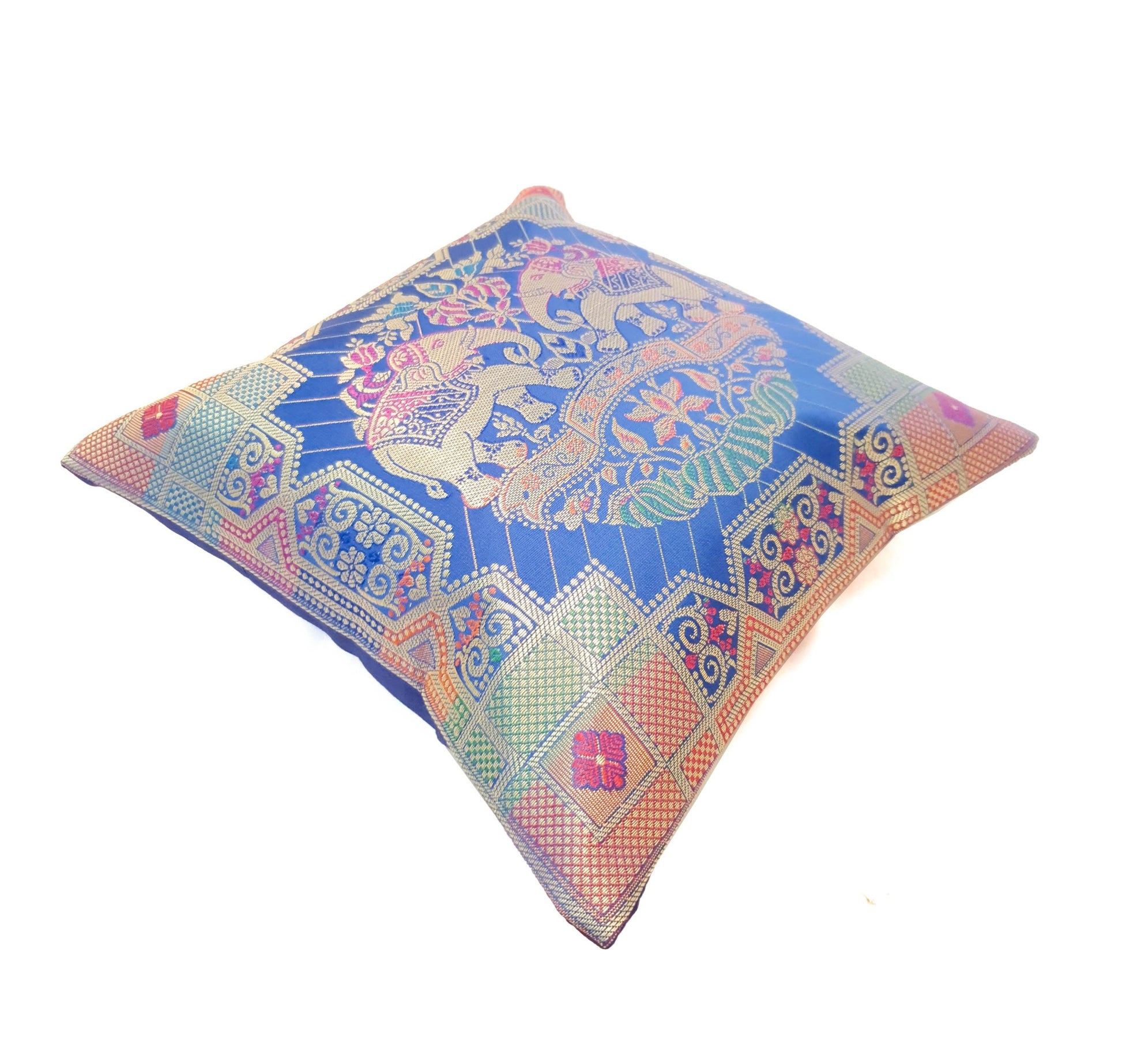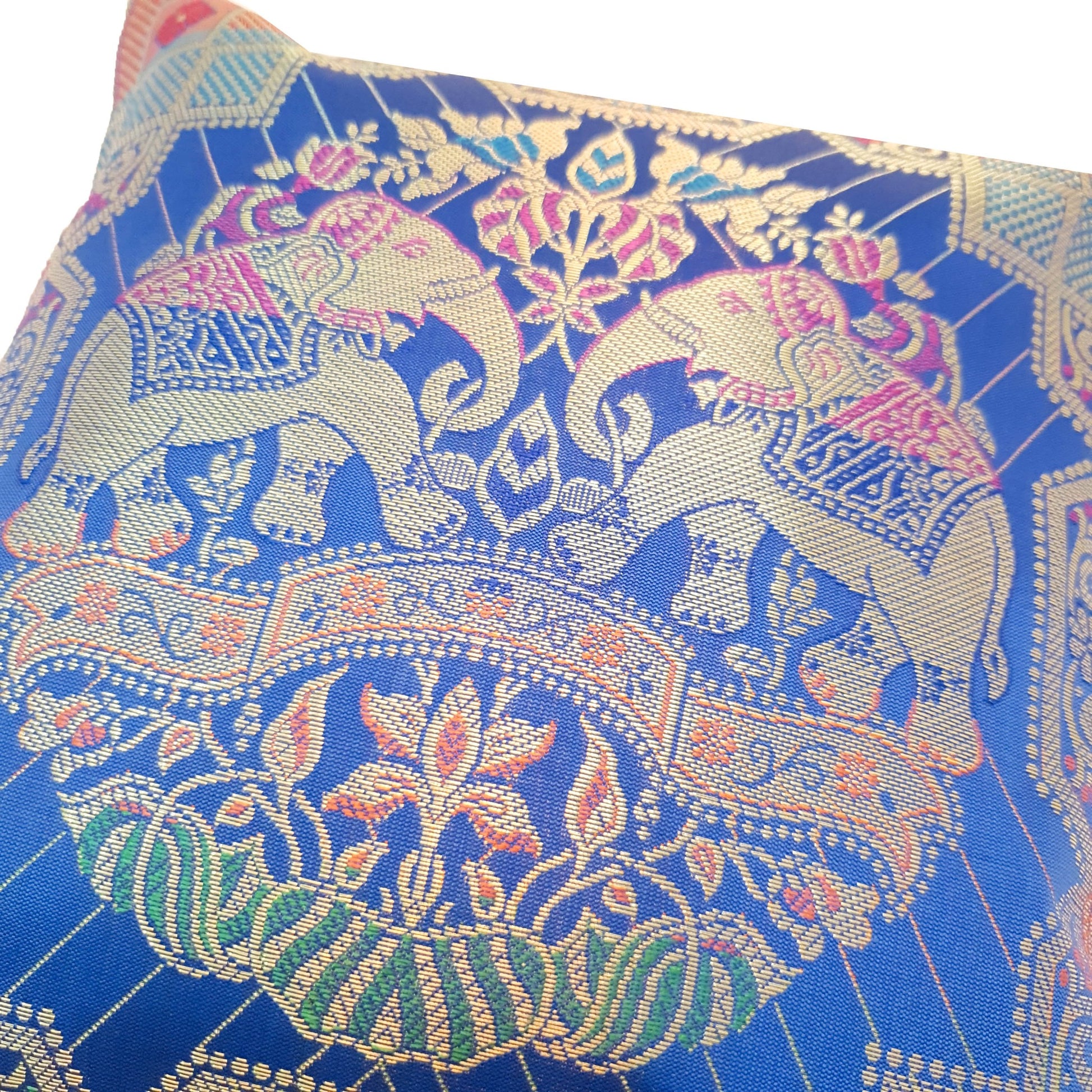 12x12 Inch Cushion Cover Blue Banarasi Indian Elephant Woven Zari Brocade Silk