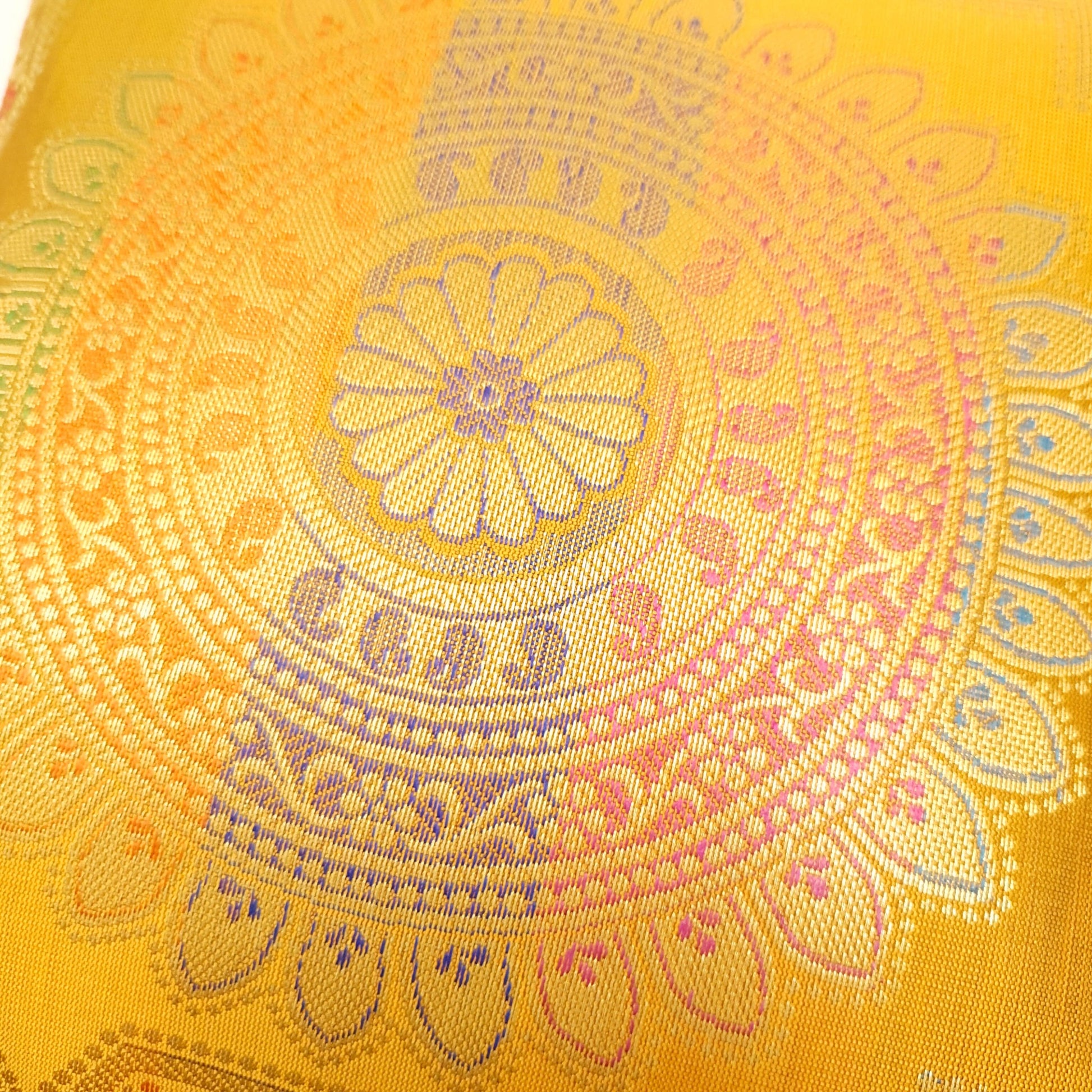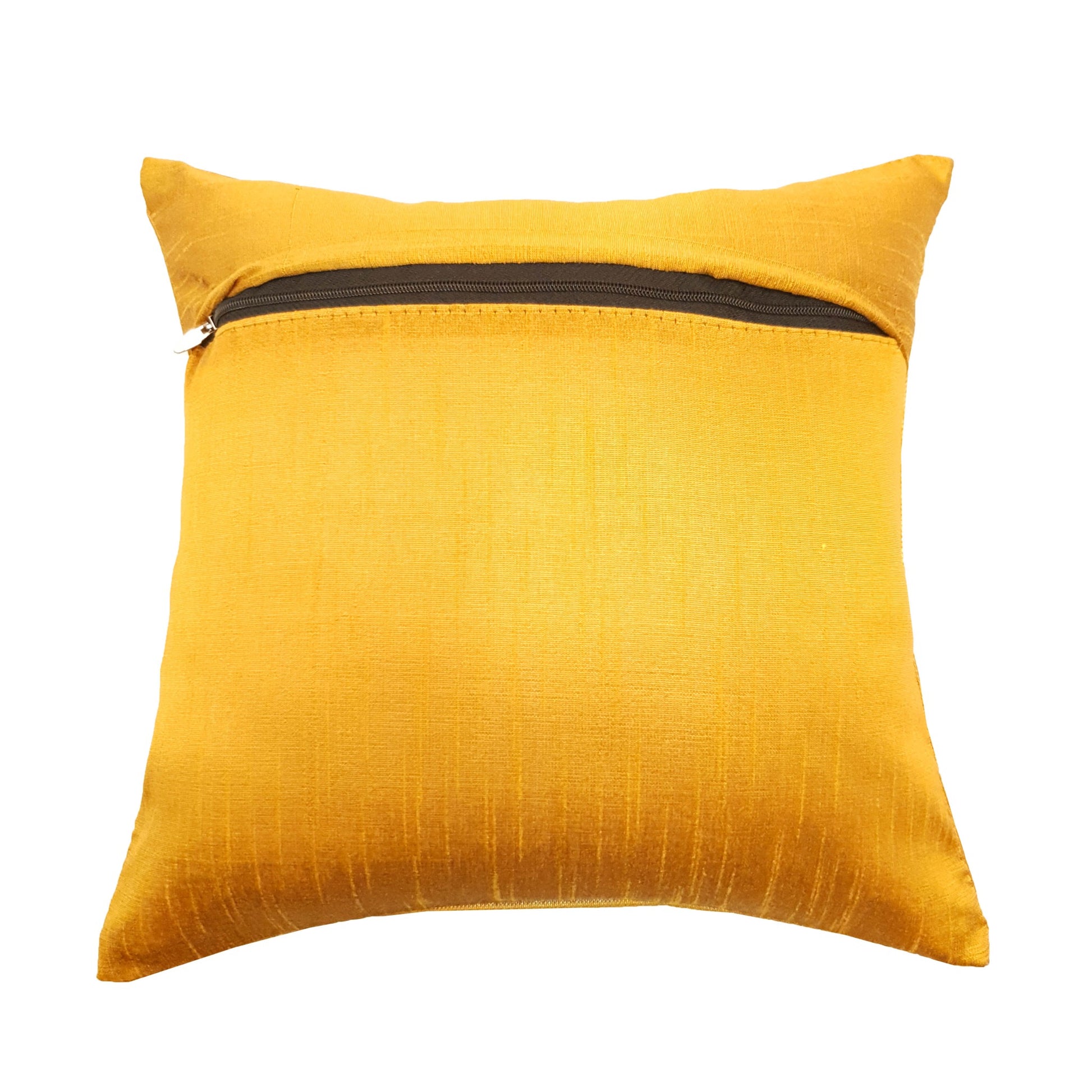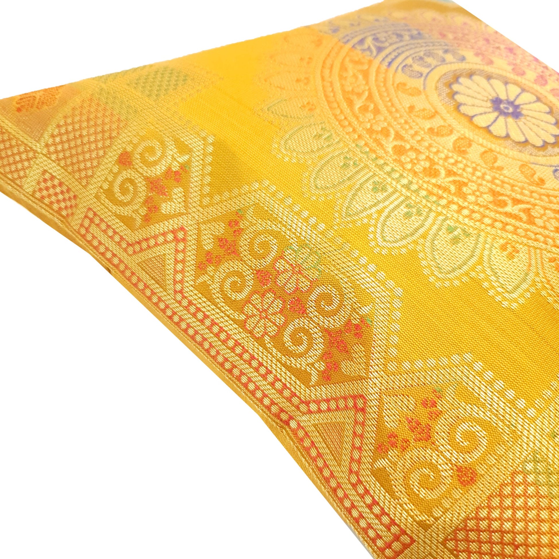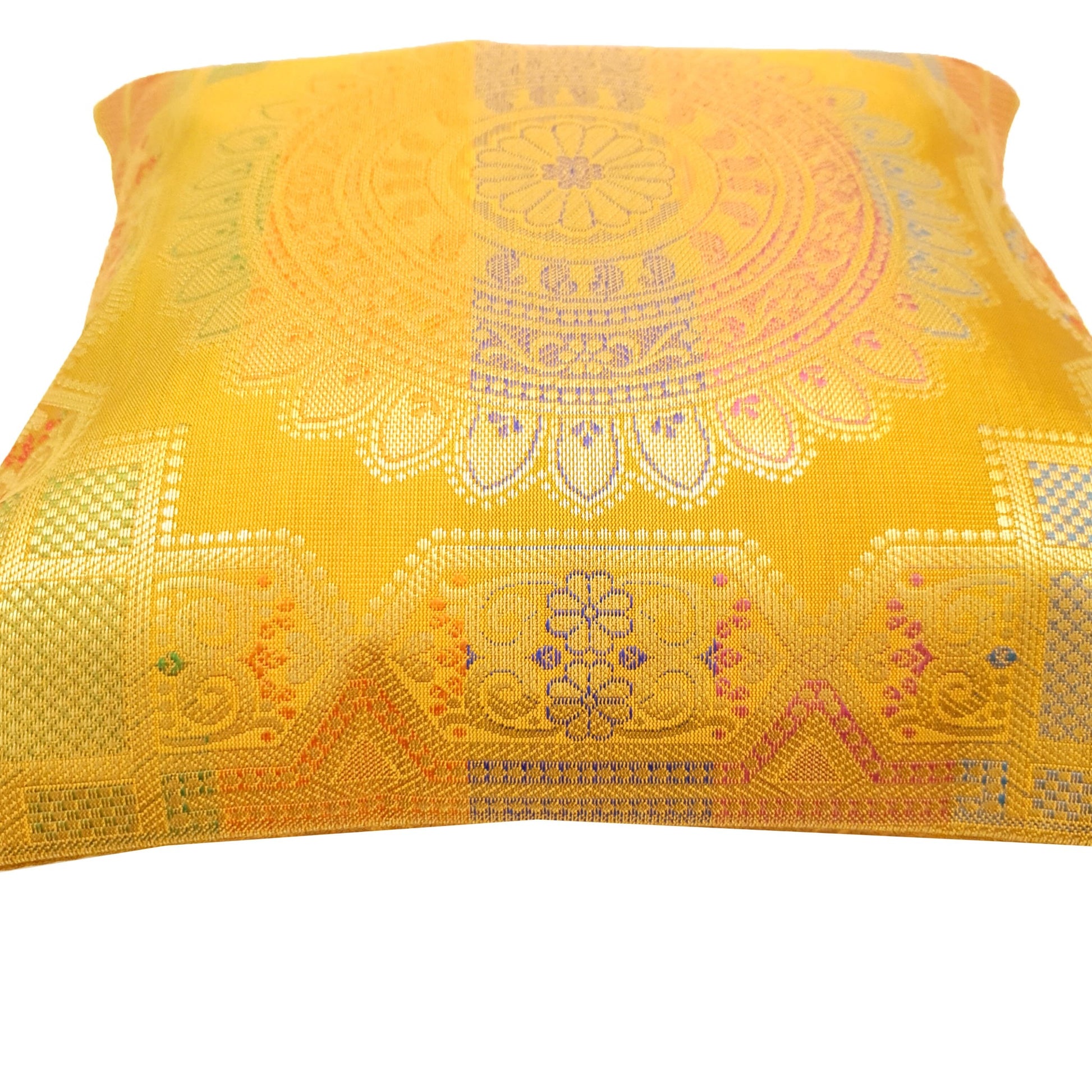 12x12 Inch Cushion Cover Mustard Banarasi Mandala Woven Zari Brocade Silk
