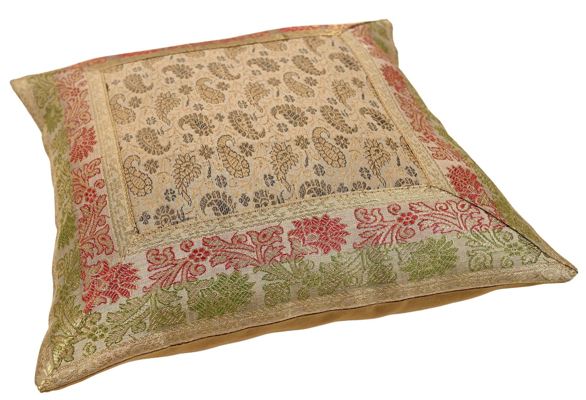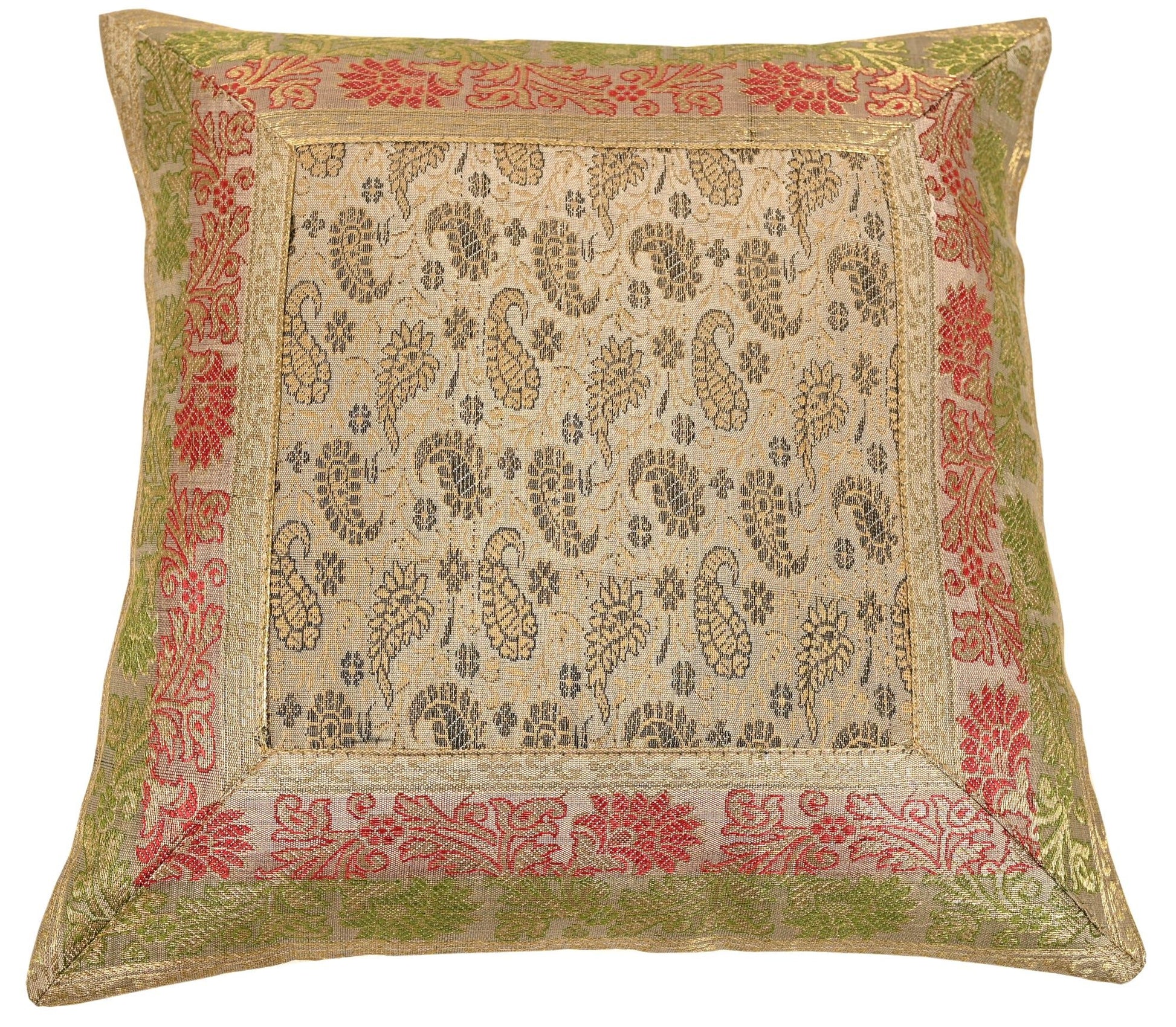 12x12 Inch Indian Woven Zari Brocade Banarasi Silk Paisley Floral Cushion Covers