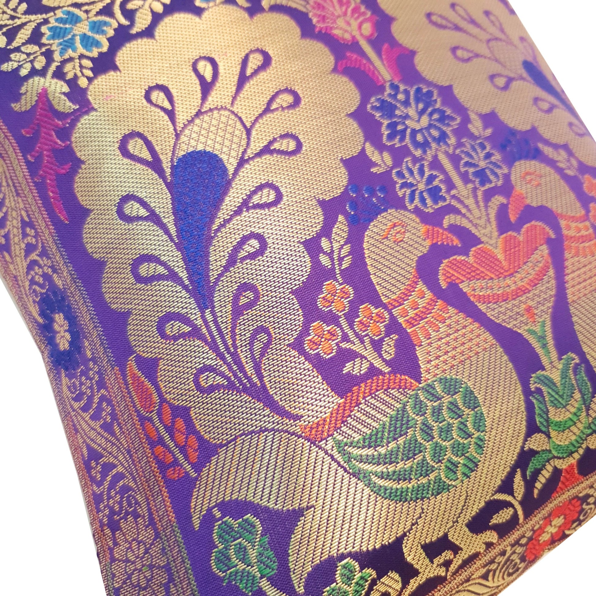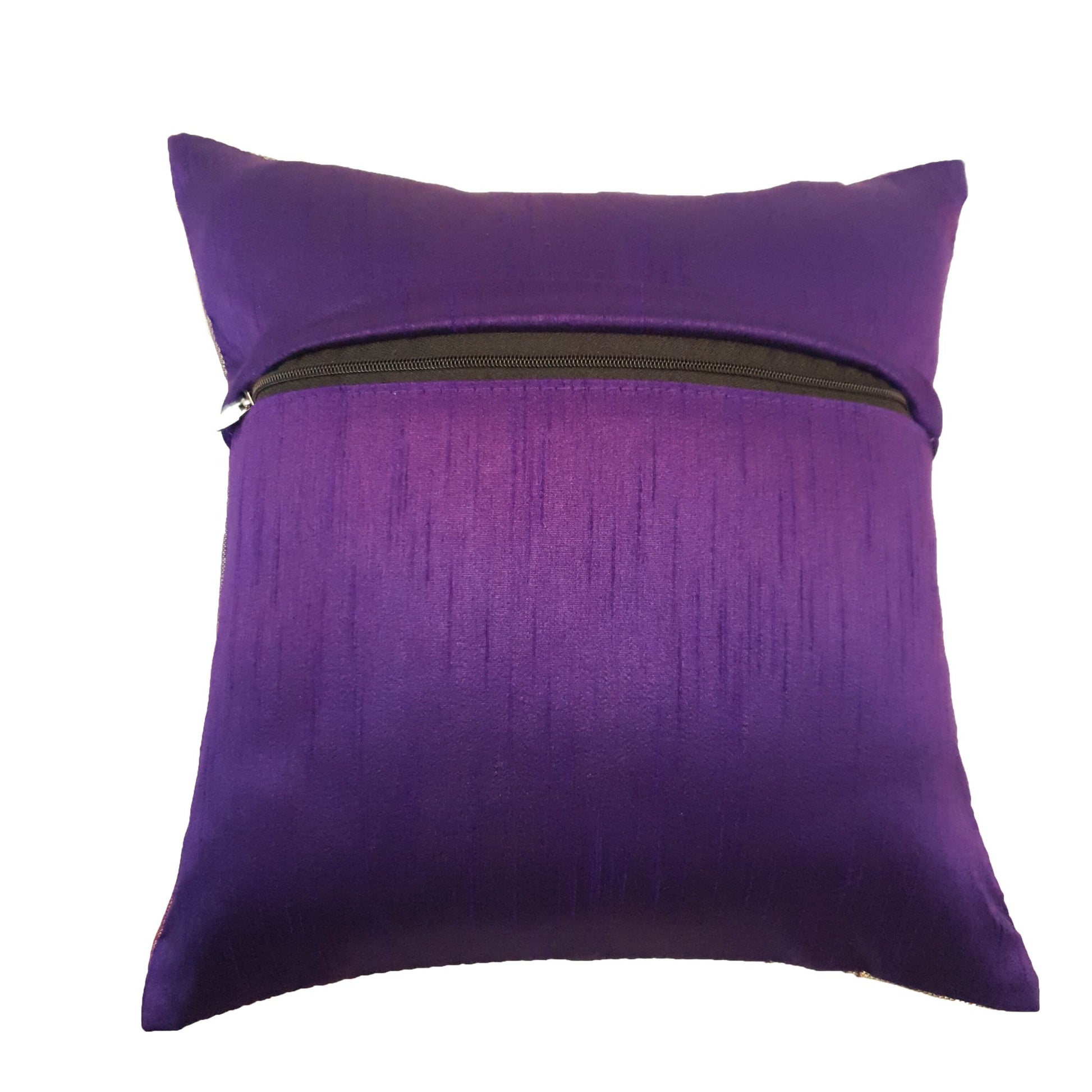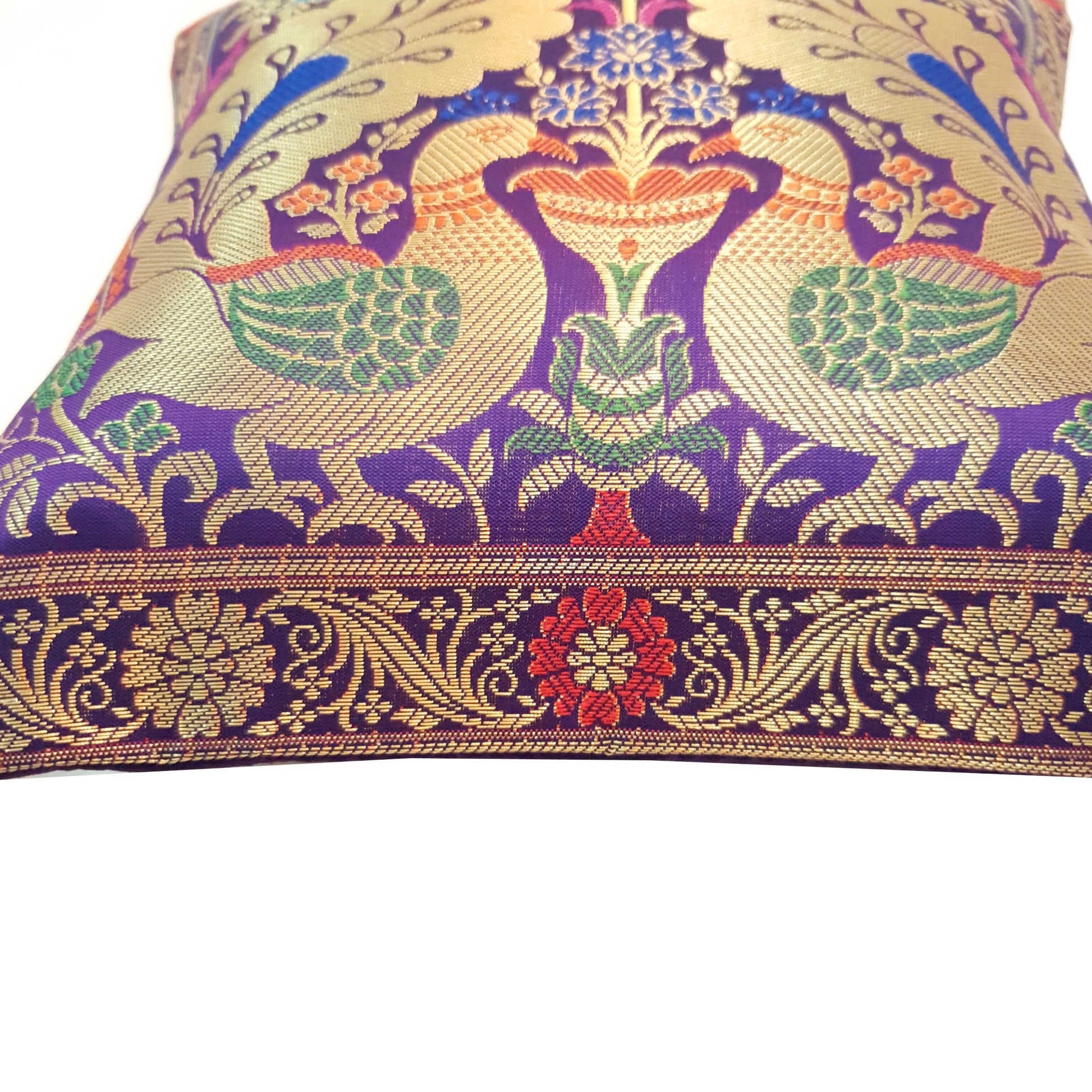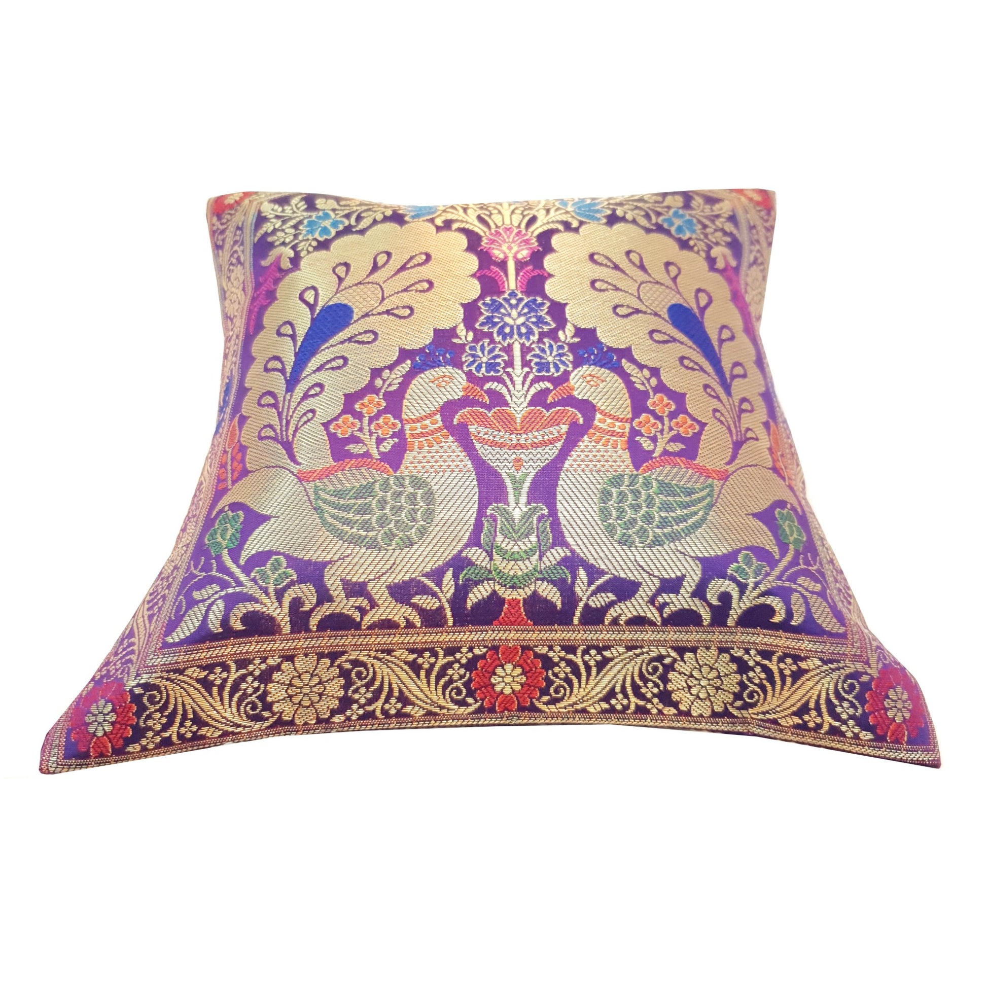 12x12 Inch Purple Cushion Cover Banarasi Decor Woven Peacock Zari Brocade Silk
