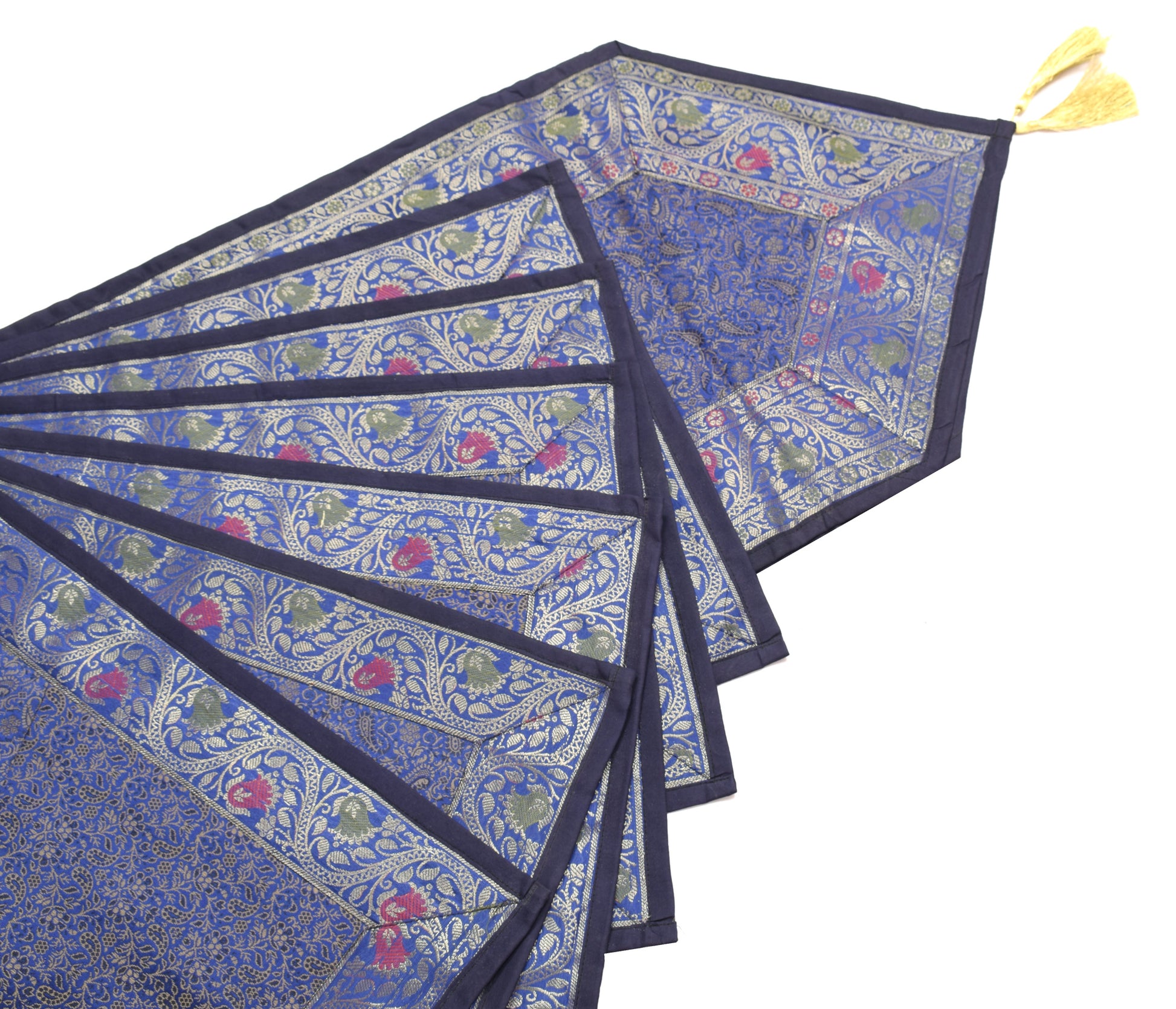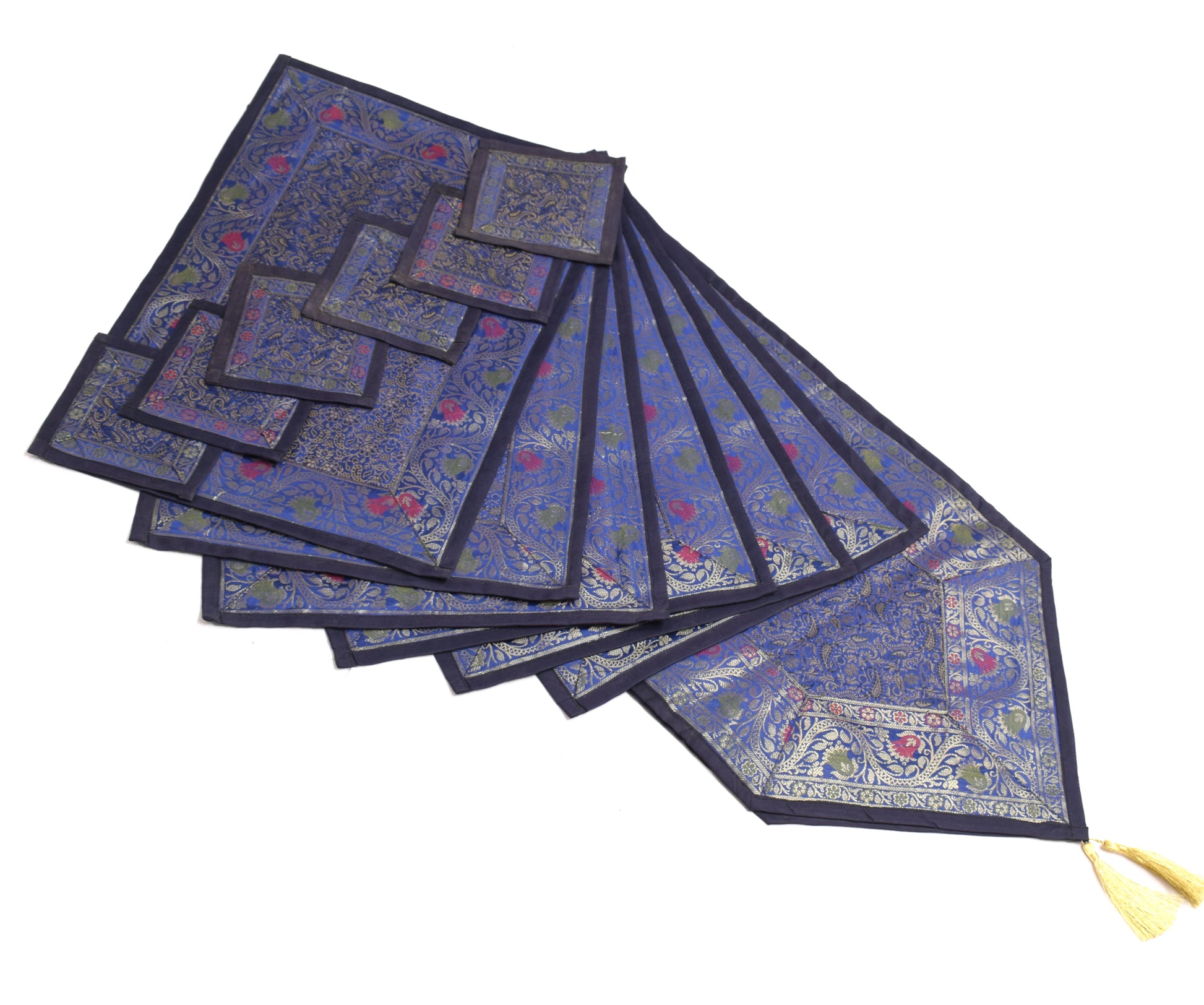 13 PC Aqua Blue Table Runner Set Decor Banarasi Silk Brocade Paisley Gift