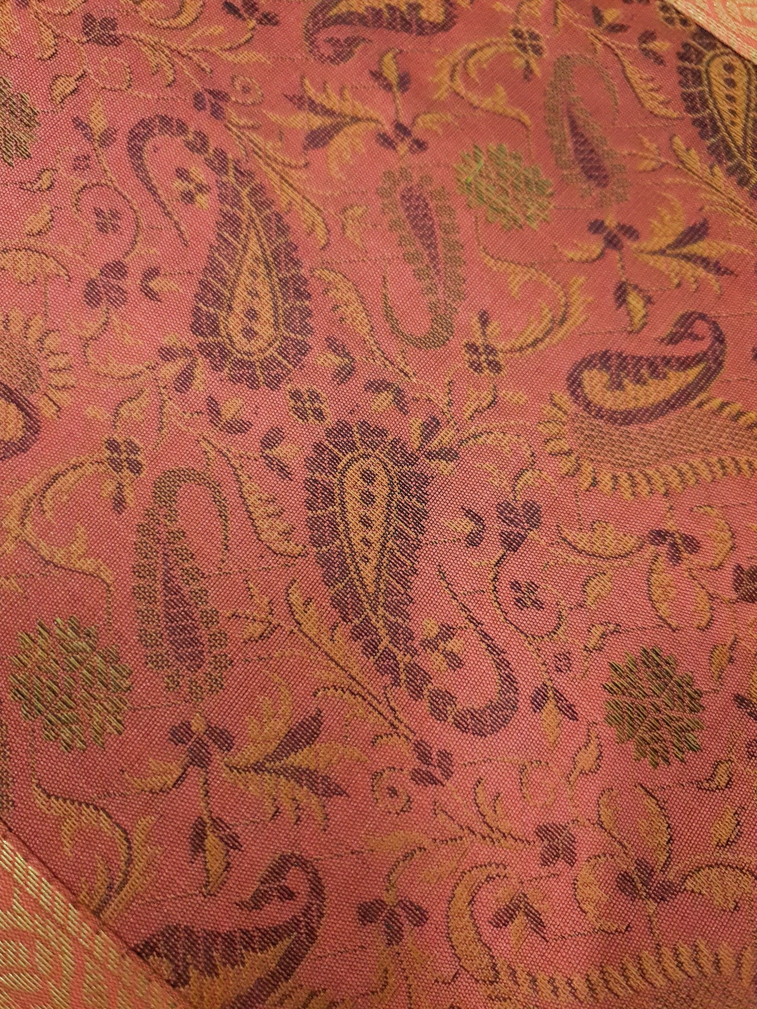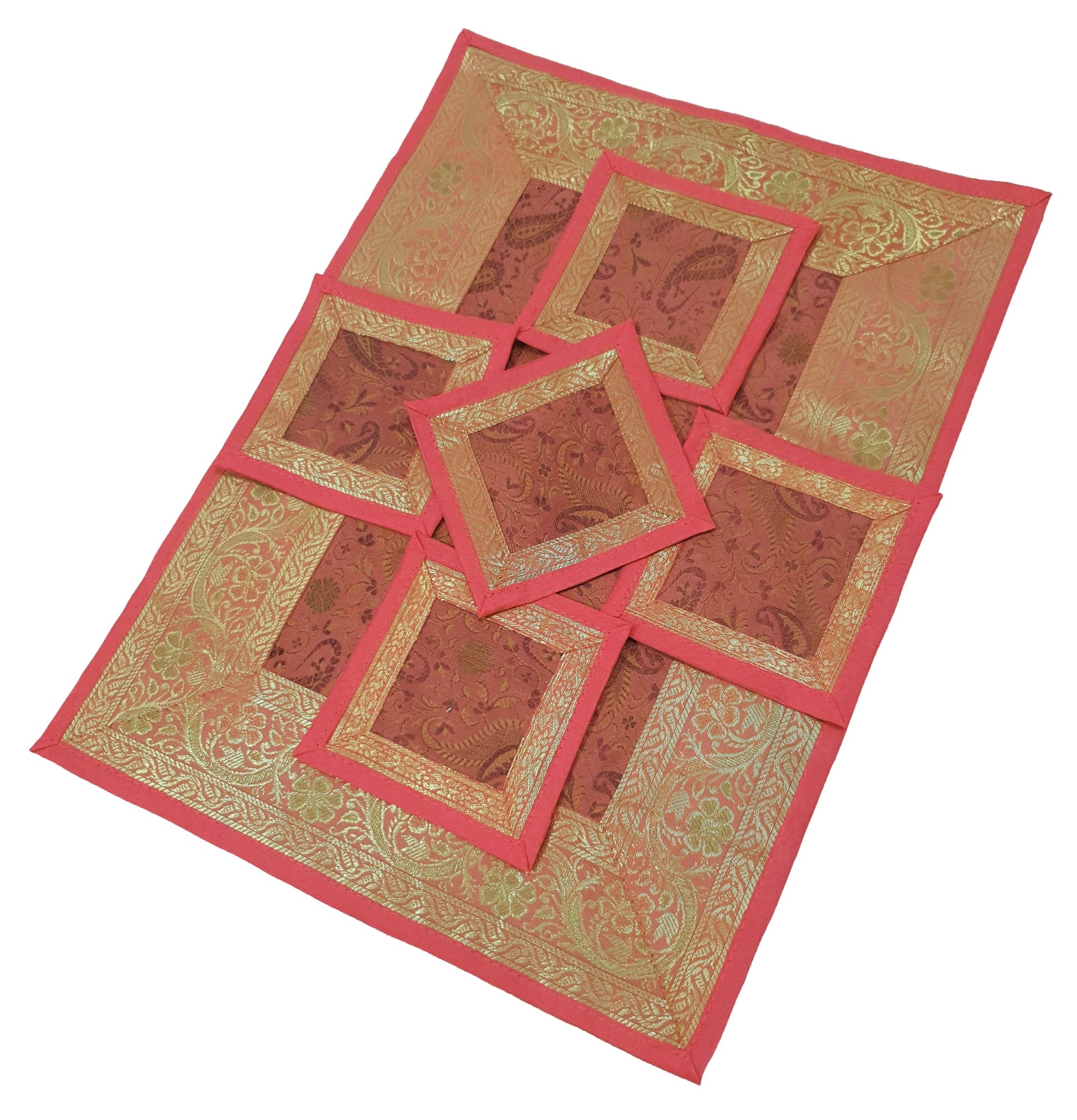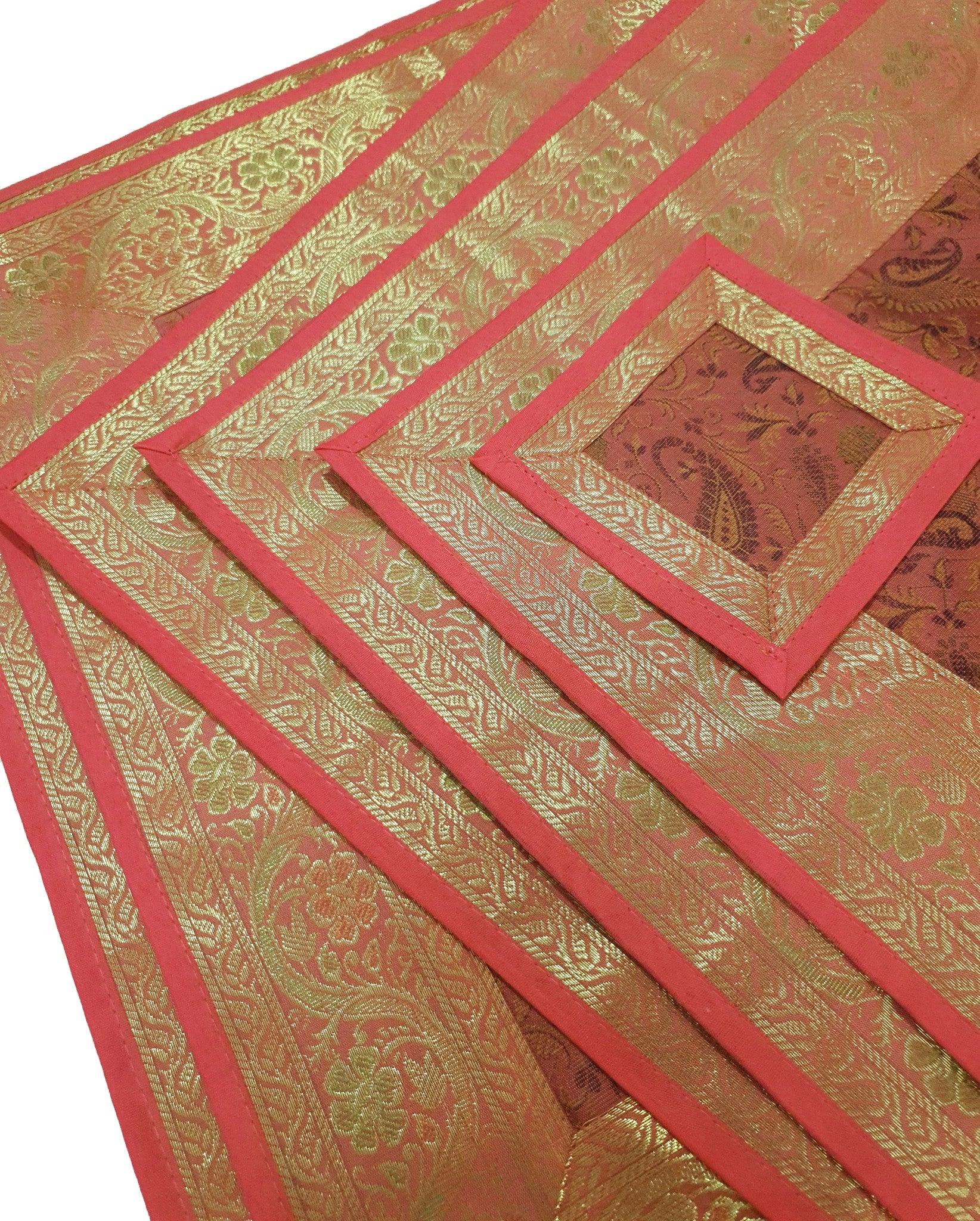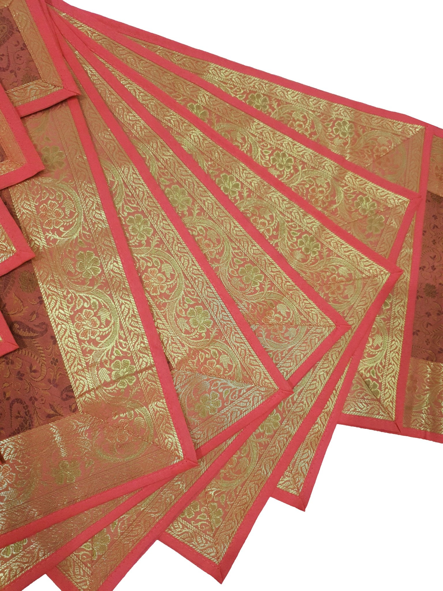 13 PC Coral Banarasi Silk Table Runner Indian Brocade Paisley Dining Decor Gift
