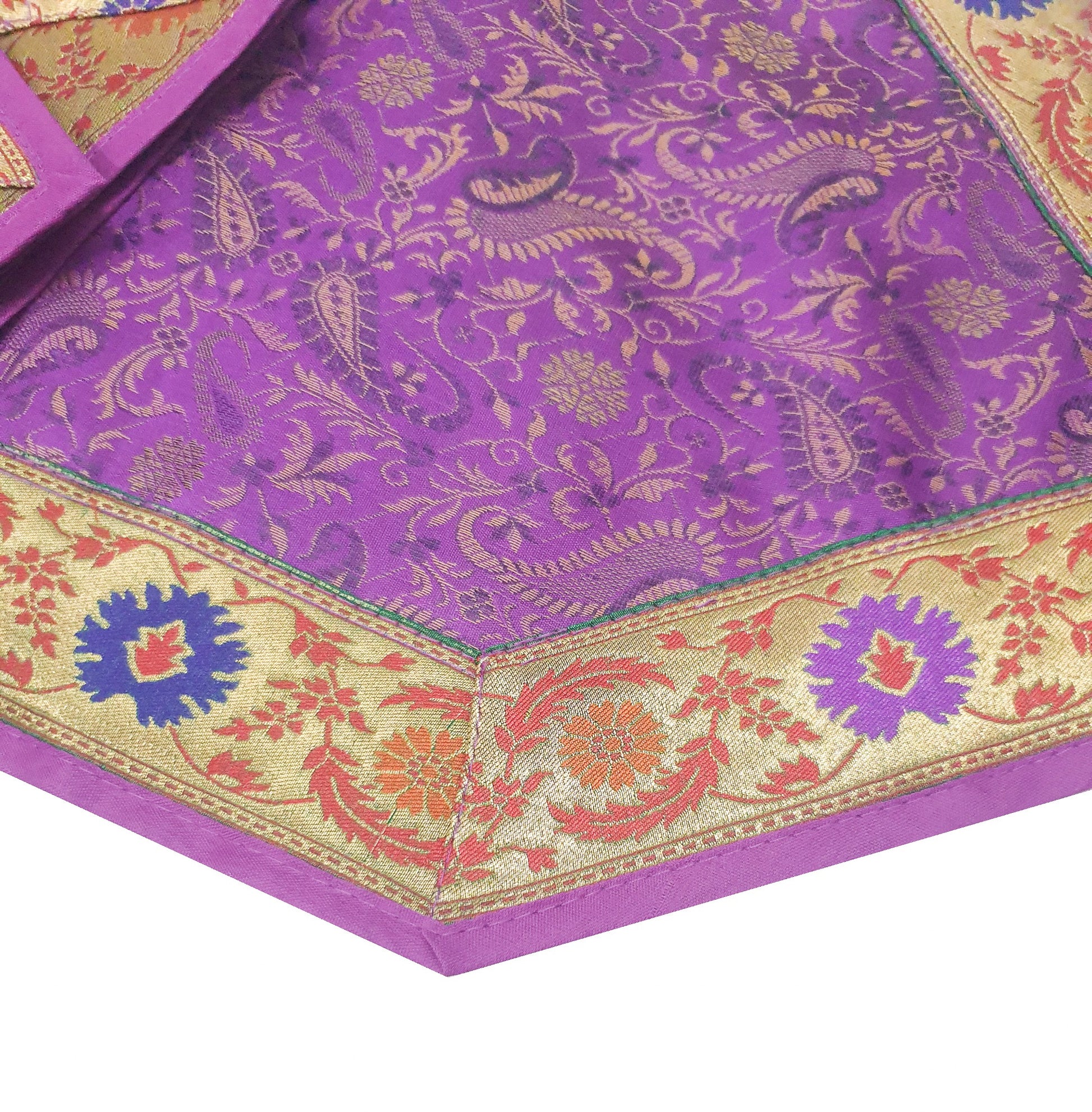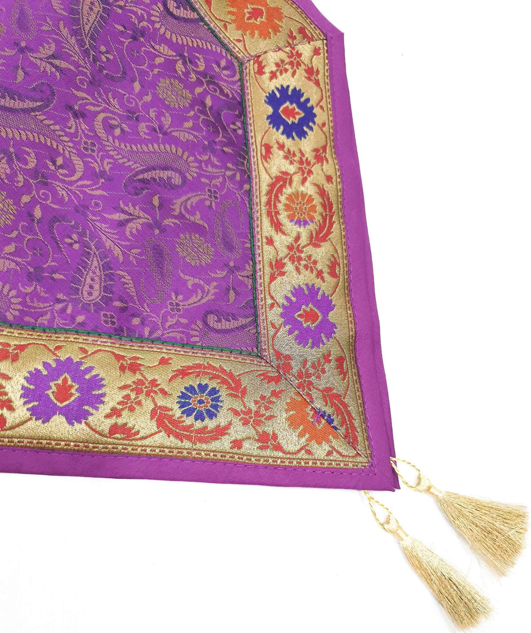 13 PC Purple Table Runner Dining Decor Gift Indian Banarasi Silk Brocade Paisley