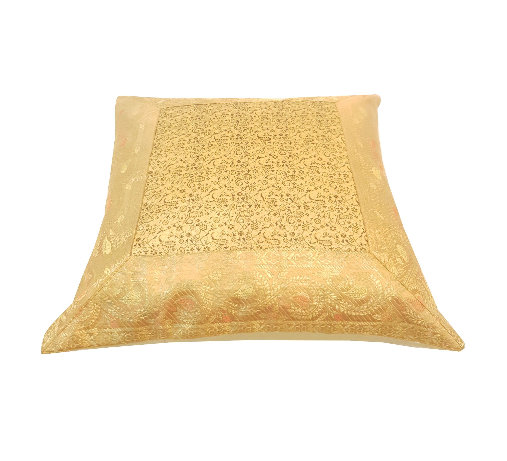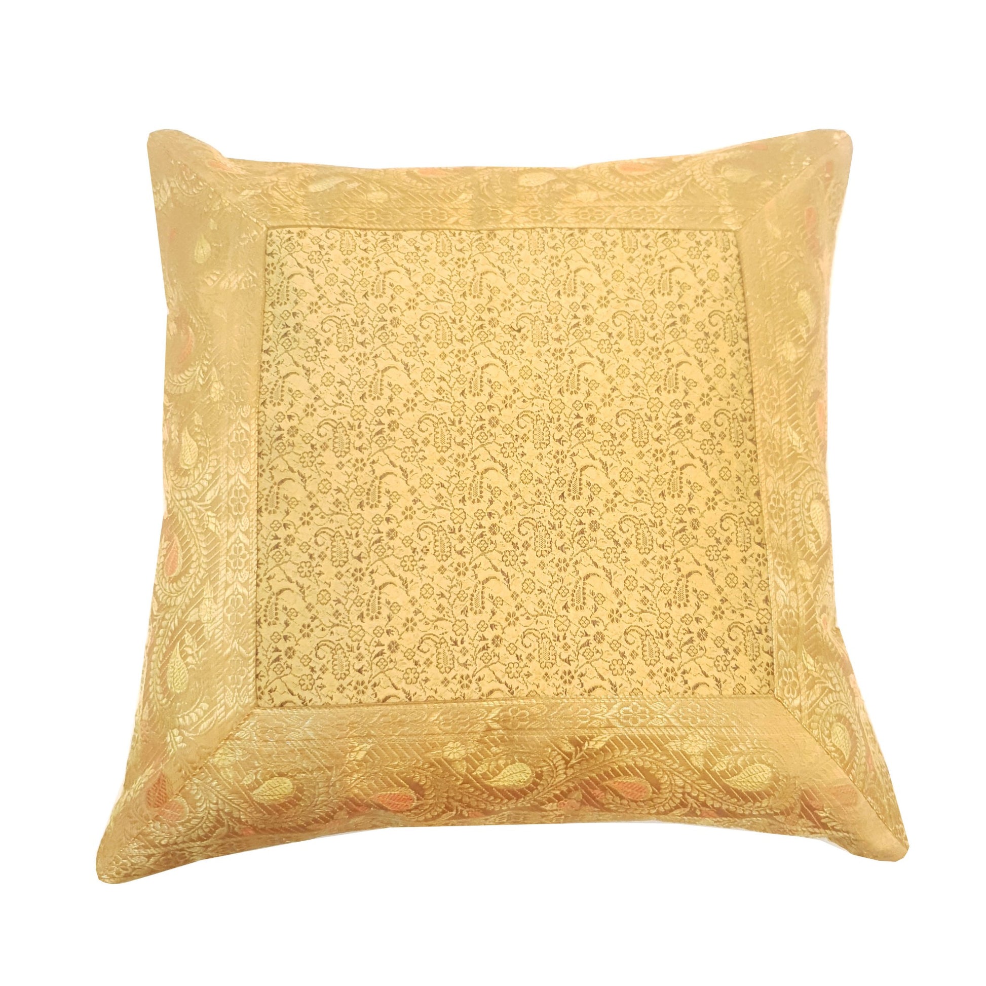 16X16 Inch Banarasi Cushion Covers Zari Brocade Silk Paisley Indian Home Decor