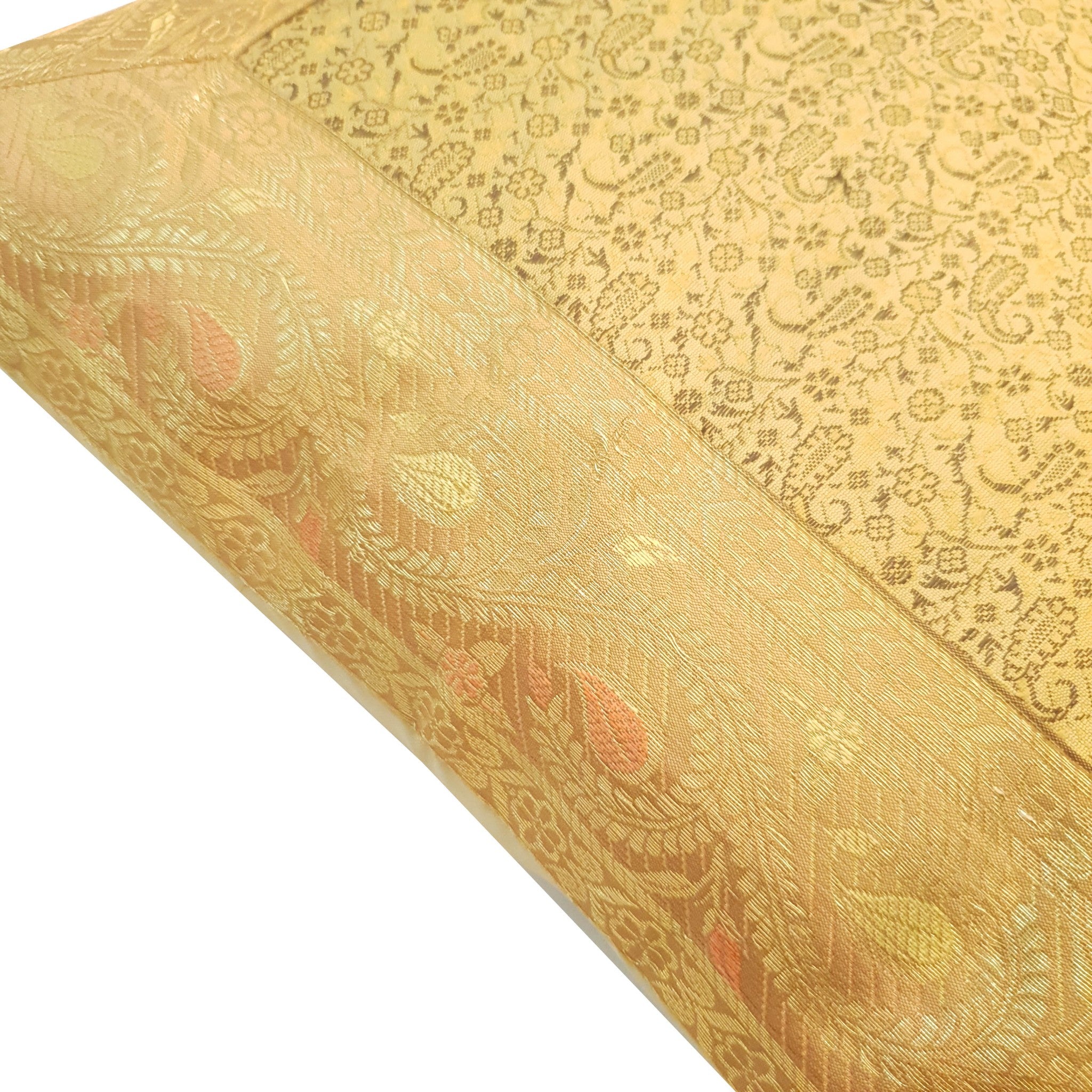 Banarasi Vastra Presents Indian Art Silk Woven Zari Brocade Banarasi Cushion Pillow Cover in Paisley Pattern in the centre Part of the cover with all 4 Side Floral Zari Woven Border. this Cover comes with Matching color Back lining fabric with Hidden Zip which allow you to insert the Cushion Pillow.