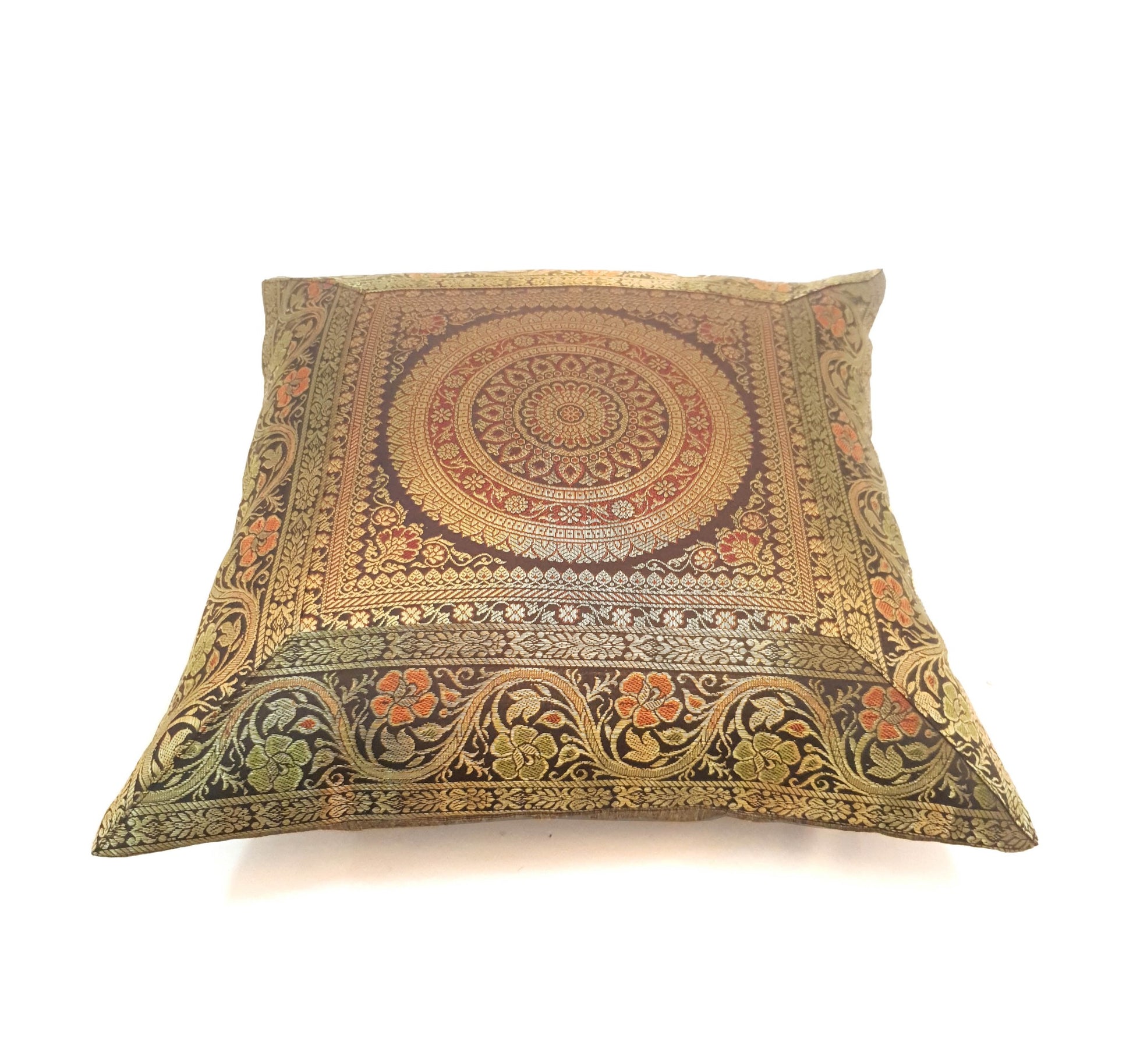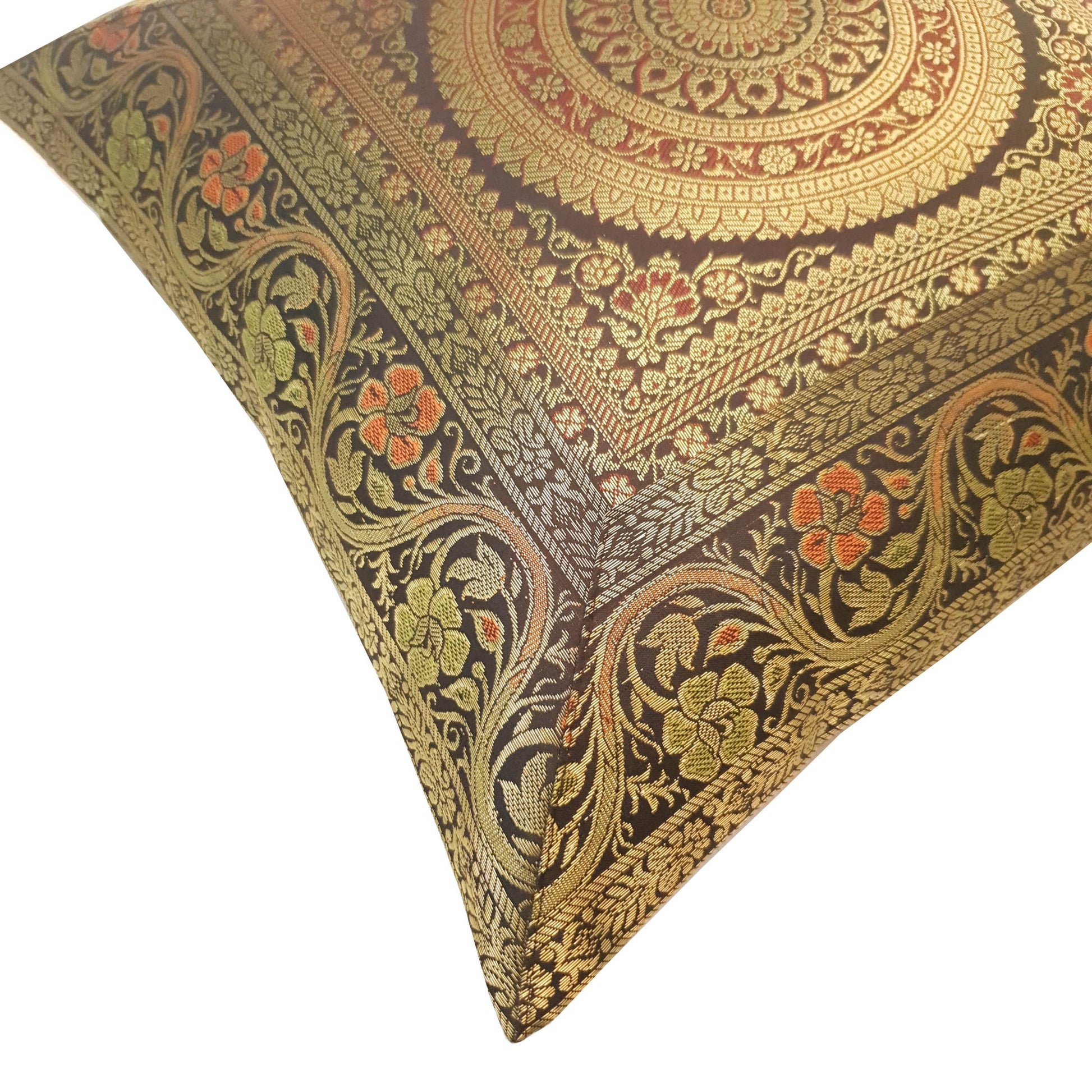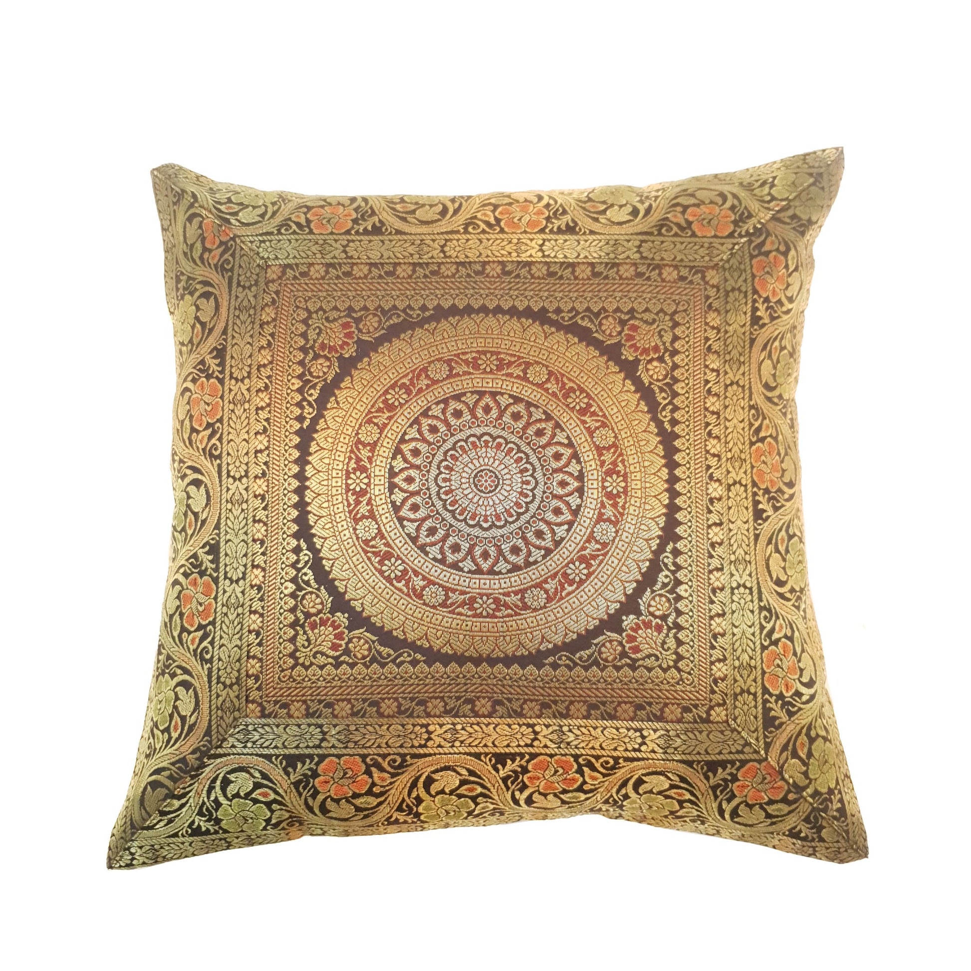 Silk Woven Zari Brocade Banarasi Cushion Pillow Cover in Mandala Pattern in the