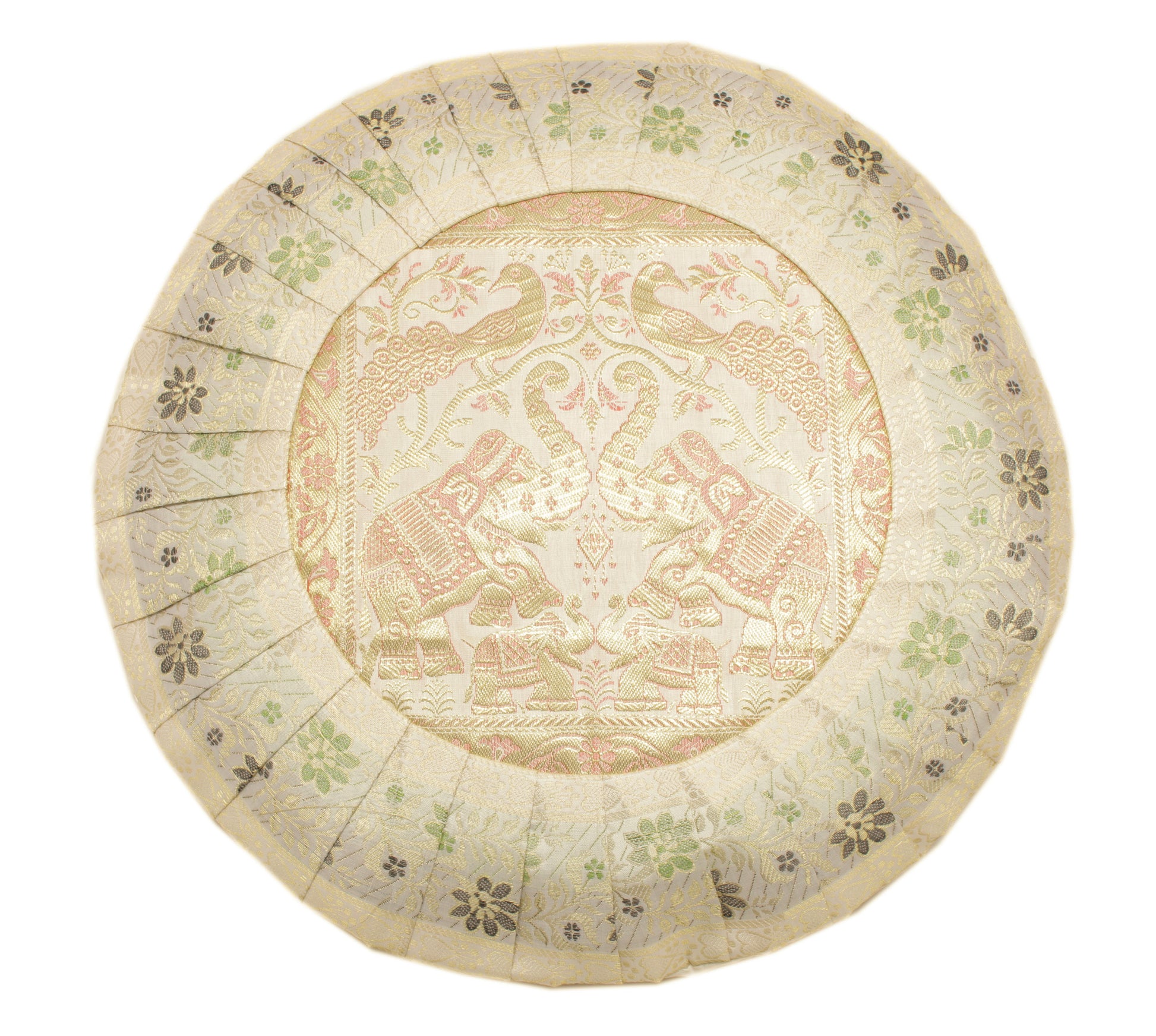 16x16 Inch Indian Woven Zari Brocade Banarasi Silk Cushion Elephant Cover White
