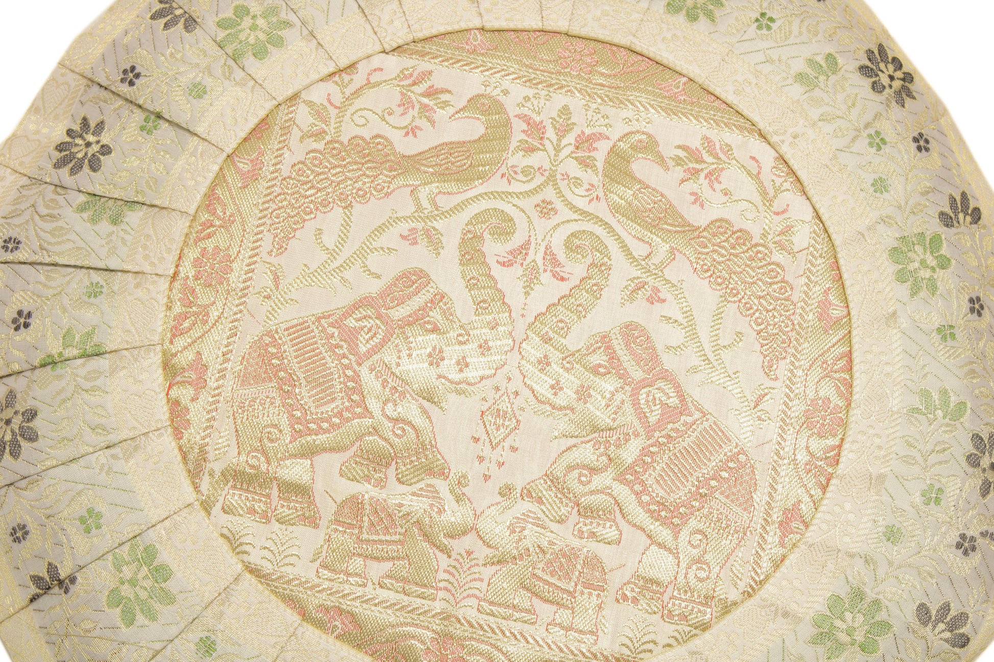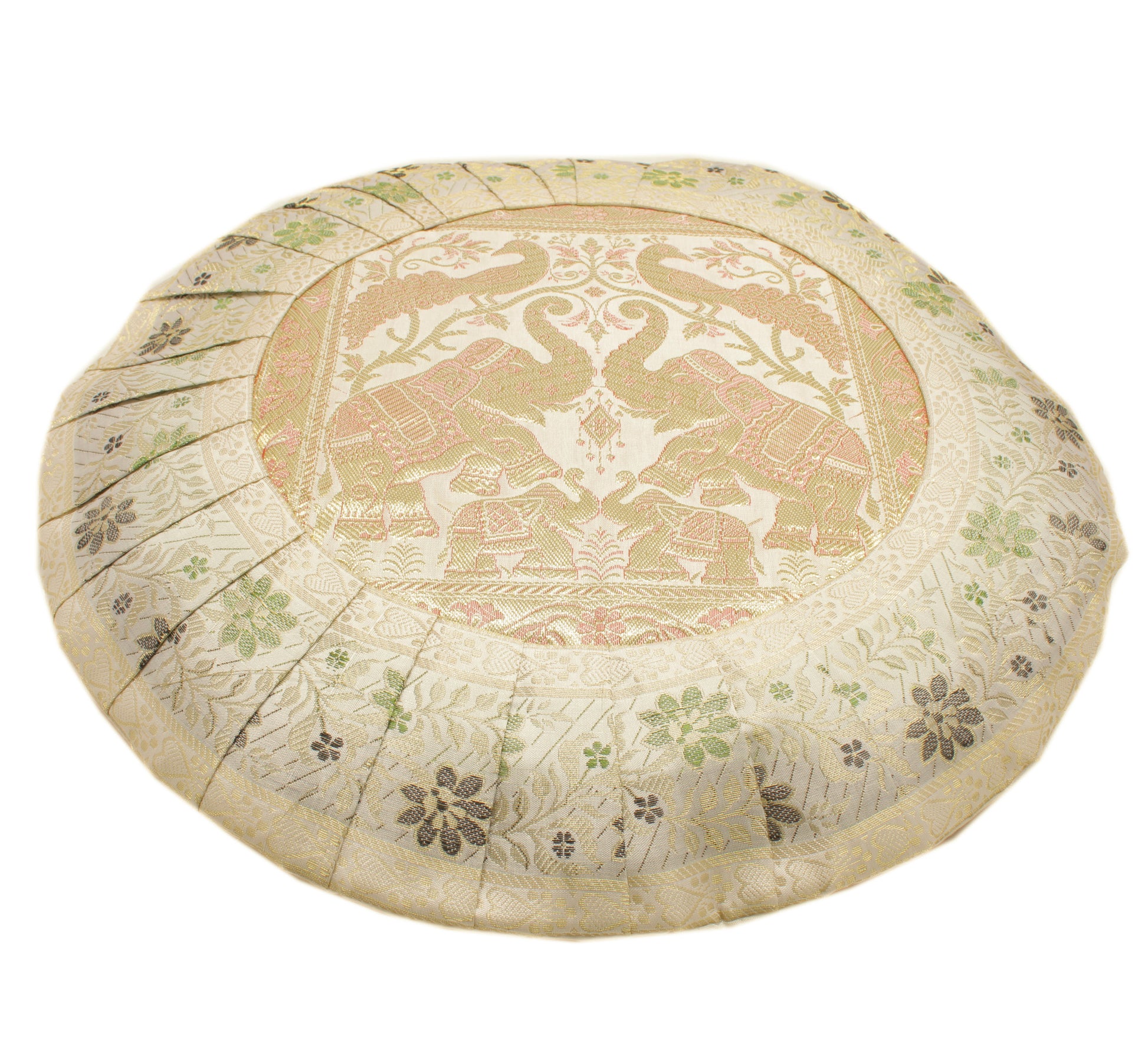 Banarasi Vastra Presents Indian Art Silk Woven Zari Brocade Banarasi Cushion Pillow Cover in Elephant Pattern in the centre Part of the cover with all 4 Side Floral Zari Woven Border. this Cover comes with Matching color Back lining fabric with Hidden Zip which allow you to insert the Cushion Pillow. The base color of the cover is White.