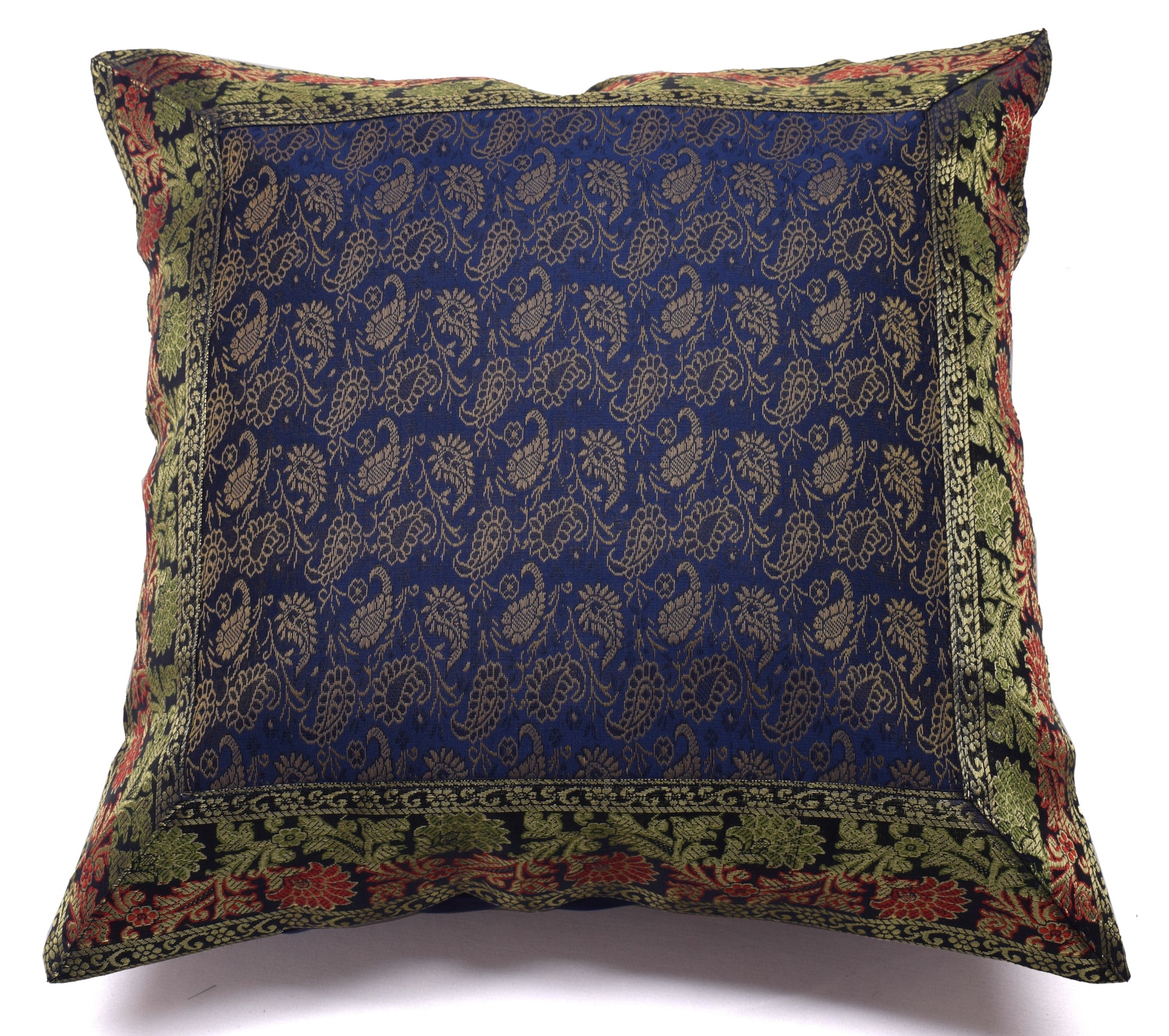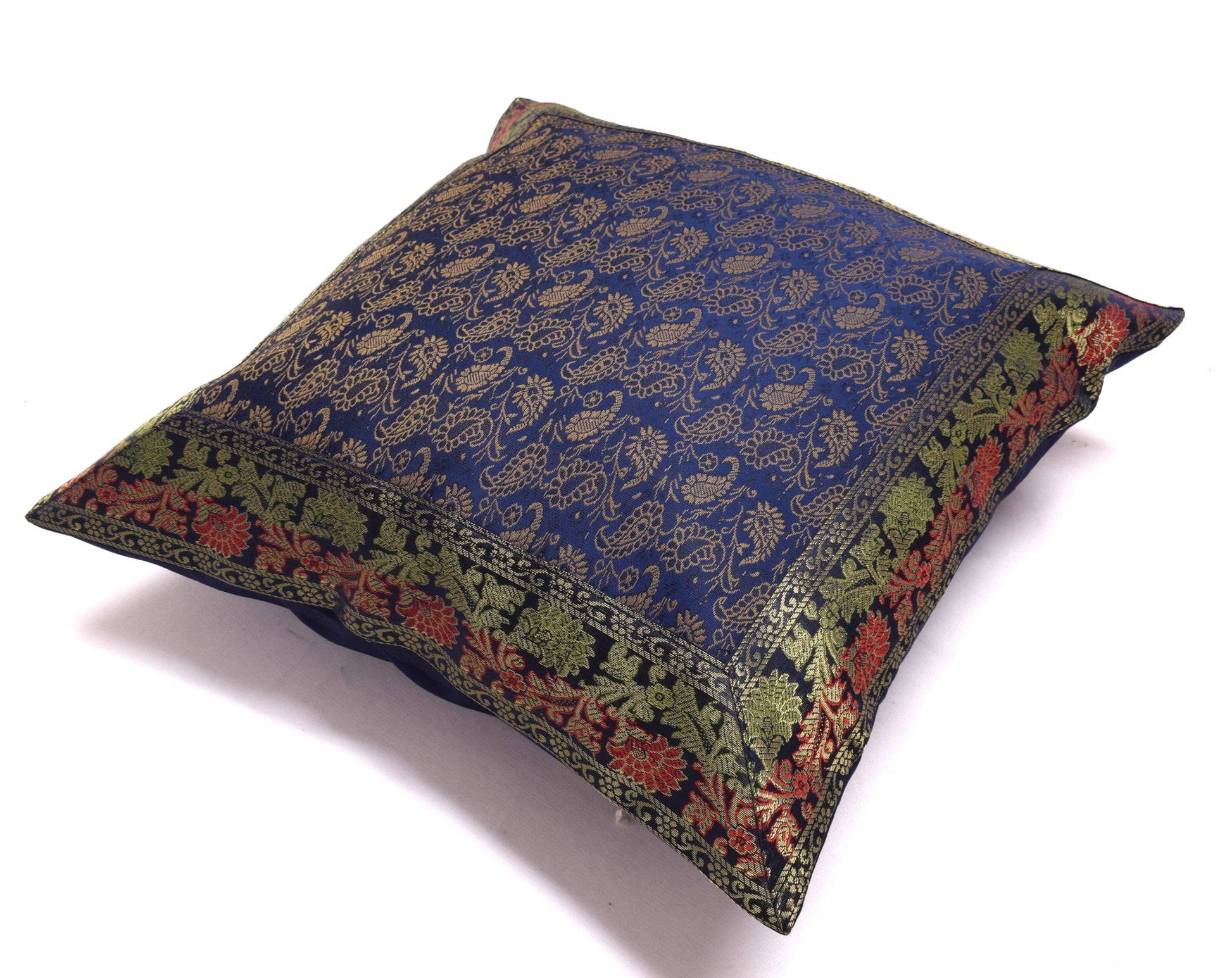 16x16 Inch Indian Woven Zari Brocade Banarasi Silk Paisley Cushion Covers Blue