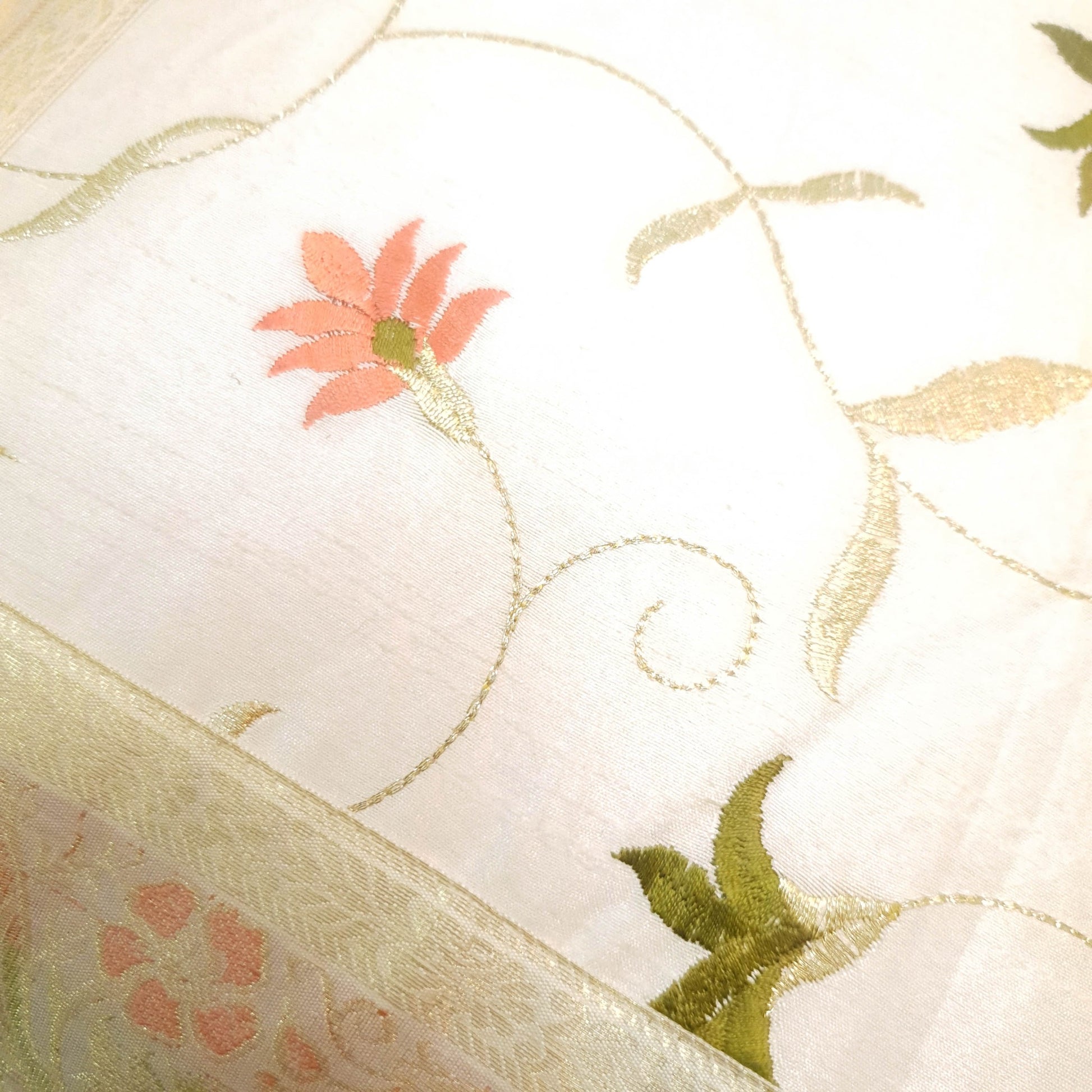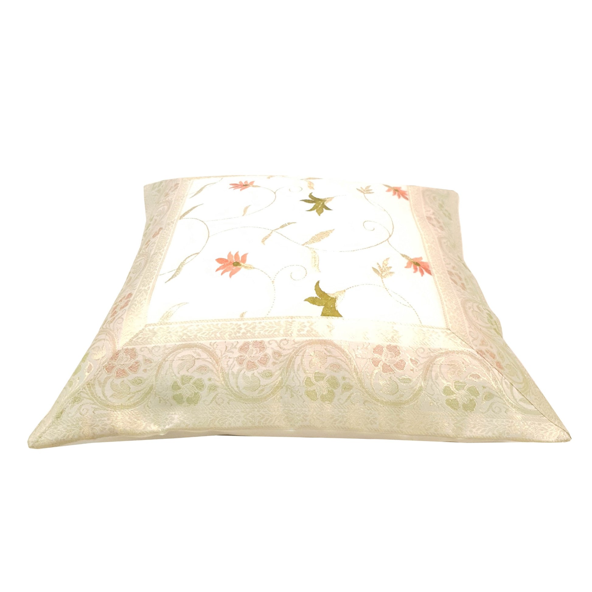 16x16 Inch White Cushion Covers Floral Embroidered Zari Brocade Banarasi Silk