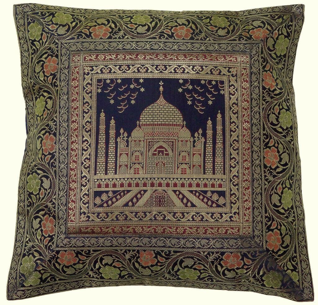 17" Sq Indian Art Silk Woven Zari Borcade Banarasi Cushion Pillow Covers Navy Blue |