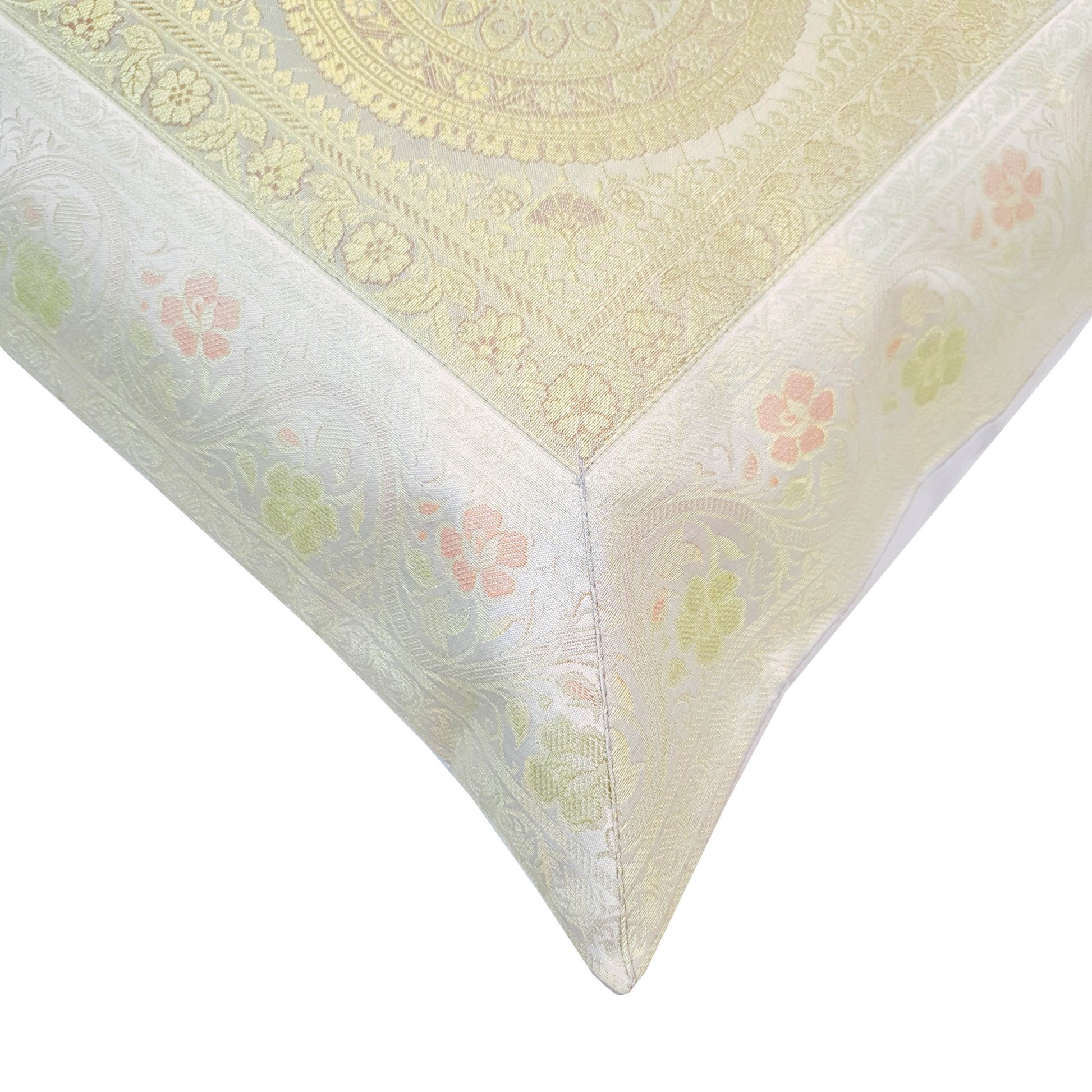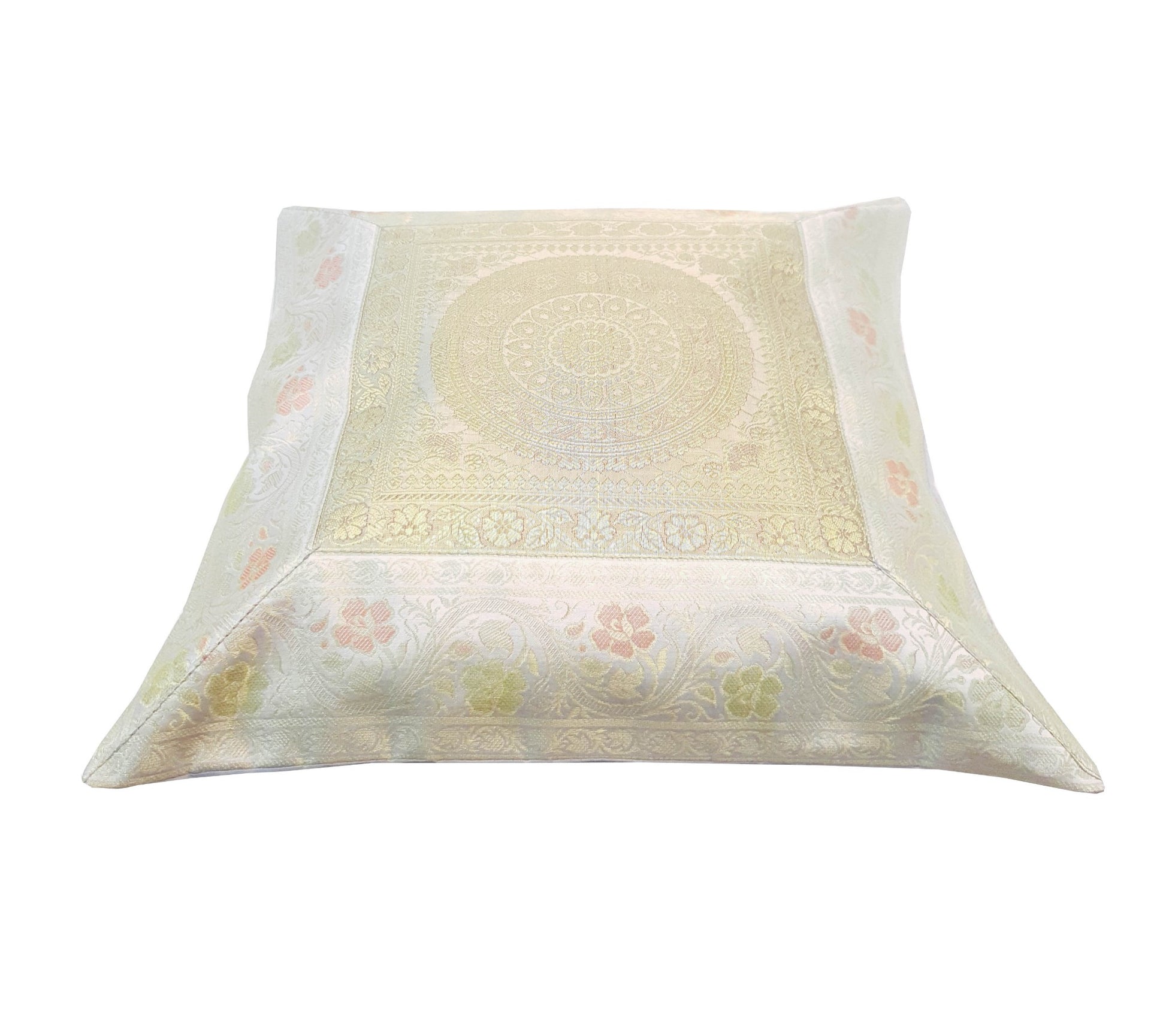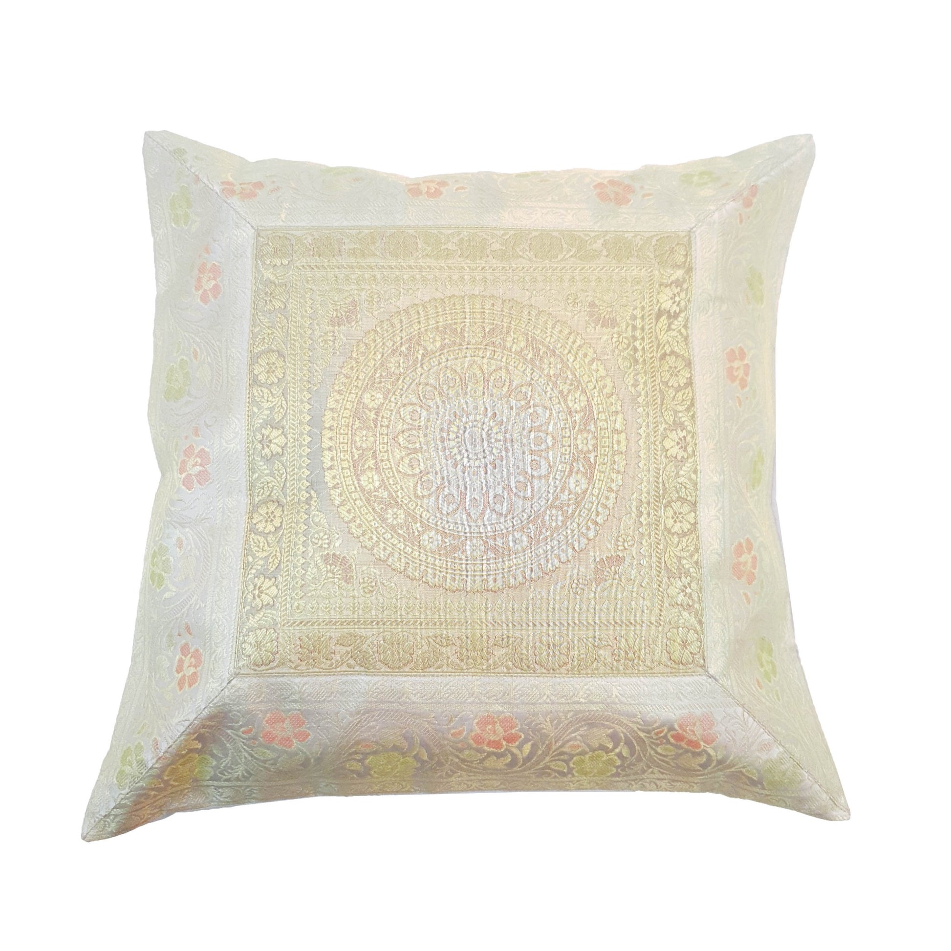 Silk Woven Zari Brocade Banarasi Cushion Pillow Cover in Mandala Pattern in the