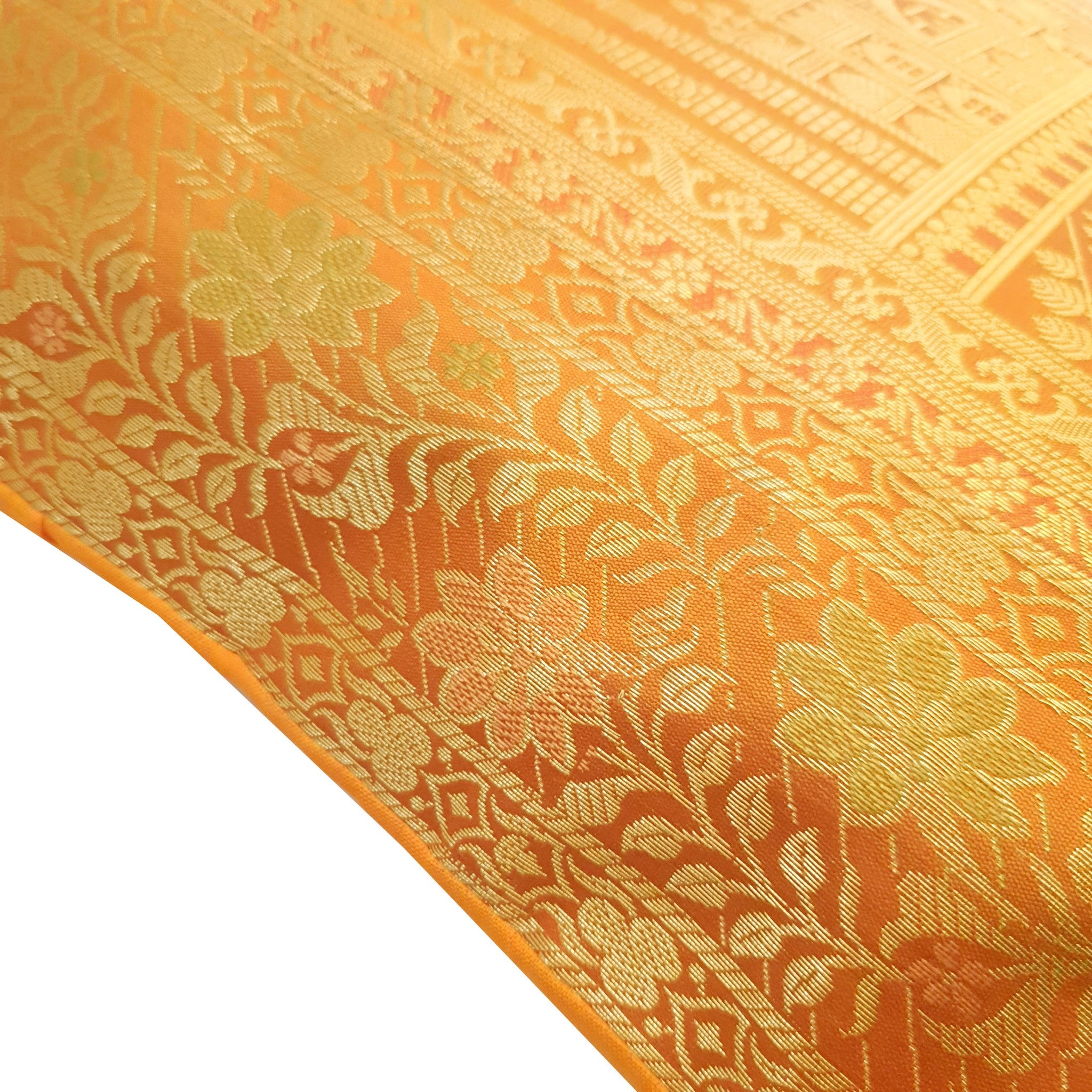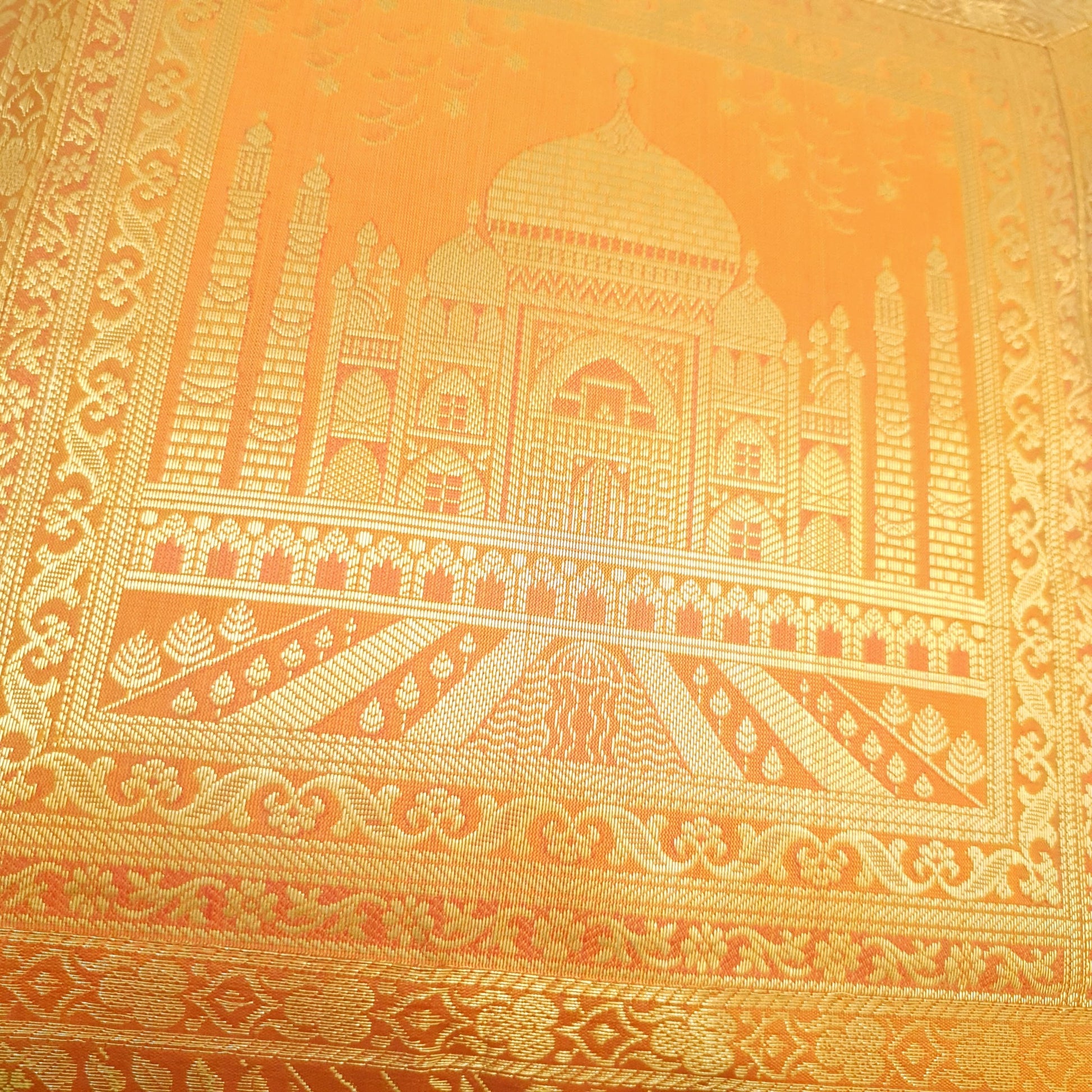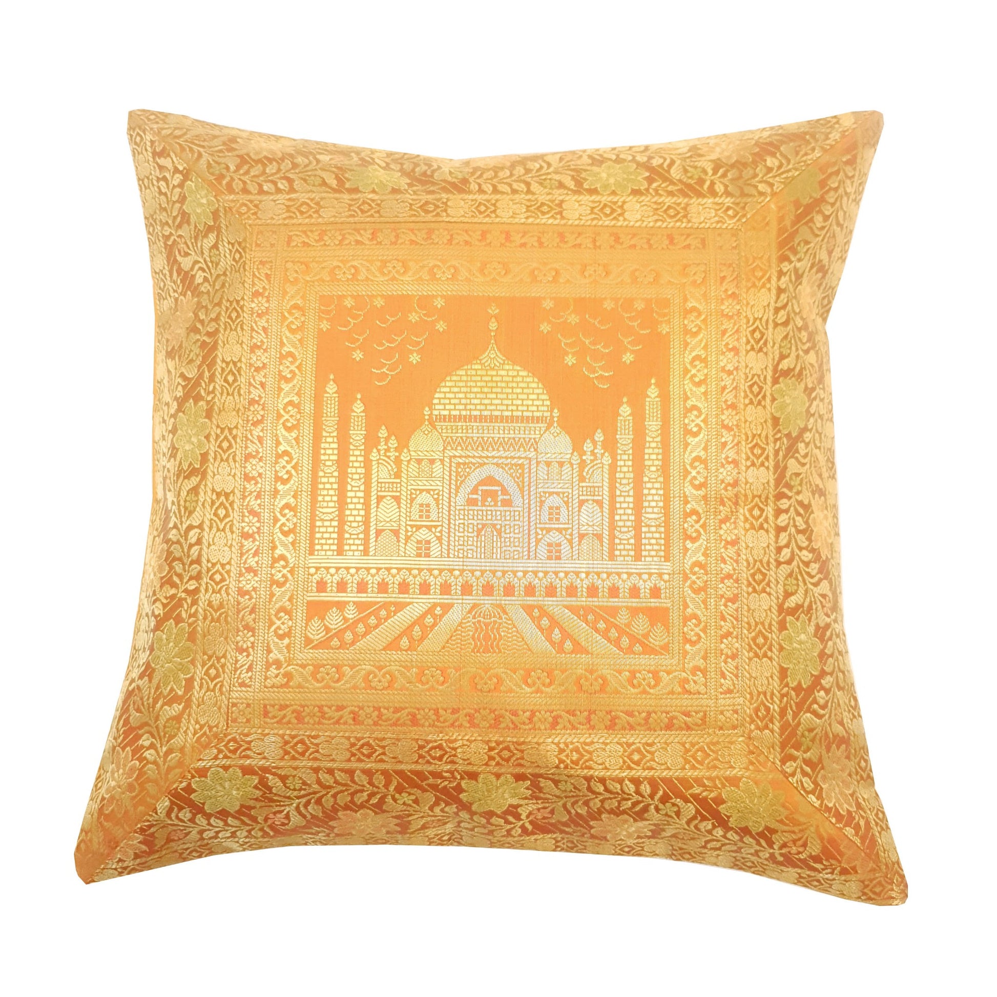 17x17 Inch Mustard Cushion Cover Taj Mahal Woven Zari Brocade Banarasi Silk