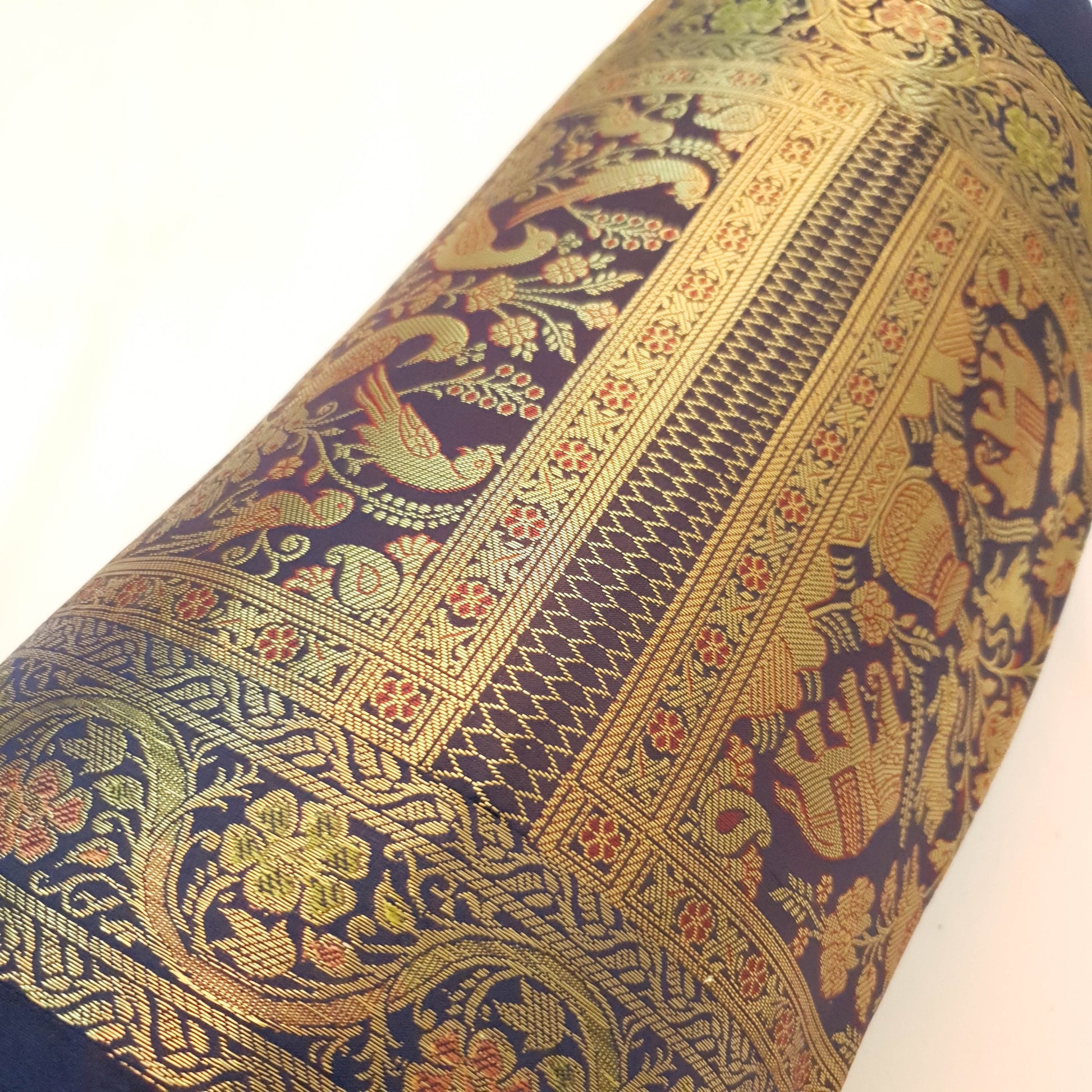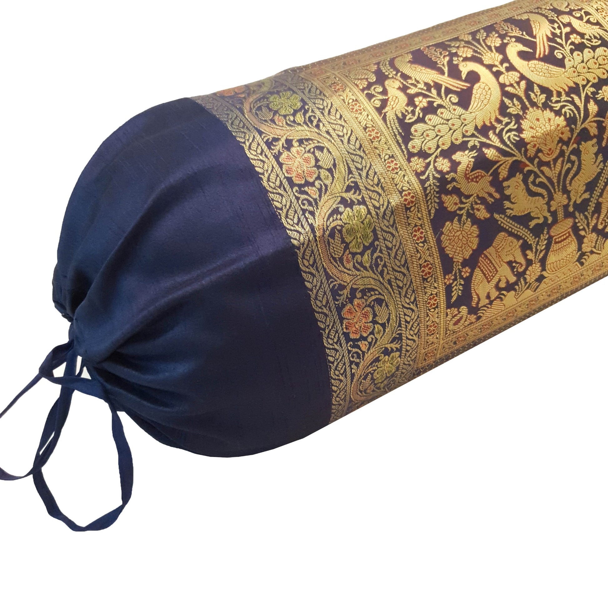 Banarasi Vastra Presents Indian Art Silk Woven Zari Brocade Banarasi Bolster Cover in Animal & Birds Pattern . this Cover comes with Matching color Back lining fabric with Hidden Drawstring which allow you to insert the Bolster Pillow. The base color of the cover is Blue.