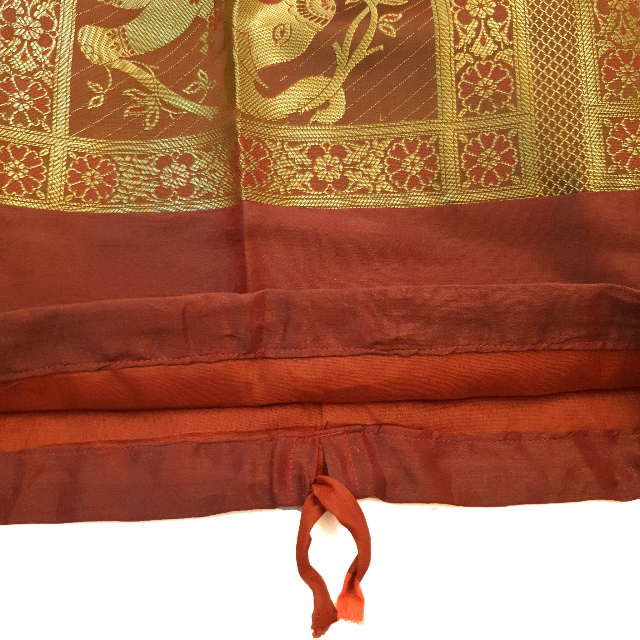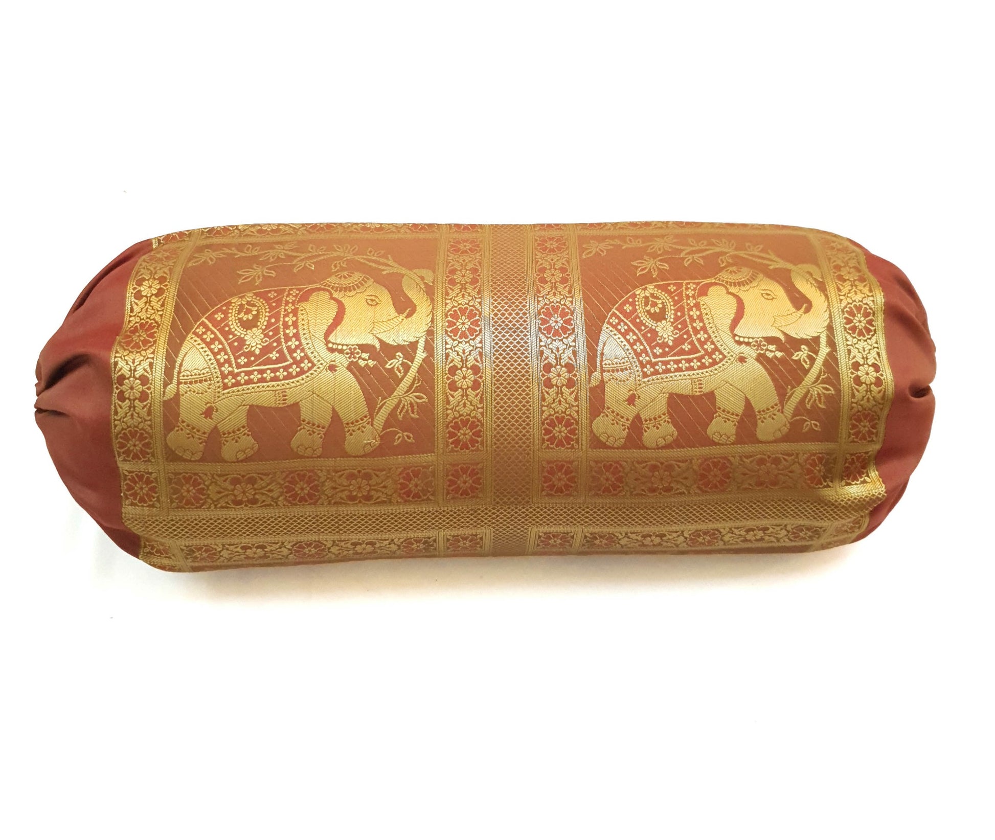 Banarasi Vastra Presents Indian Art Silk Woven Zari Brocade Banarasi Bolster Cover in Elephant Pattern . this Cover comes with Matching color Back lining fabric with Hidden Drawstring which allow you to insert the Bolster Pillow. The base color of the cover is Brown.