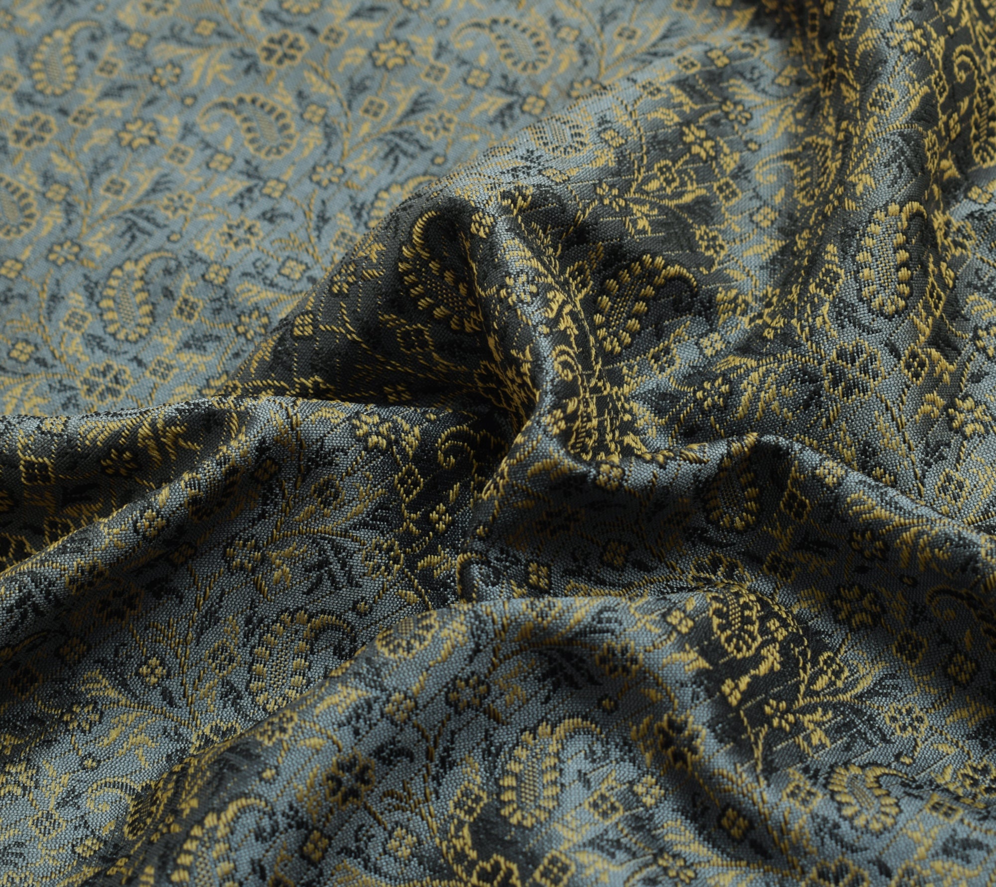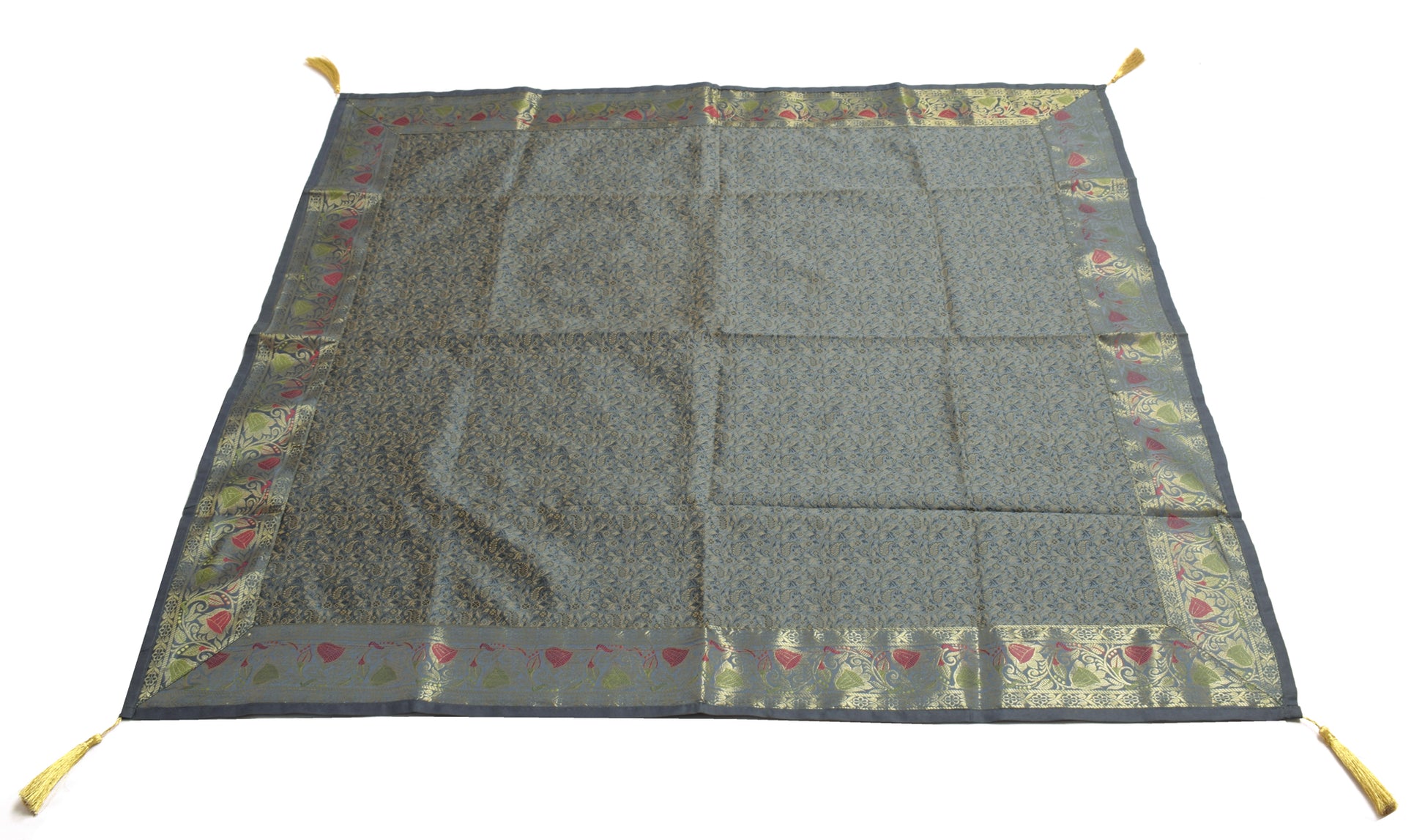 48 Inch Square Table Top Cover Gray Woven Zari Border Silk Brocade Cloth