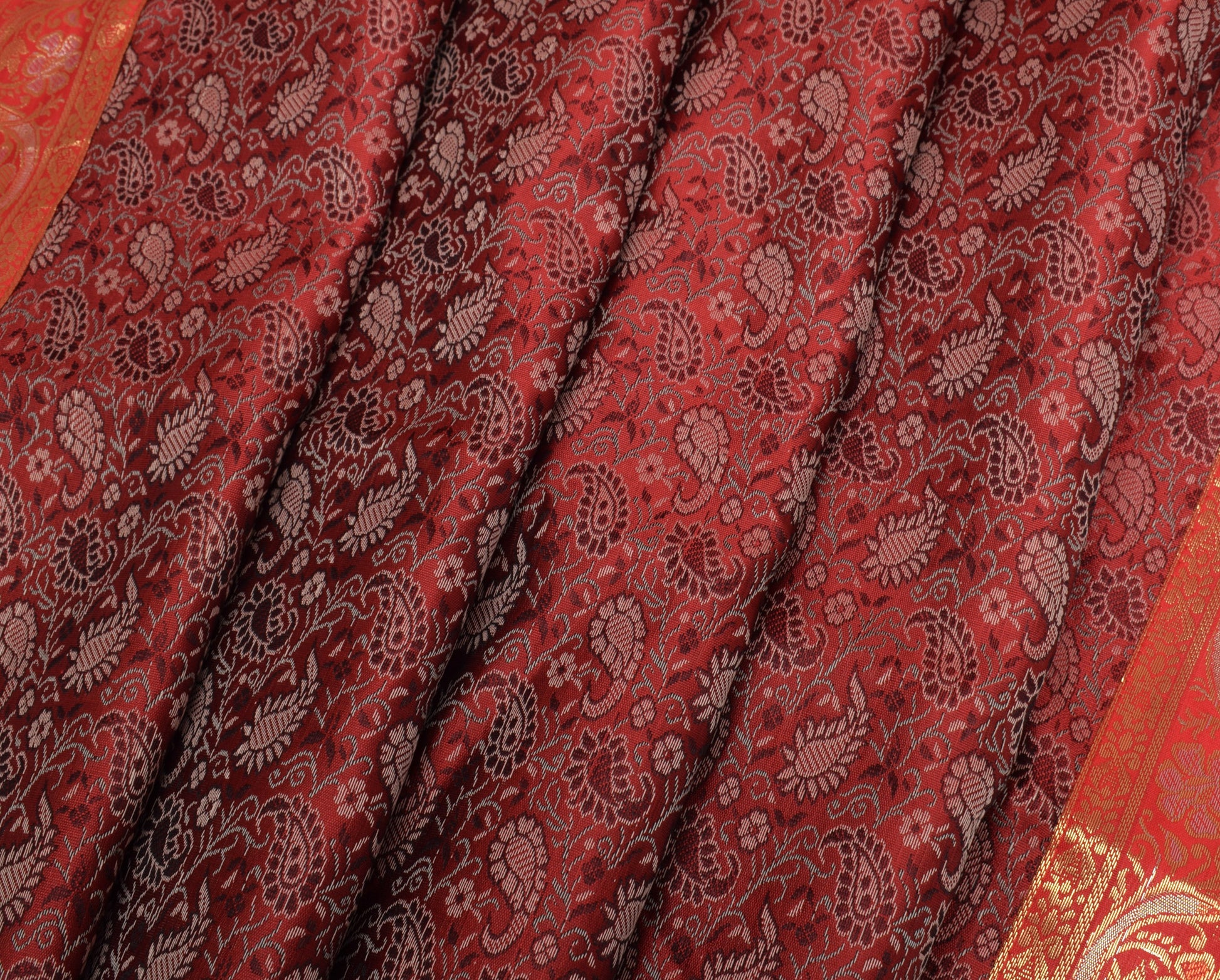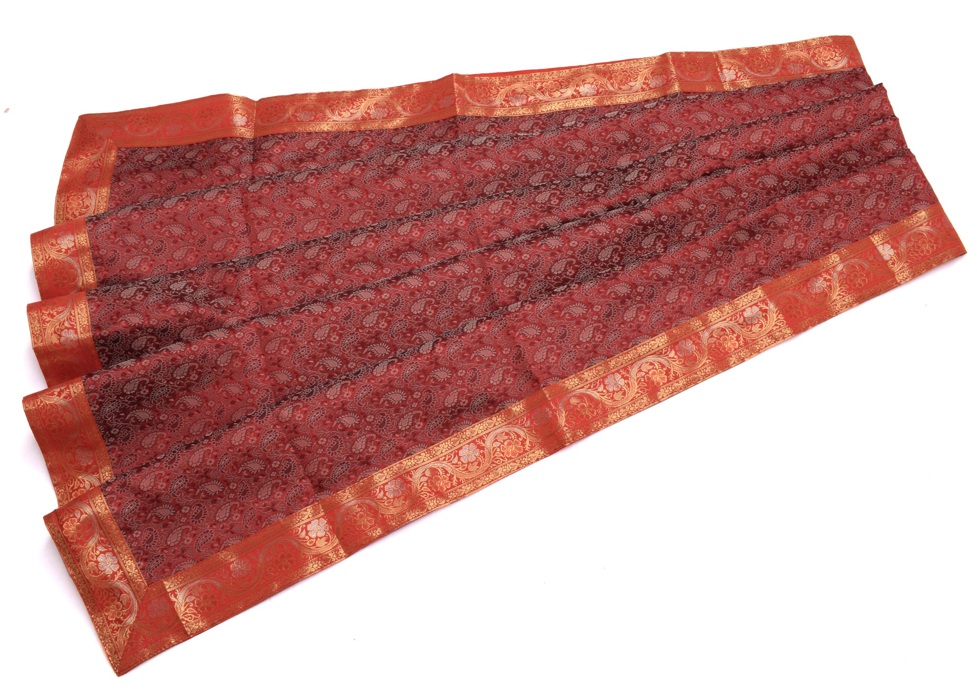 88"x 47" Dining Table Top Cover Indian Banarasi Silk Woven Paisley Cloth Maroon
