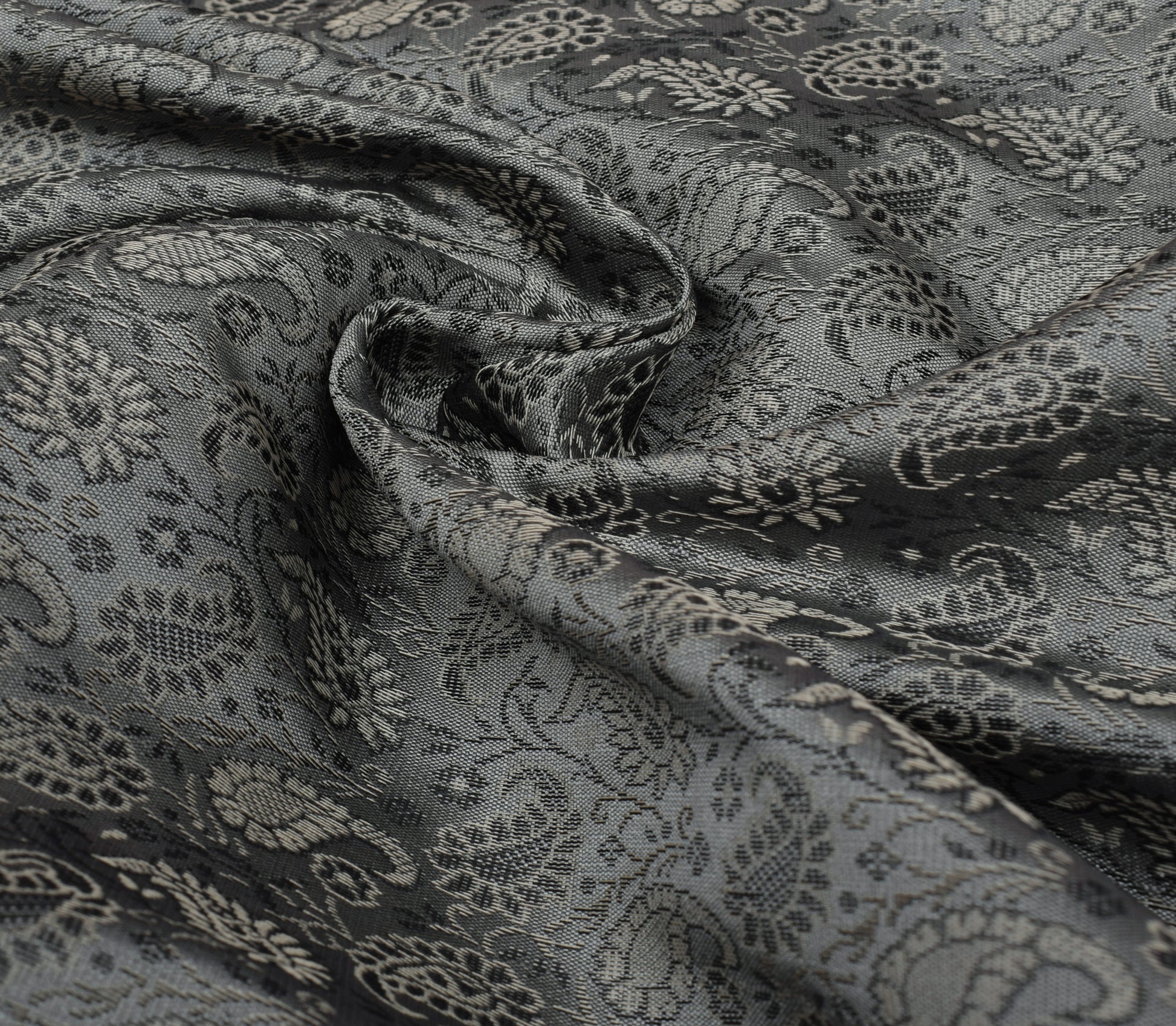 88"x 47" Dining Table Top Cover Indian Banarasi Silk Woven Paisley Gray Cloth