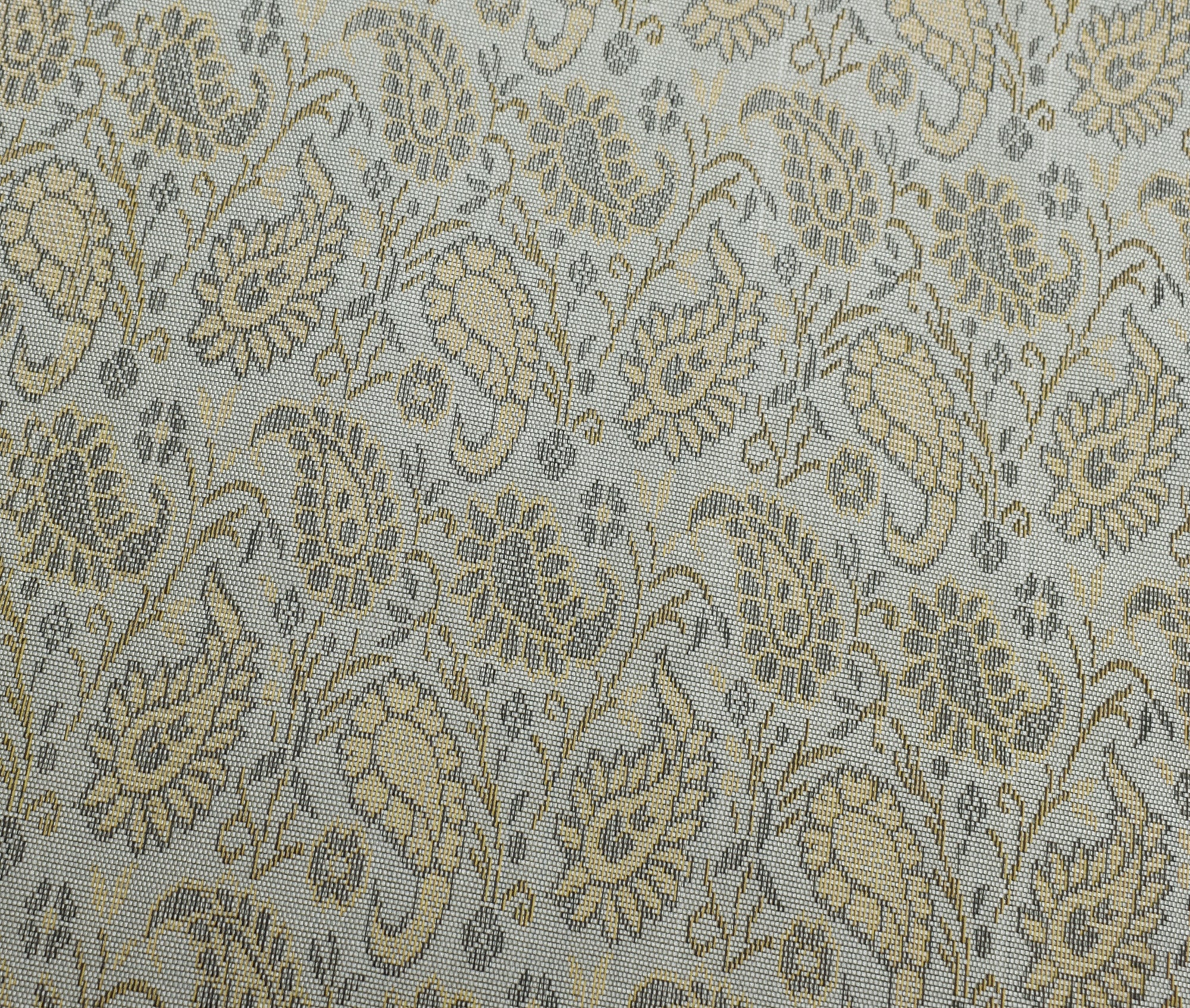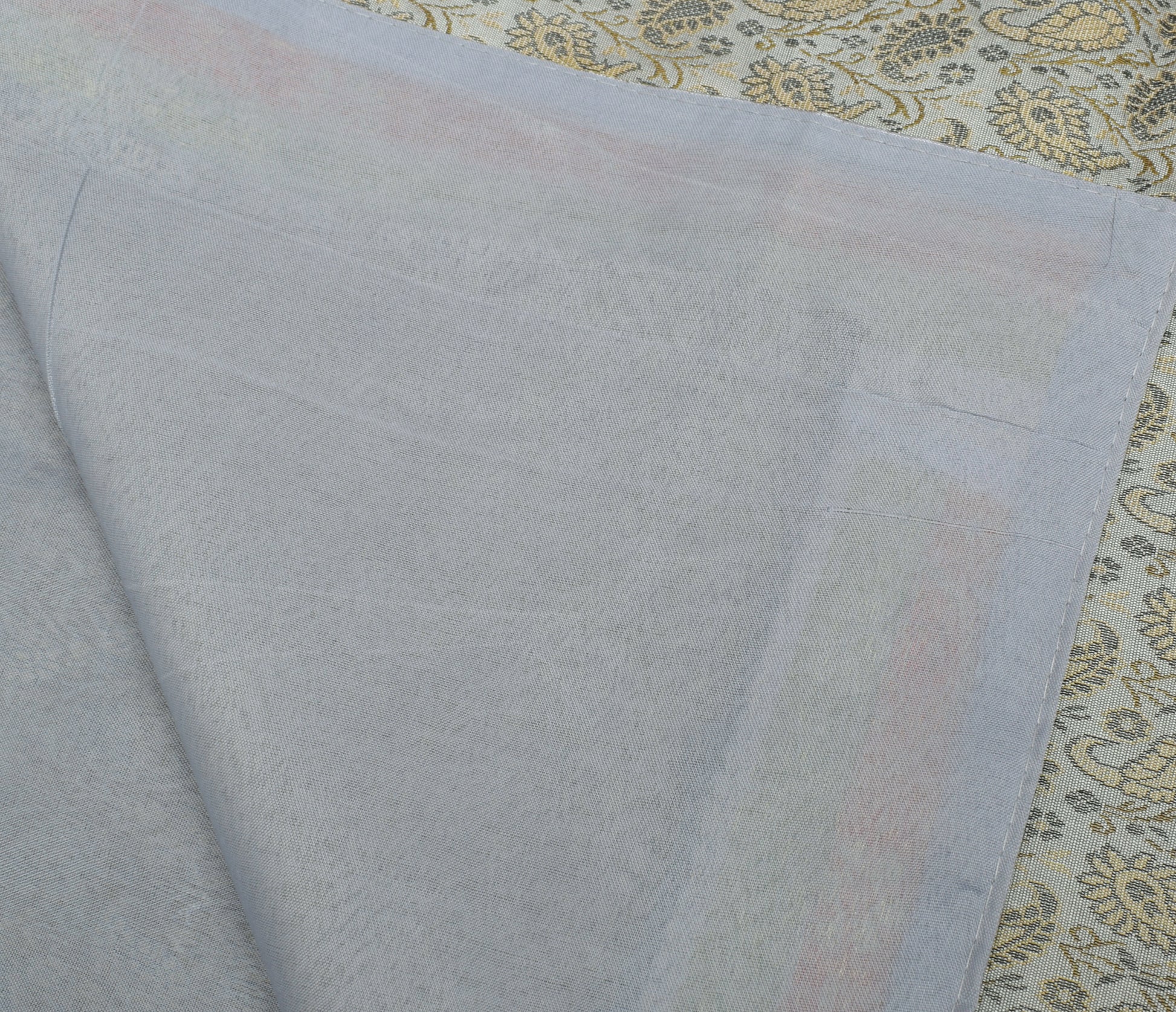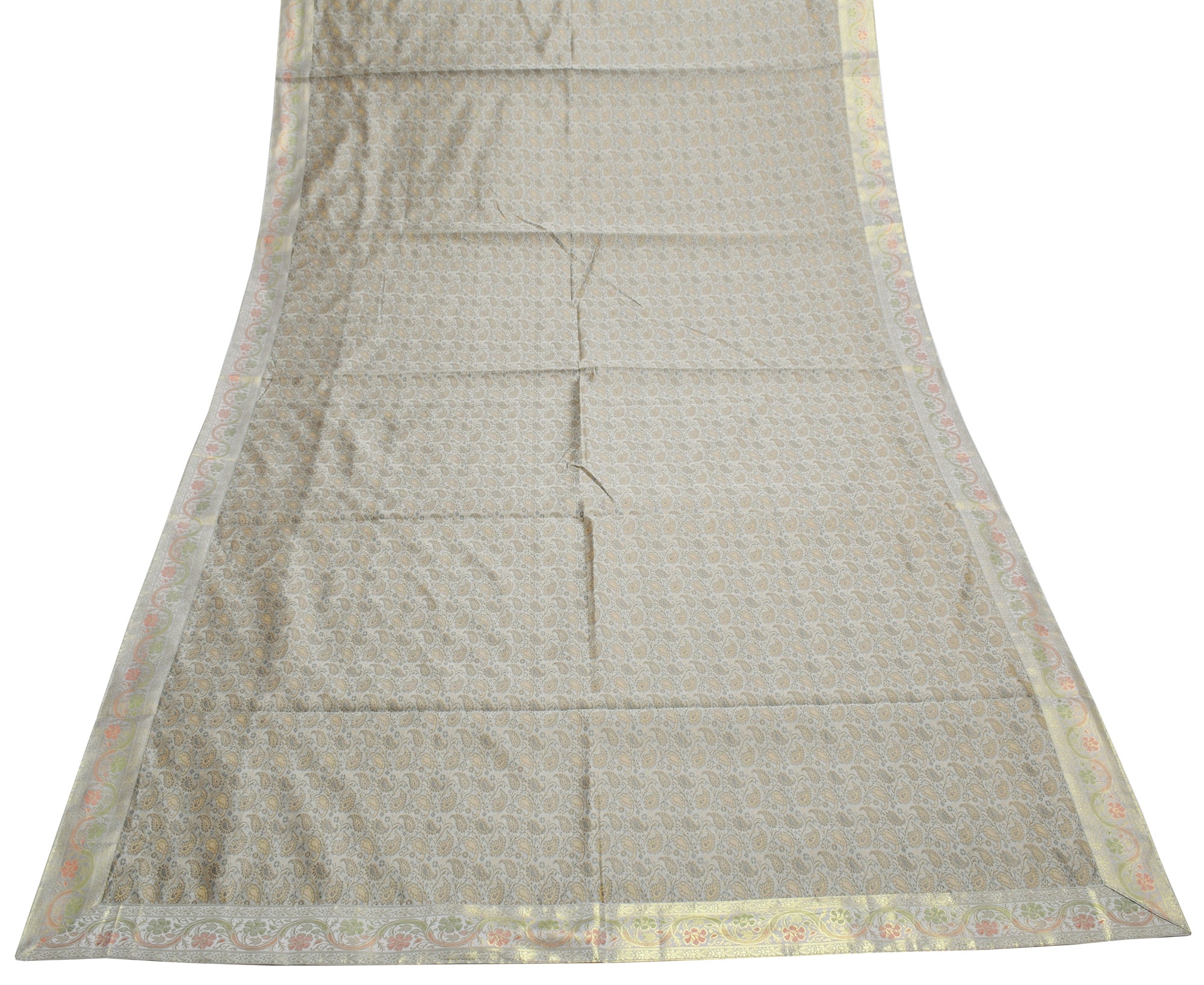 48 Square Indian Banarasi Silk Woven Paisley Dining Table Top Cover Cloth Gray