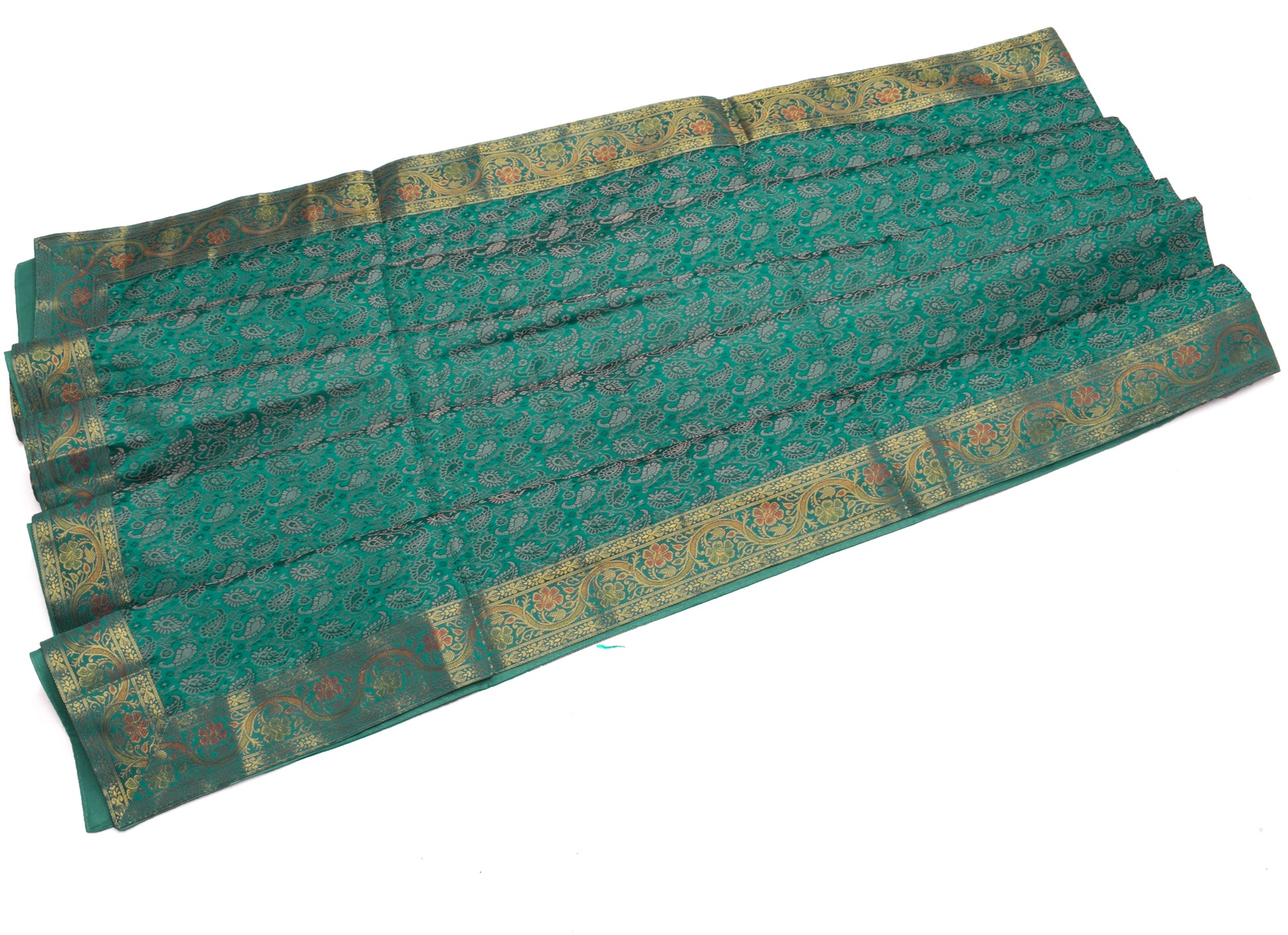 88" x 47"Dining Table Indian Banarasi Silk Woven Paisley Top Cover Cloth Green