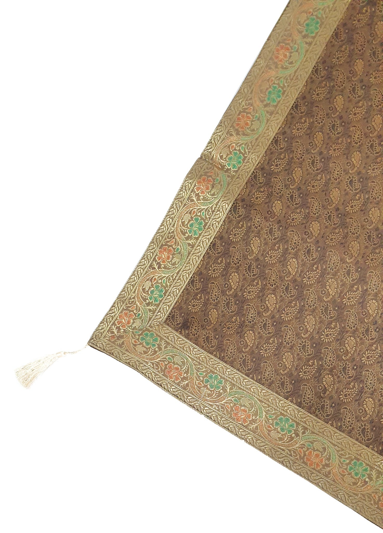 48"Square Banarasi Dining Table Top Cover Coffee Brown Silk Woven Paisley Cloth