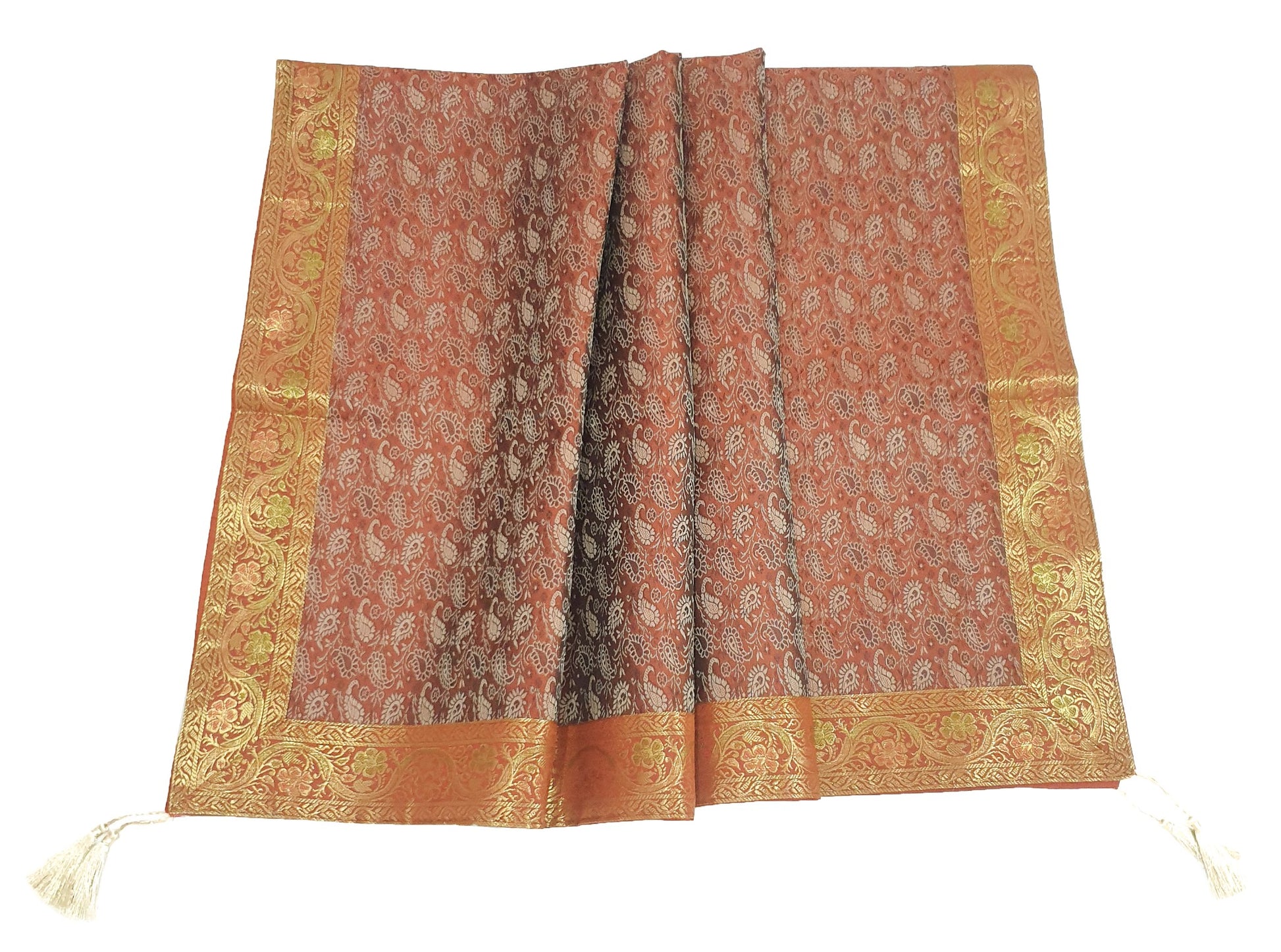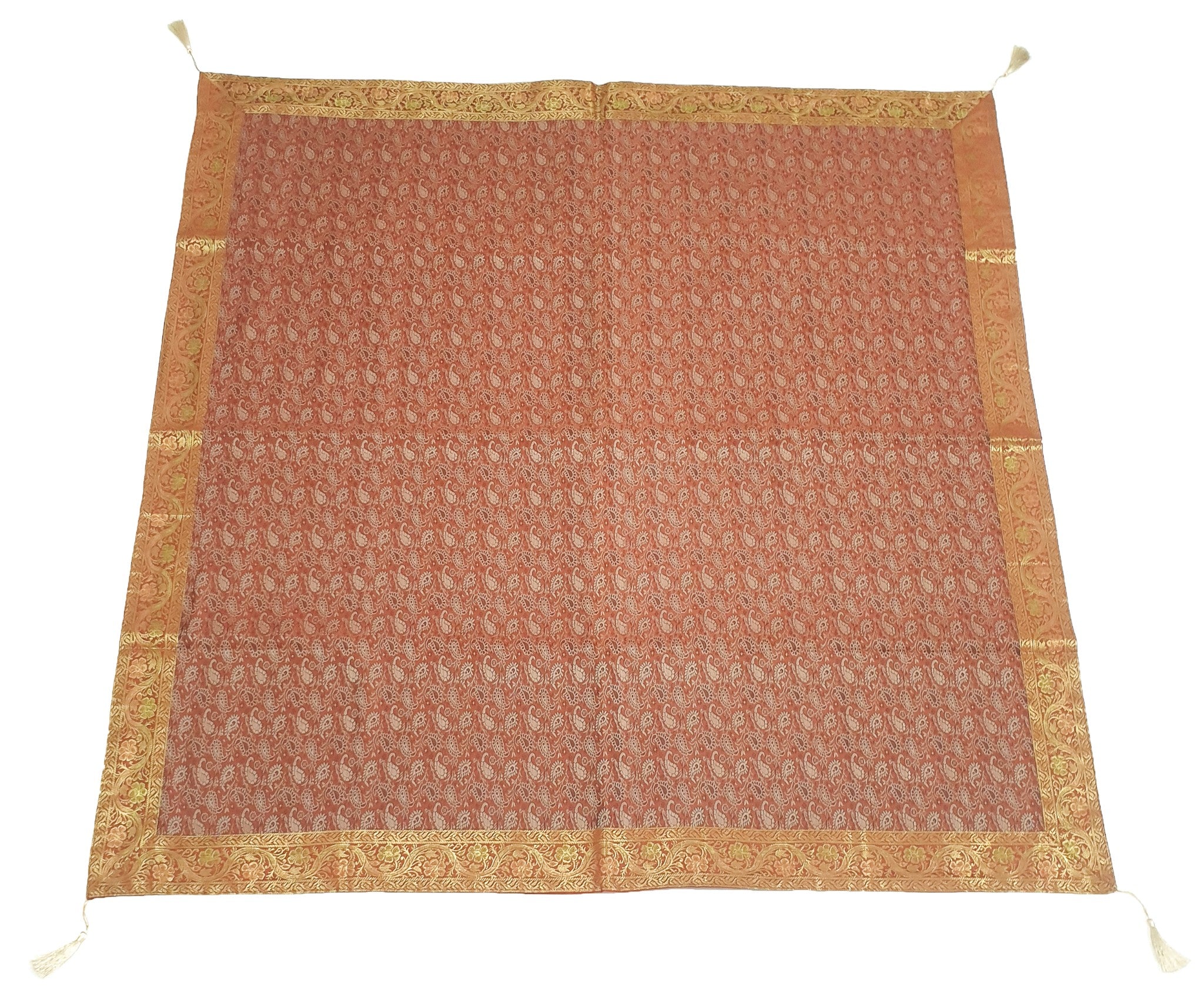 48"Square Banarasi Dining Table Top Cover Rust Indian Silk Woven Paisley Cloth
