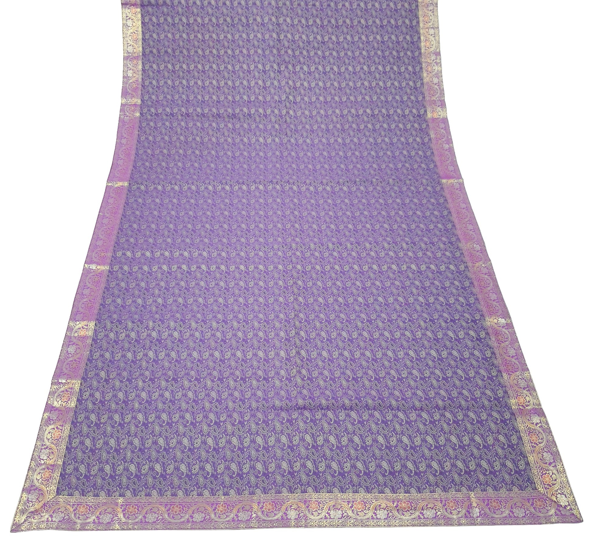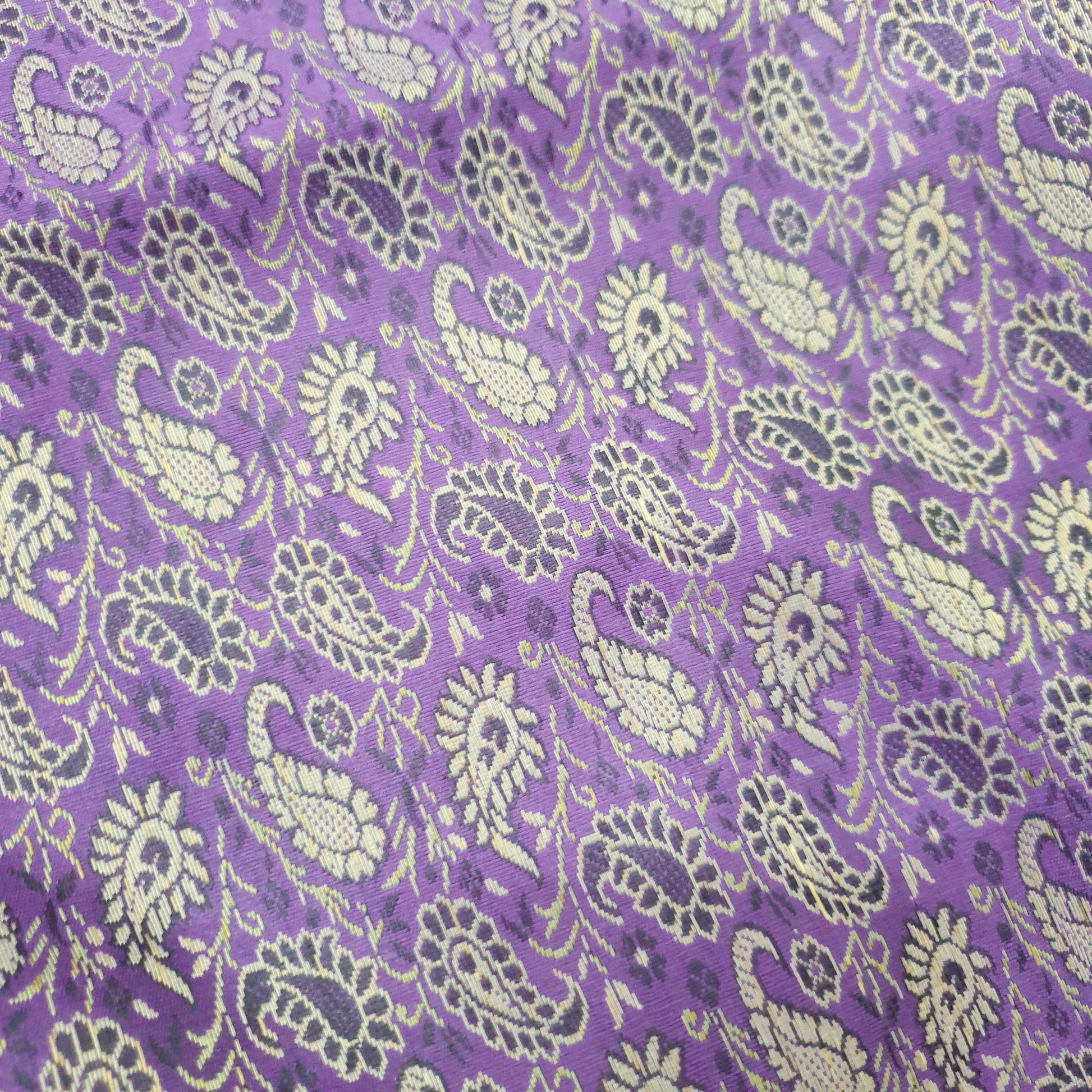 90"x48" Dining Table Top Cover Indian Banarasi Silk Woven Paisley Purple Cloth