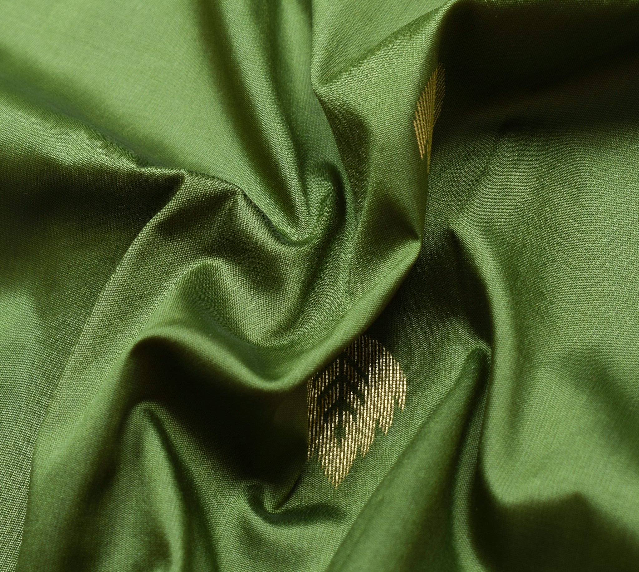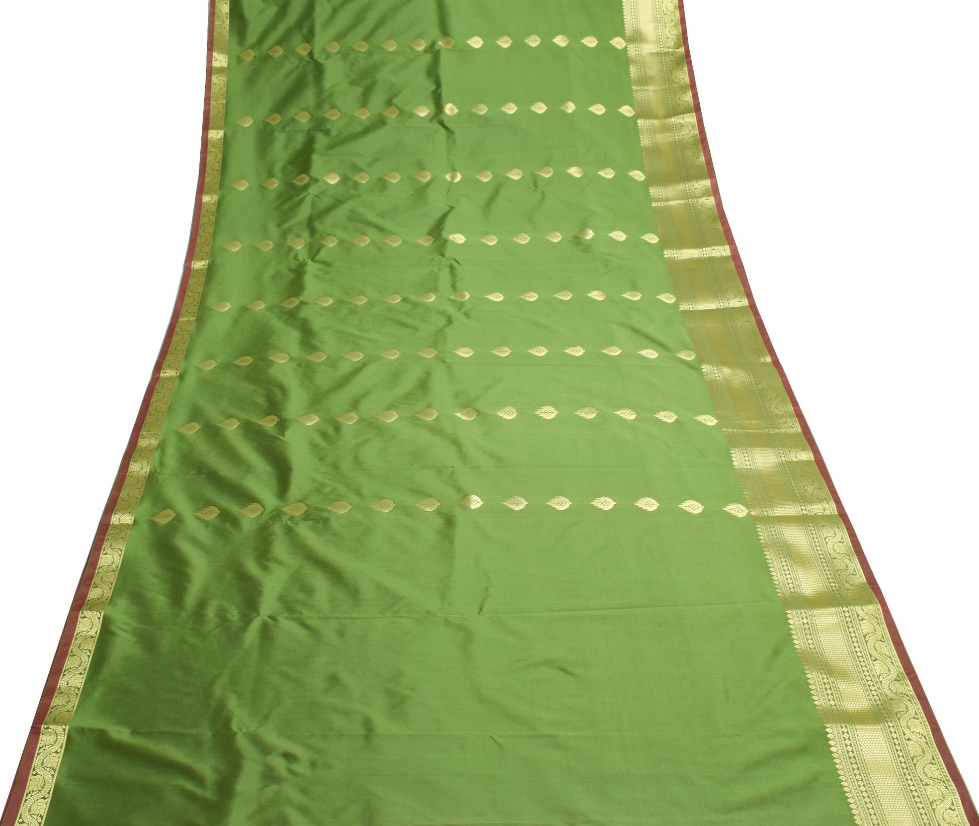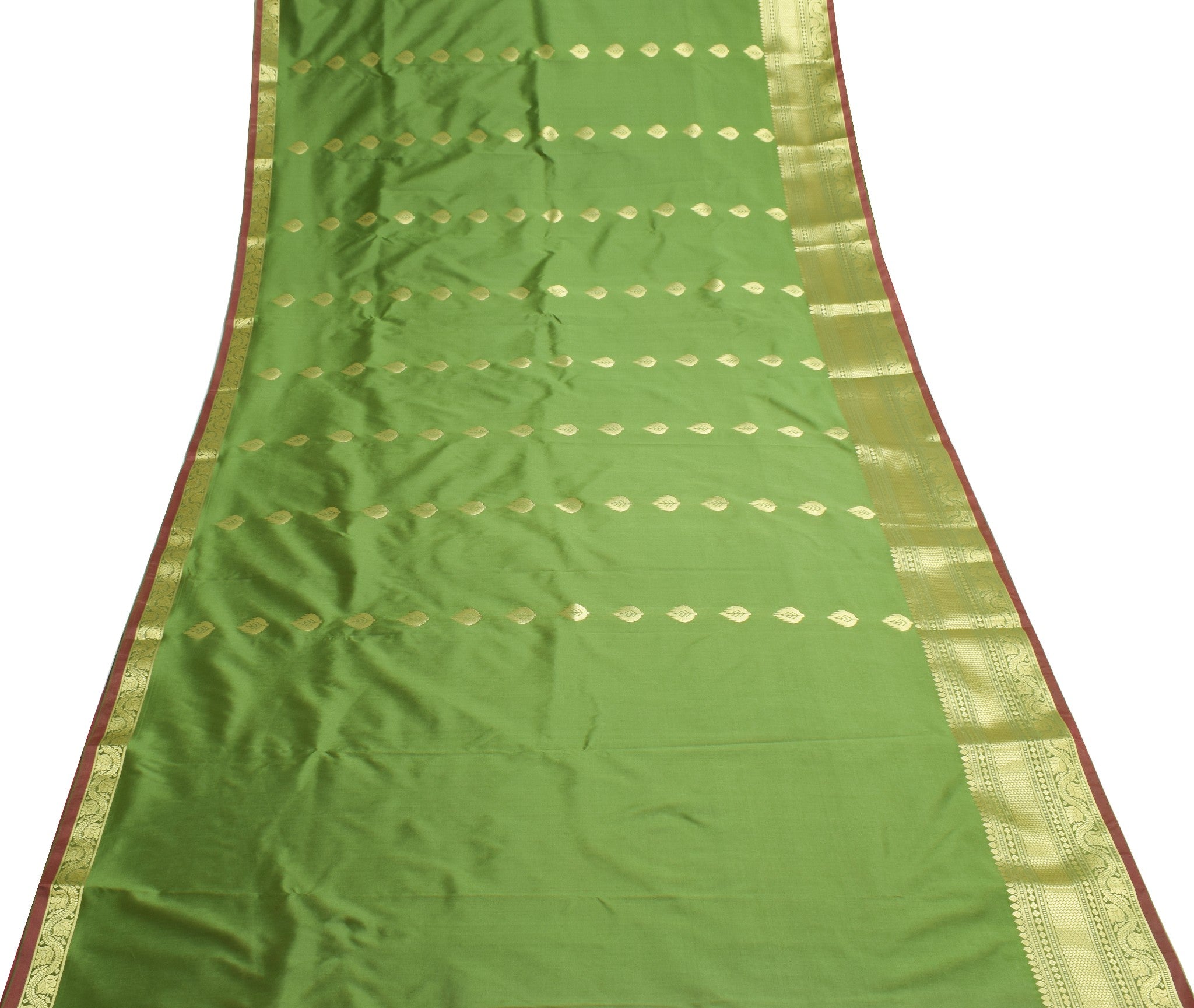 Banarasi Art Silk Saree Blouse Fabric Henna Green Leaves Gold Zari Weaving Sari