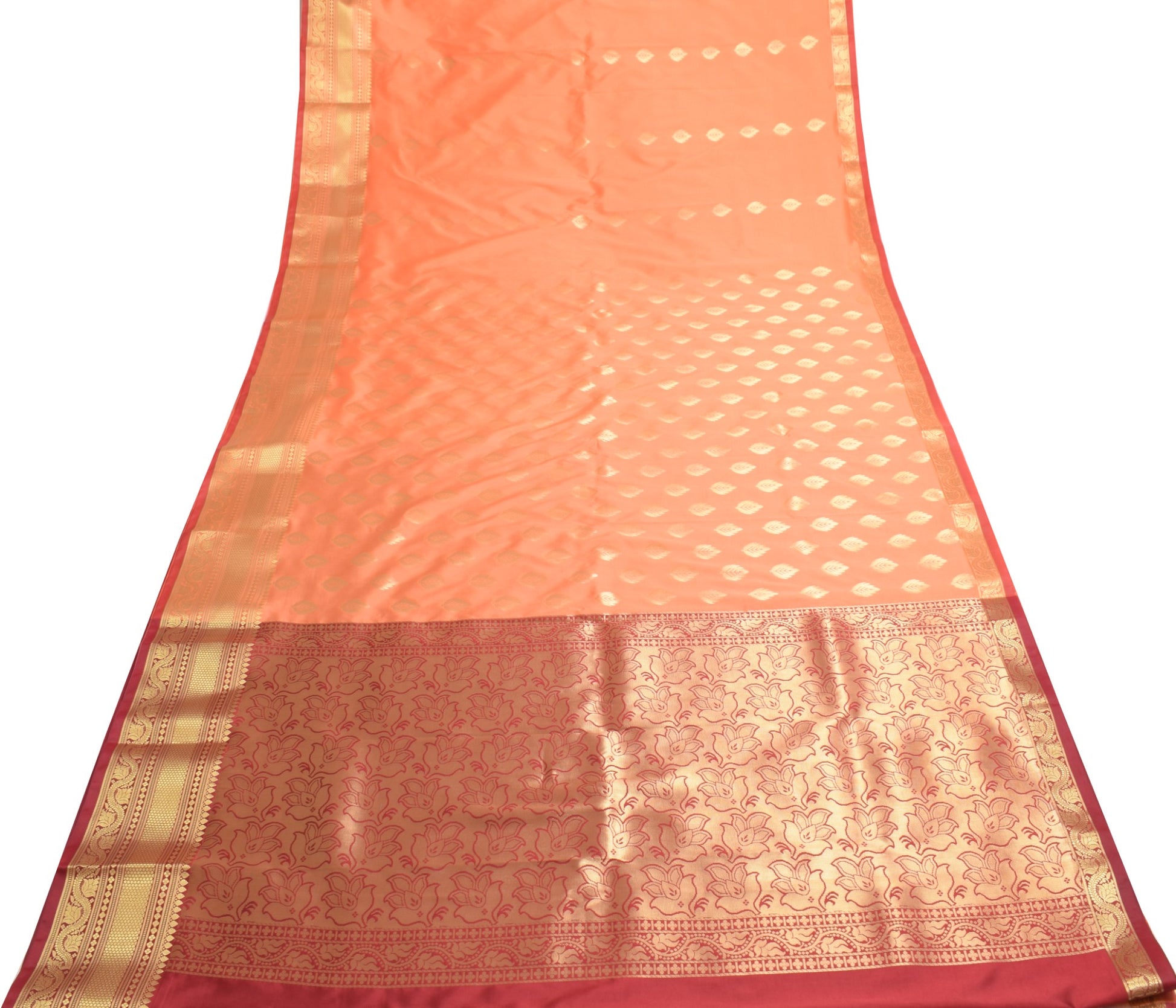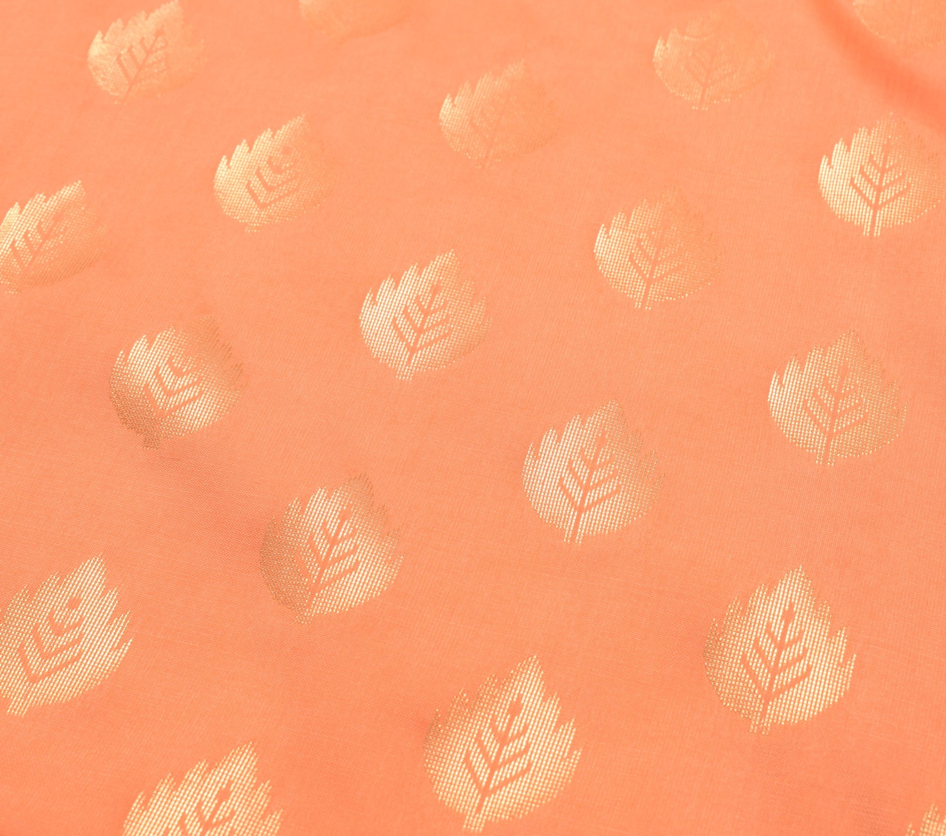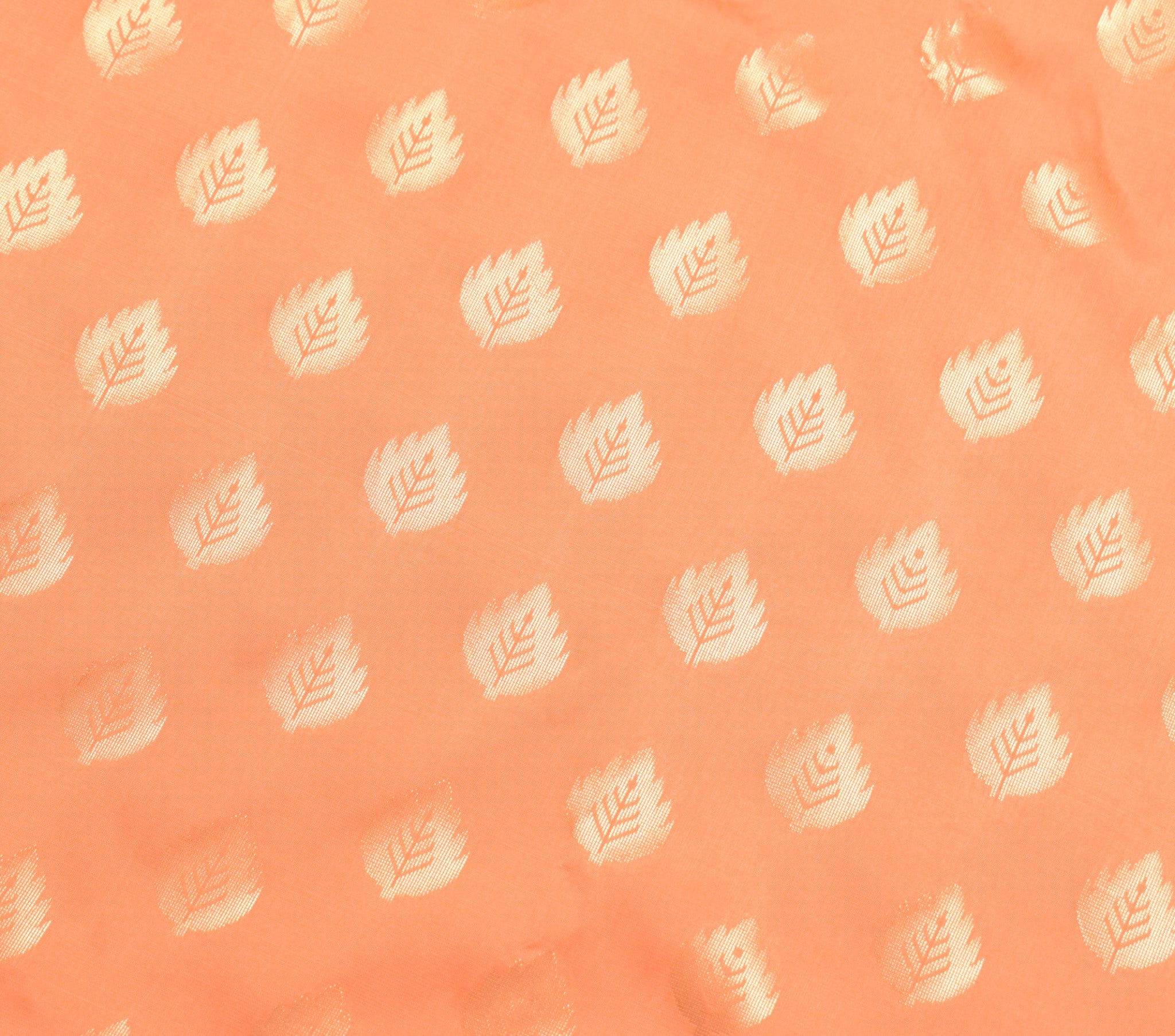 Banarasi Art Silk Saree Blouse Fabric Peach Leaves Gold Zari Weaving Indian Sari
