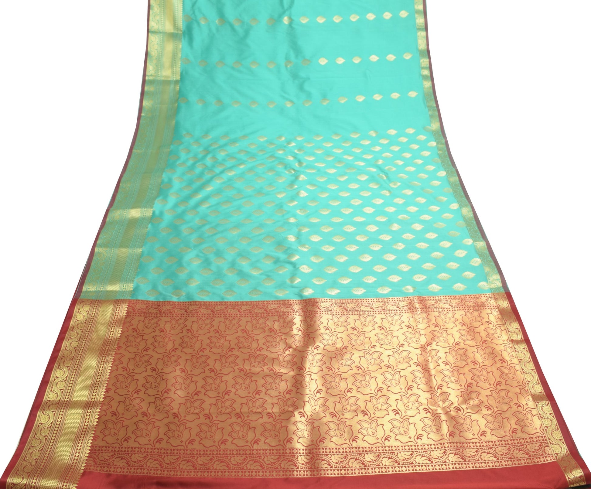 Banarasi Art Silk Saree with Blouse Fabric Aqua Green Leaves Gold Zari Weaving