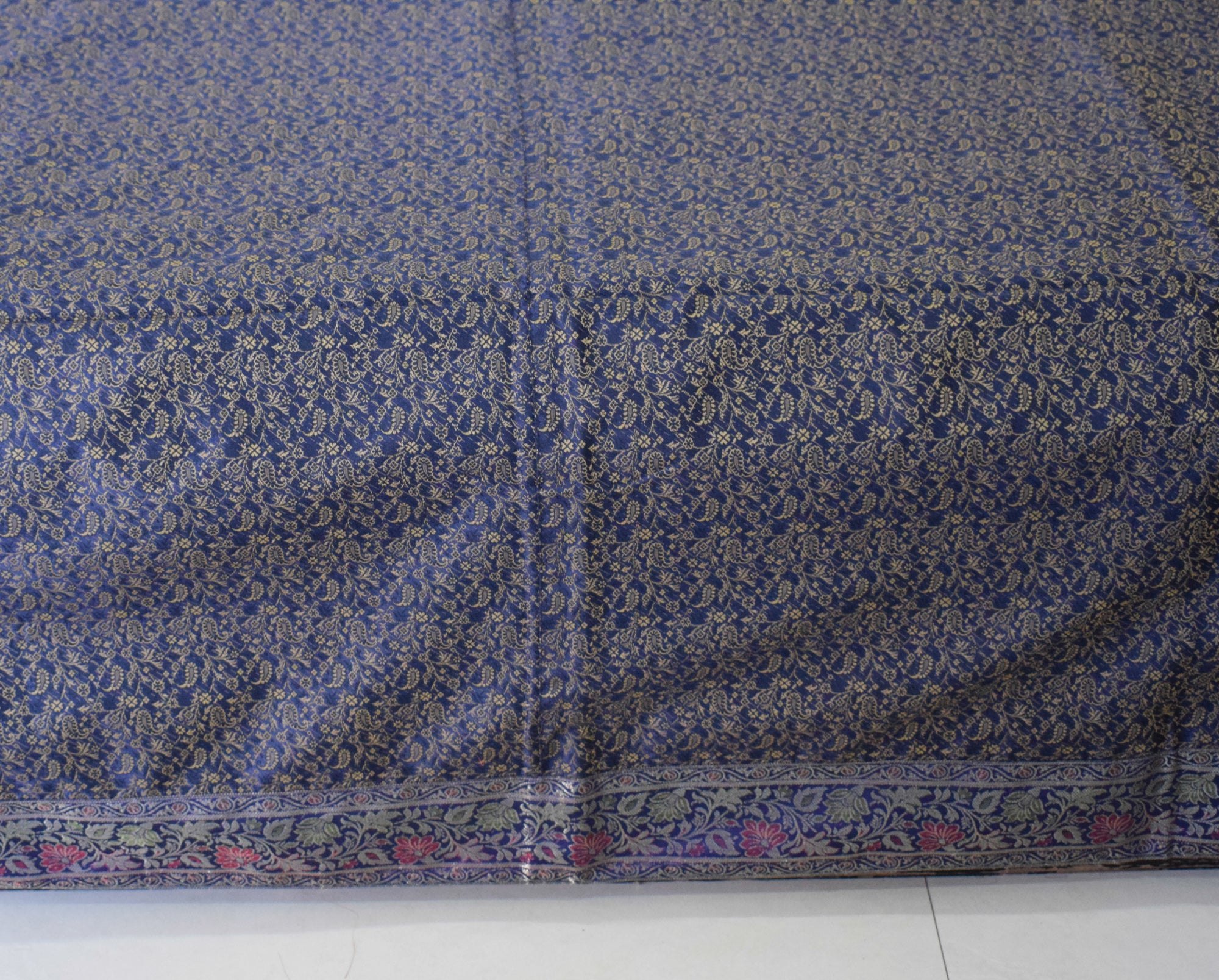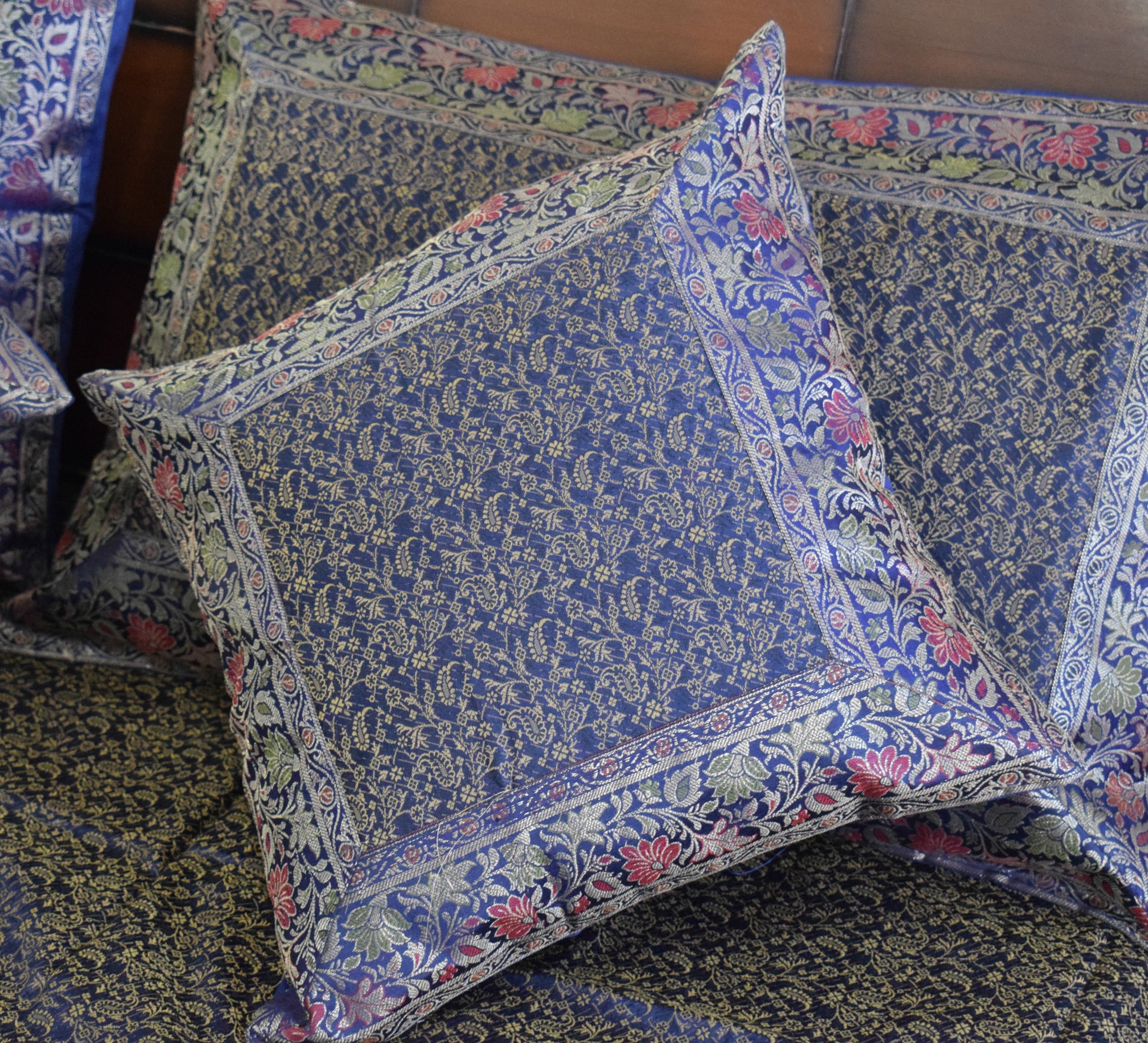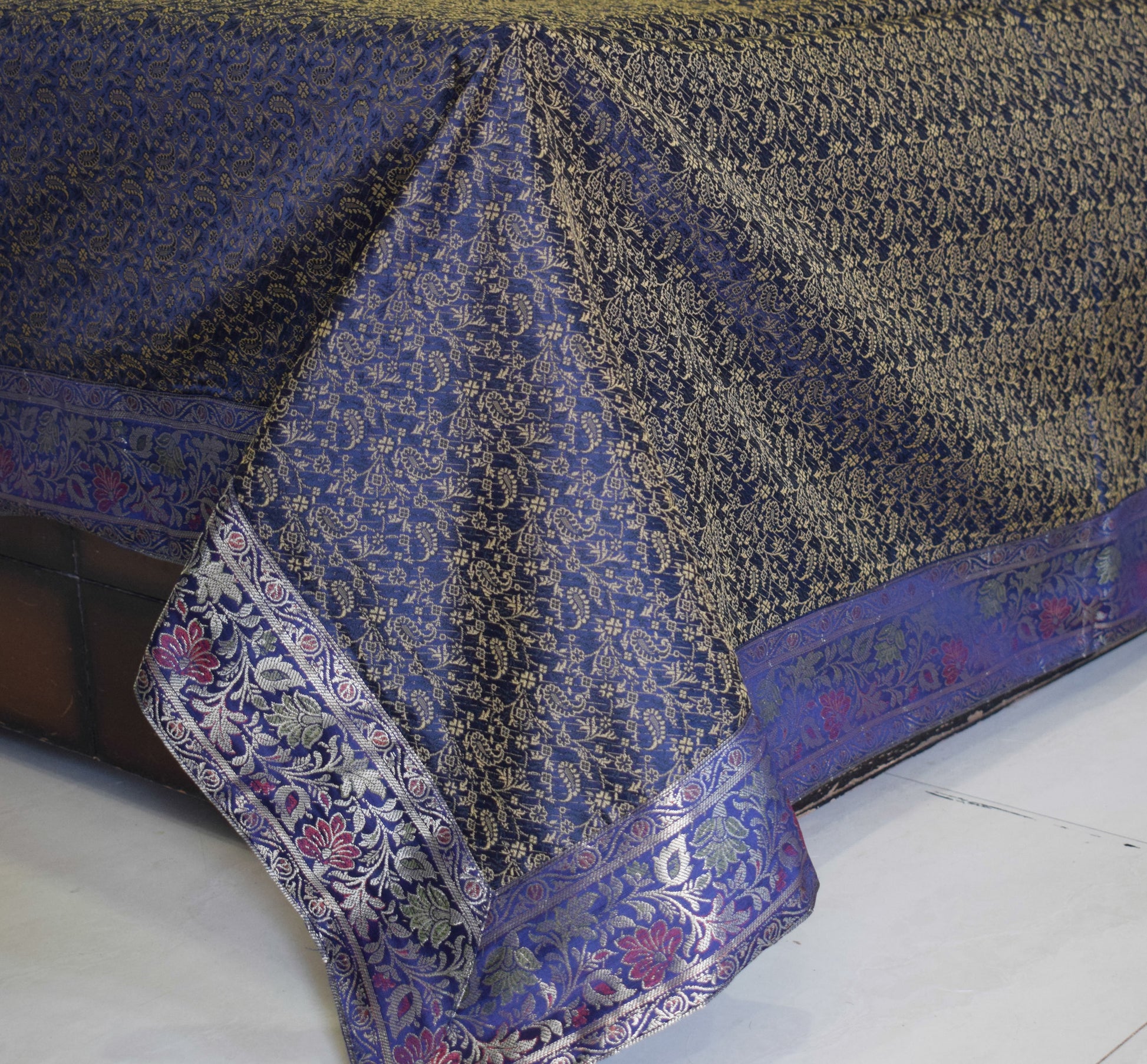 Banarasi Bed Cover Set Indian Ethnic Traditional Silk Woven Resham Brocade Blue