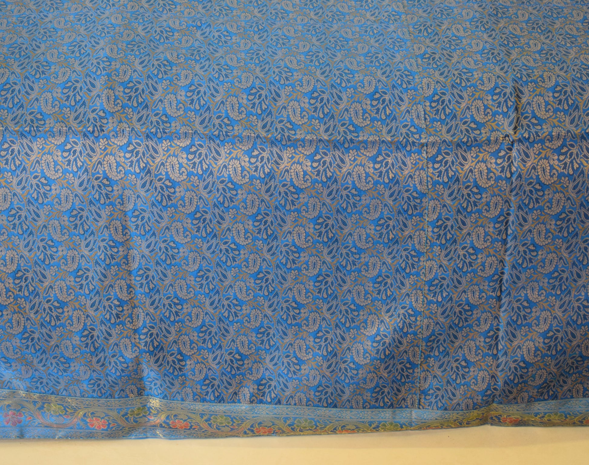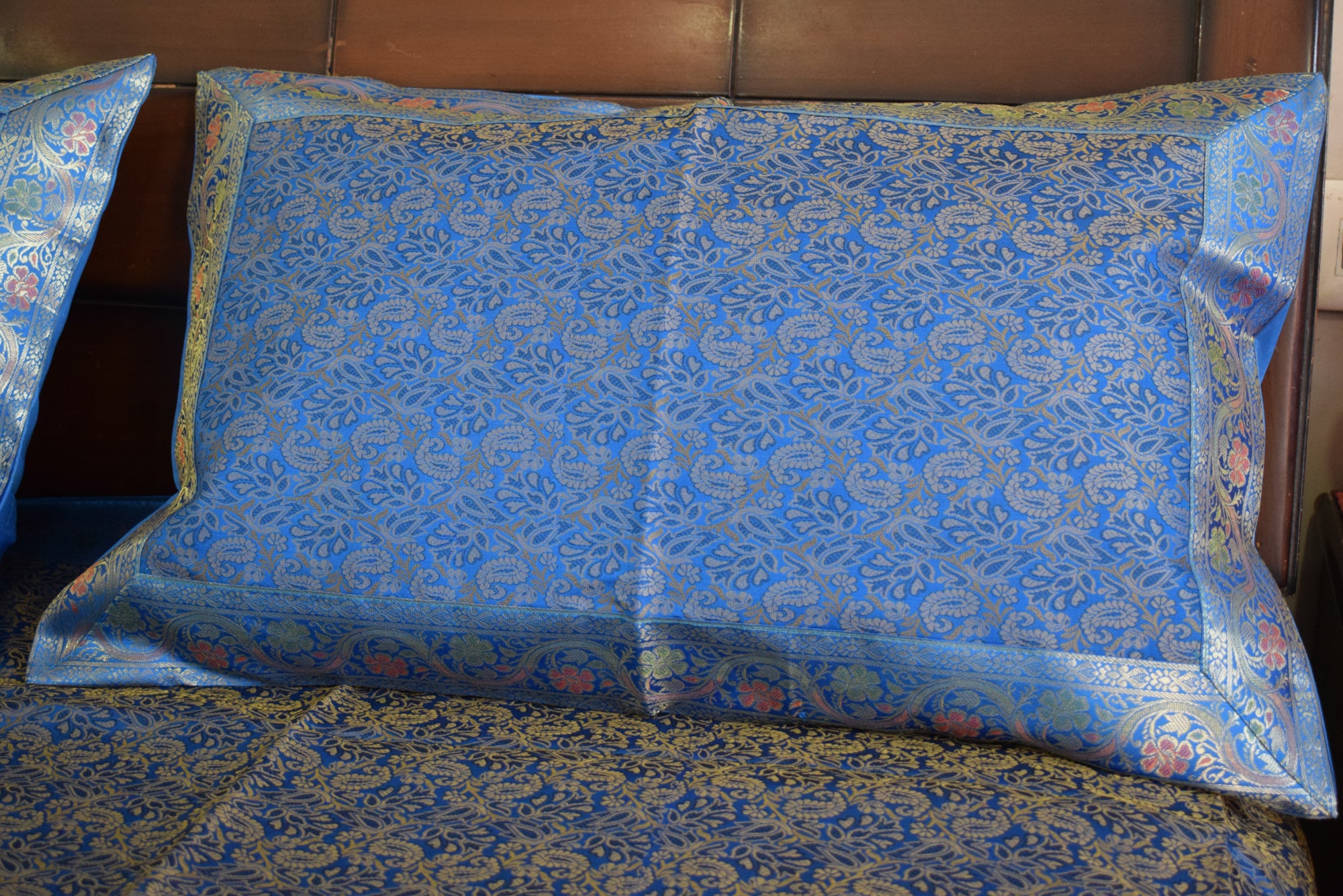 Banarasi Bed Cover Set Indian Ethnic Traditional Silk Woven Resham Brocade Blue