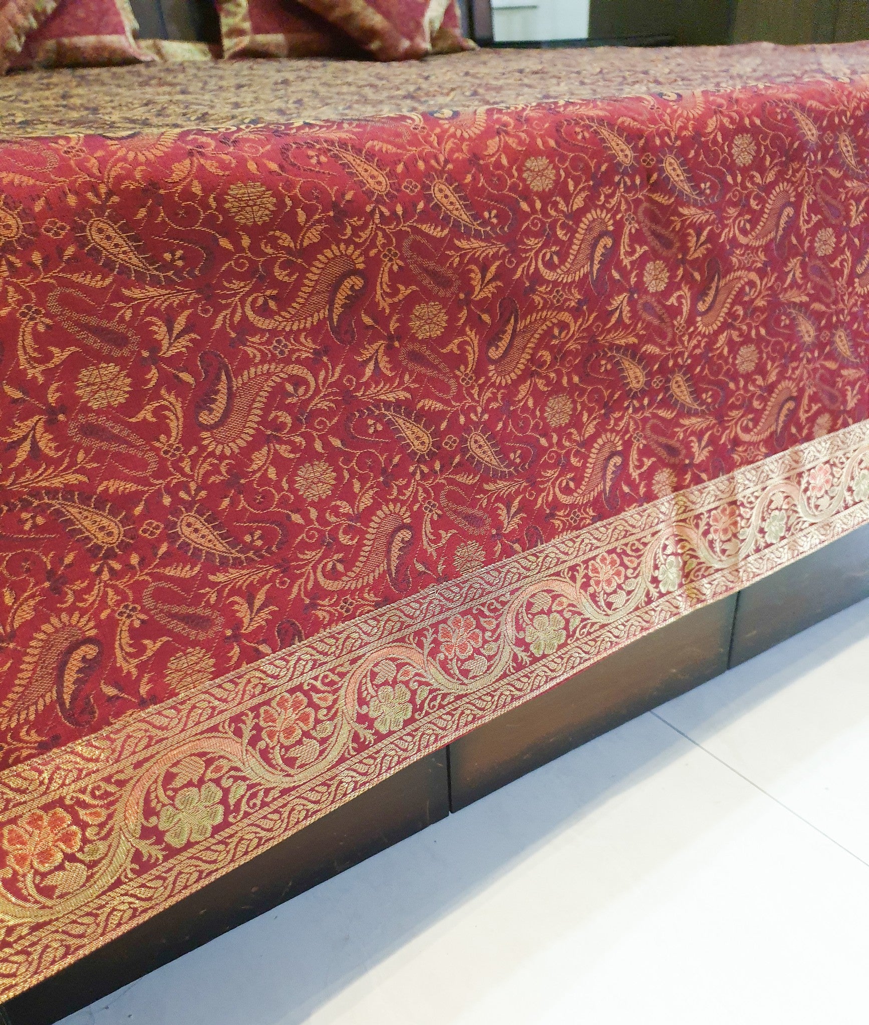 Banarasi Vastra Presents Bed Cover Set of 5 Piece in Banarasi Silk Fabric with Woven Zari Brocade Patch work in Below Dimensions:
