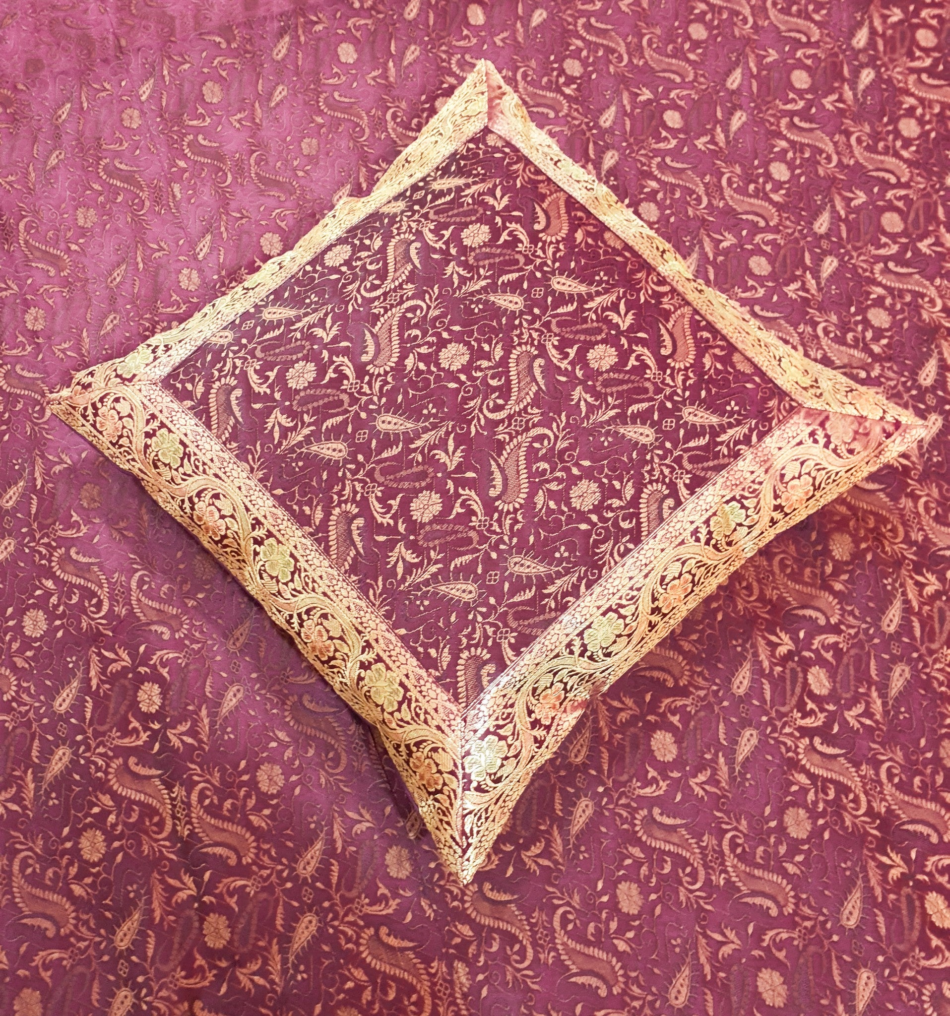 Banarasi Bed Cushion & Pillow Cover Set Wine Art Silk Woven Brocade Indian Gift