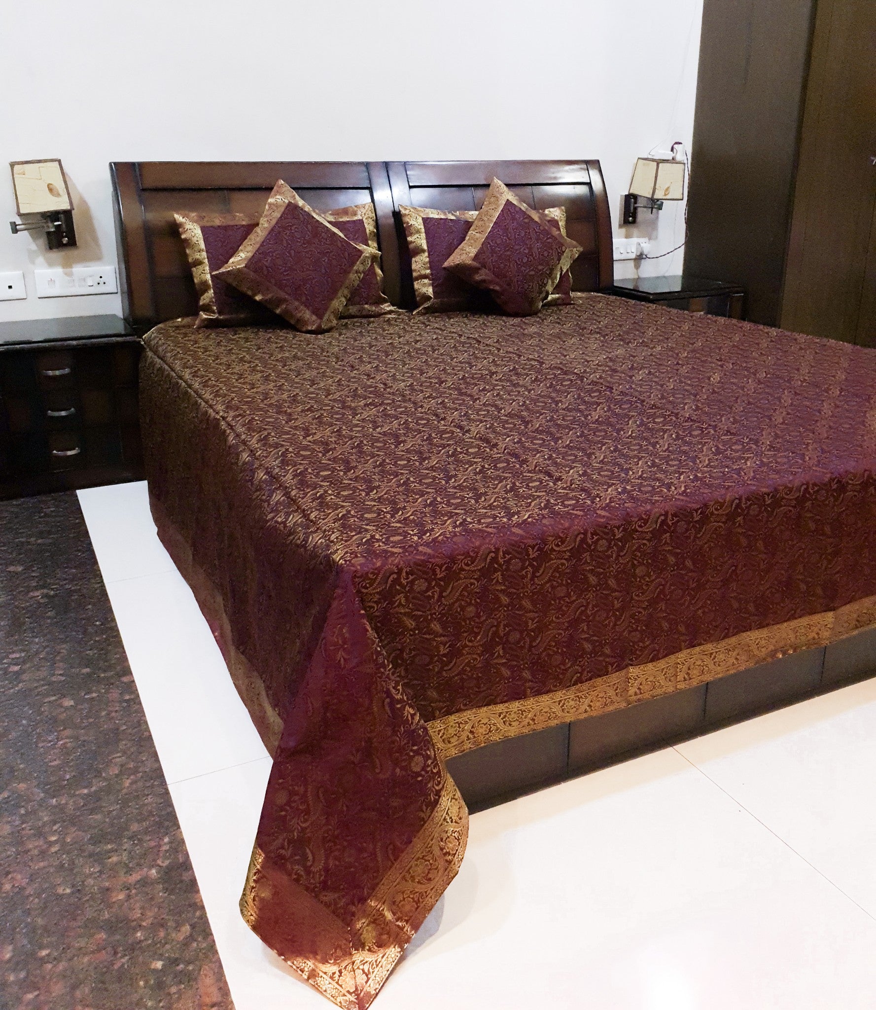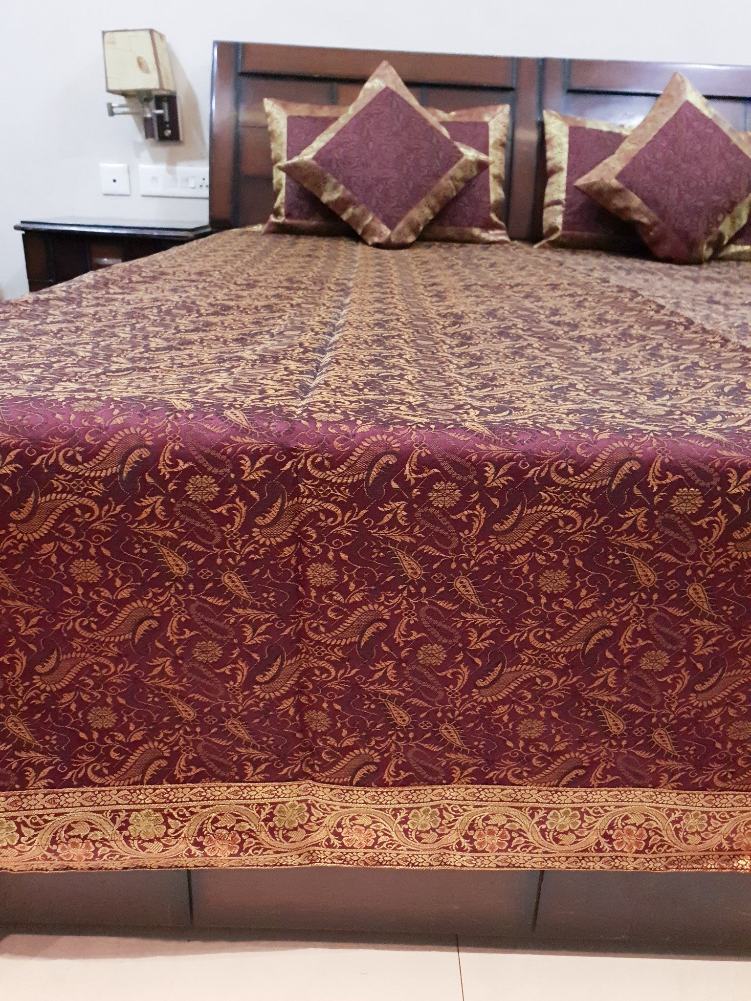 Banarasi Vastra Presents Bed Cover Set of 5 Piece in Banarasi Silk Fabric with Woven Zari Brocade Patch work in Below Dimensions: