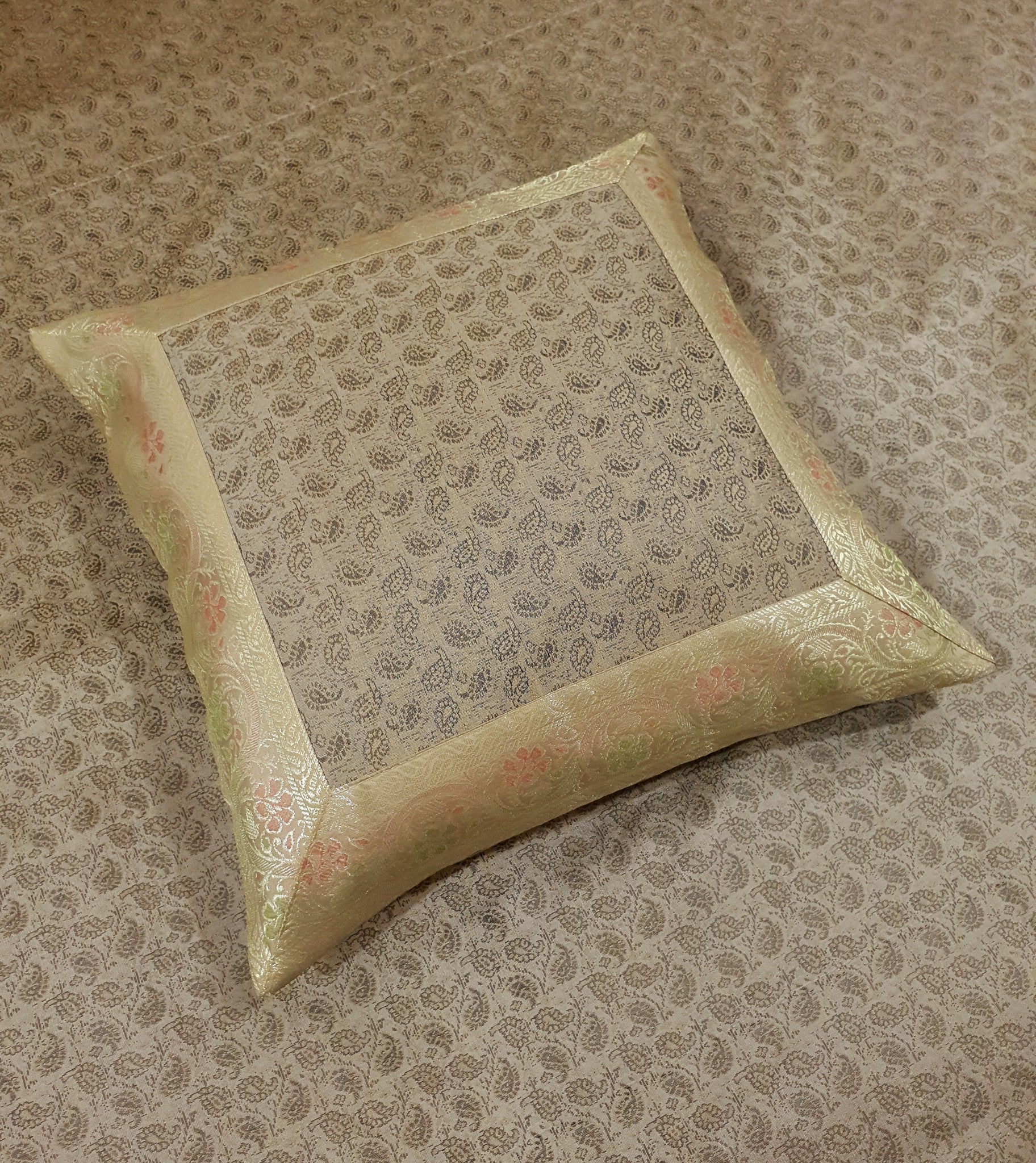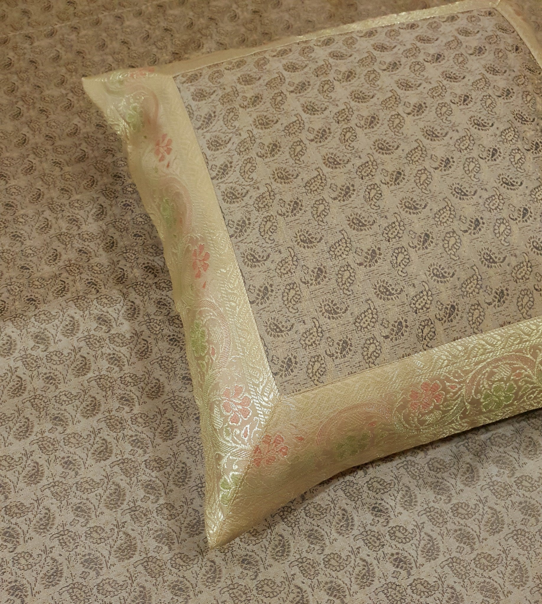 Banarasi Beige Bed Cushion & Pillow Cover Set Art Silk Woven Brocade Indian Gift