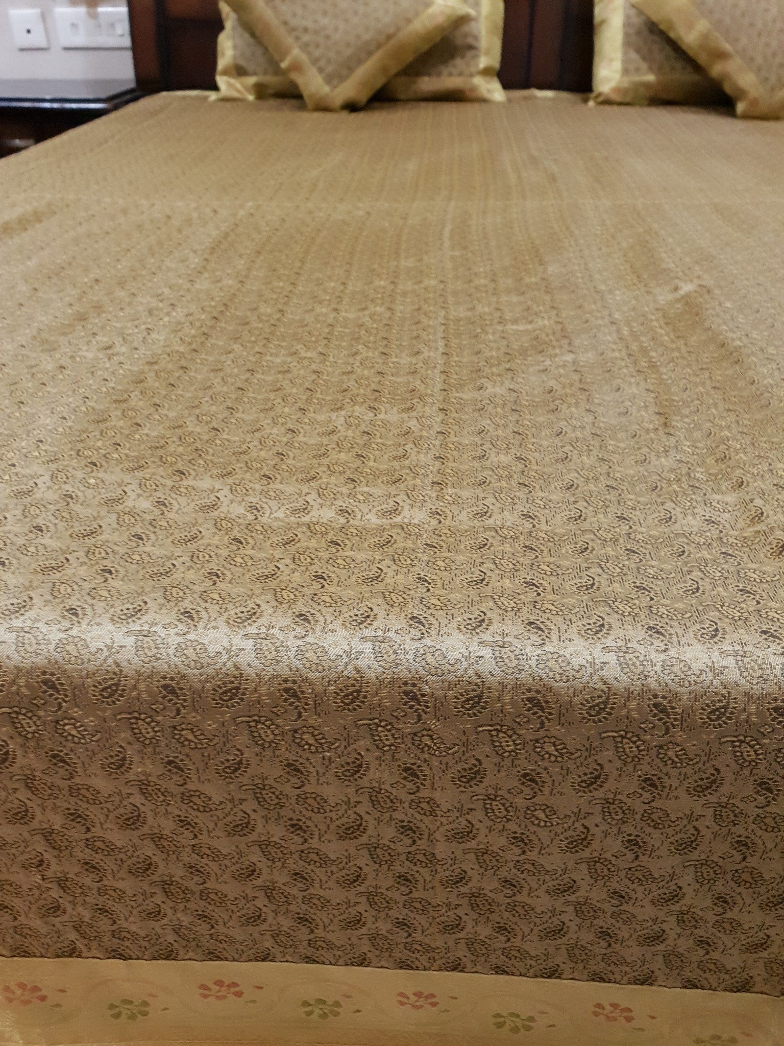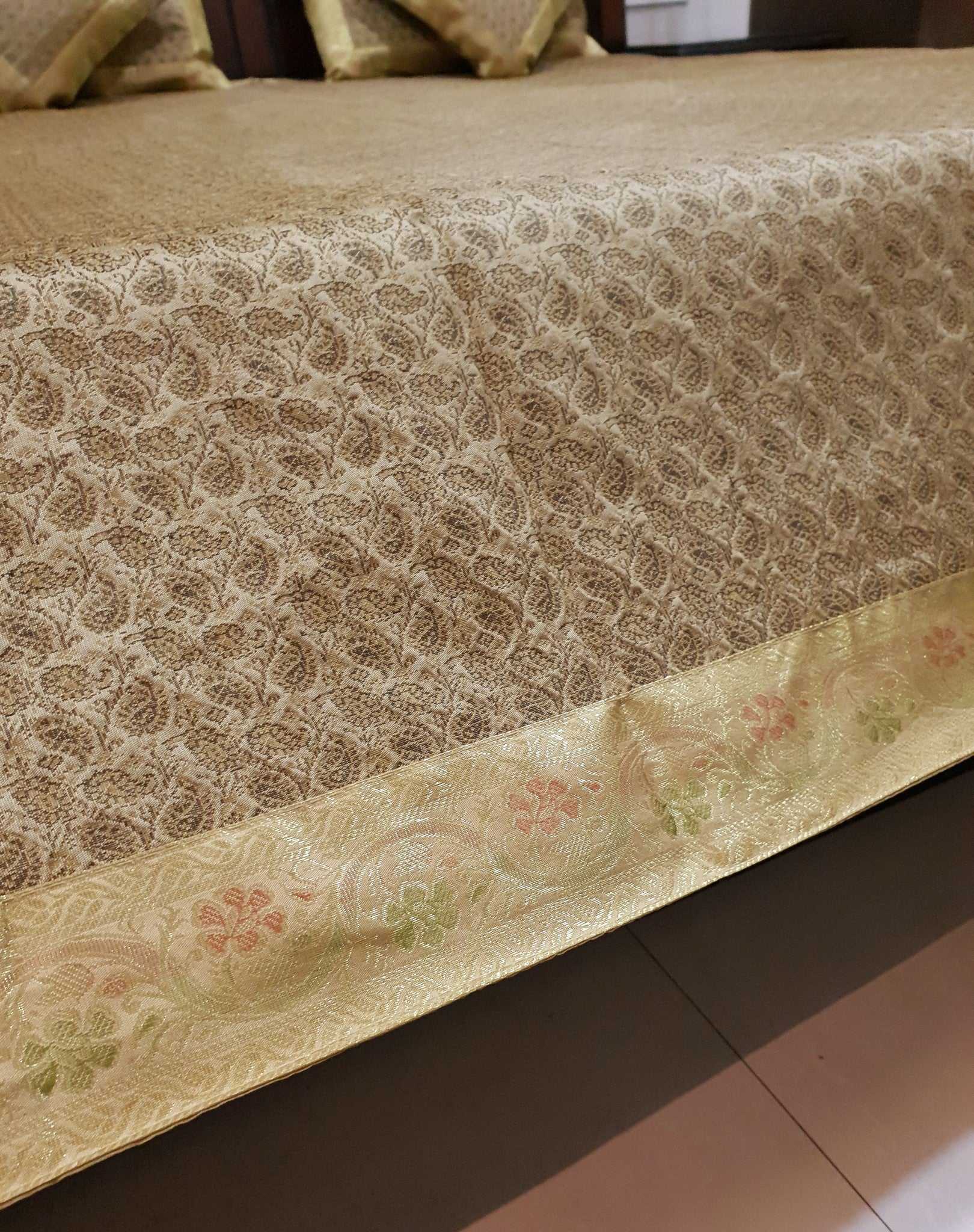 Banarasi Vastra Presents Bed Cover Set of 5 Piece in Banarasi Silk Fabric with Woven Zari Brocade Patch work in Below Dimensions: