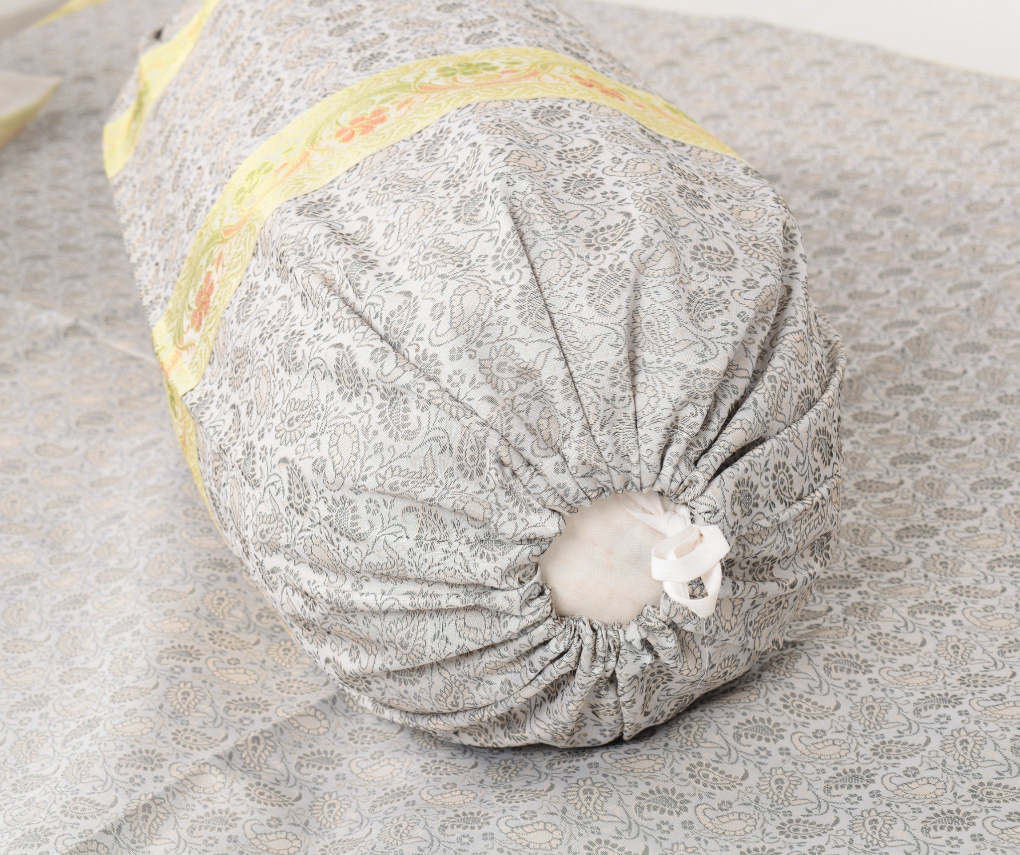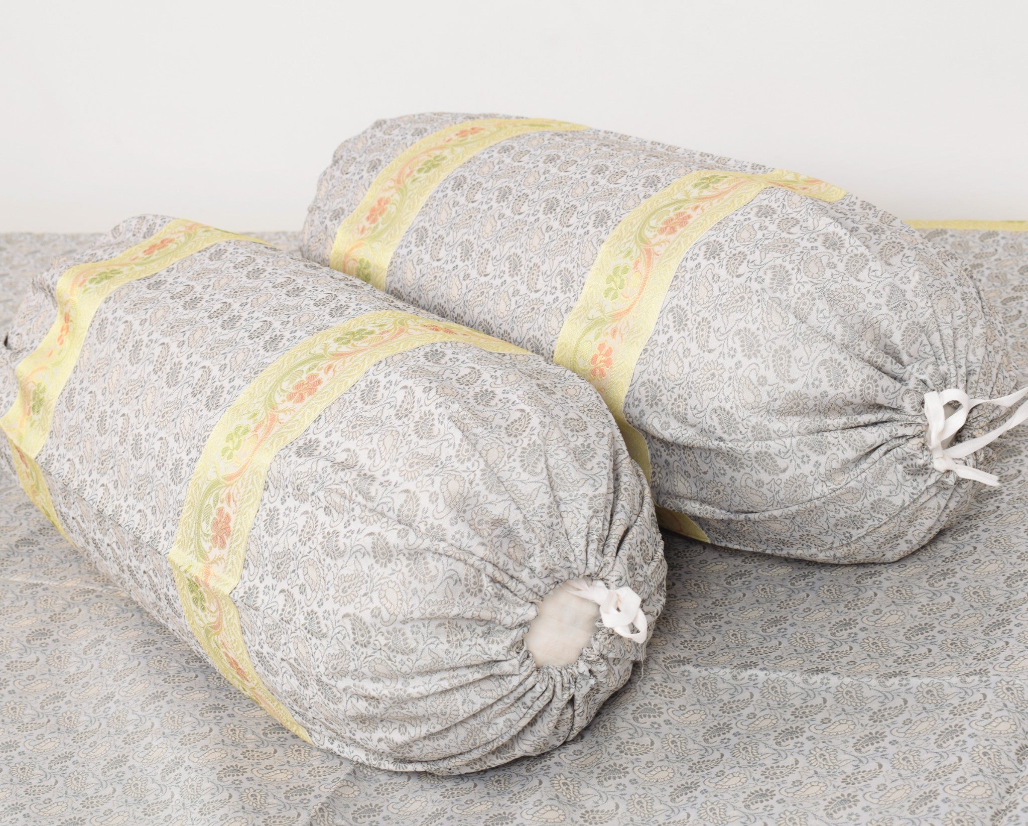 Banarasi Diwan Set– Charm in Silk Woven Zari Brocade Gray Cushion Bolster Cover