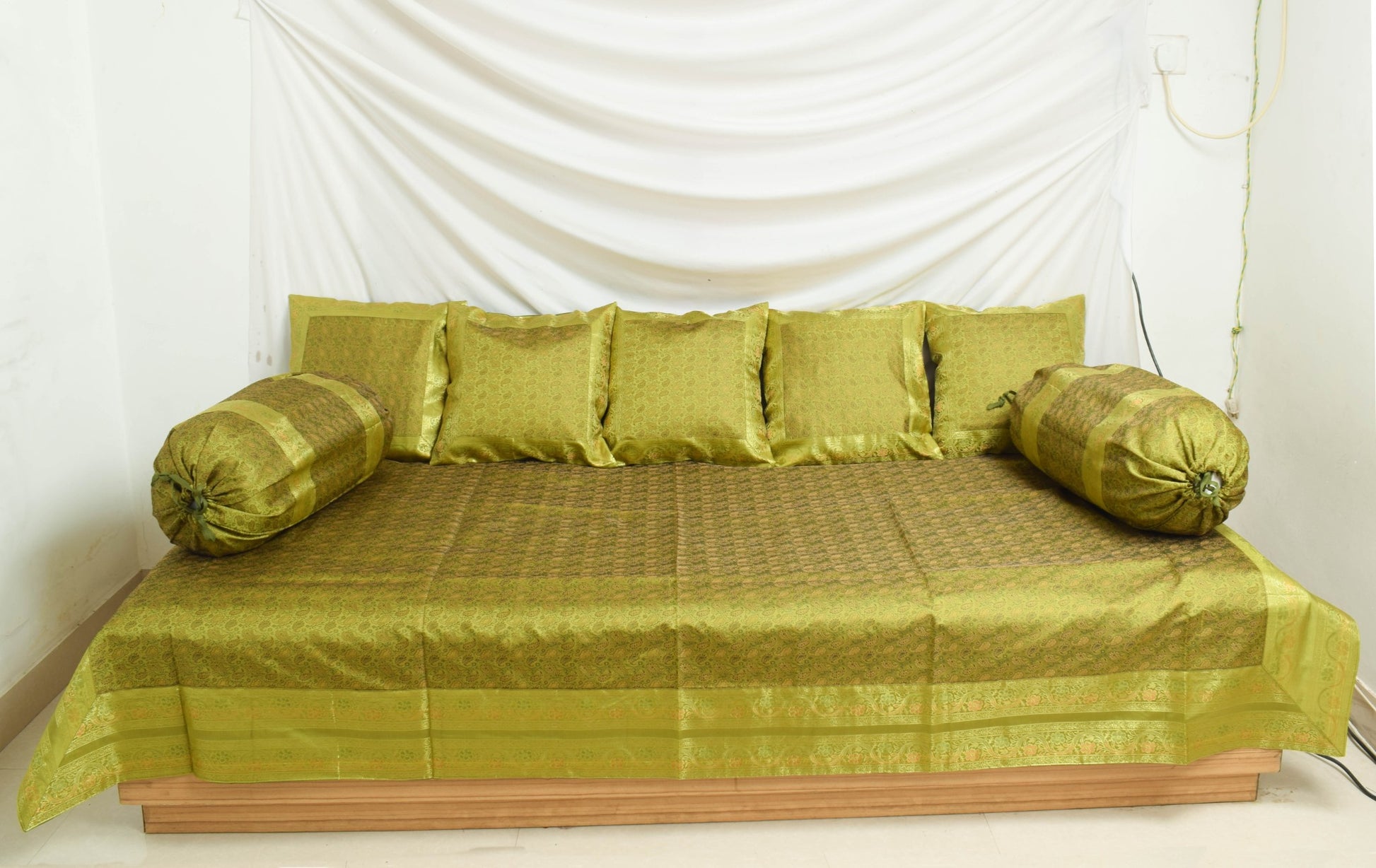 Banarasi Vastra Presents Diwan Set of 8 Piece in Banarasi Silk Fabric with Woven Zari Brocade Patch work in Below Dimensions: