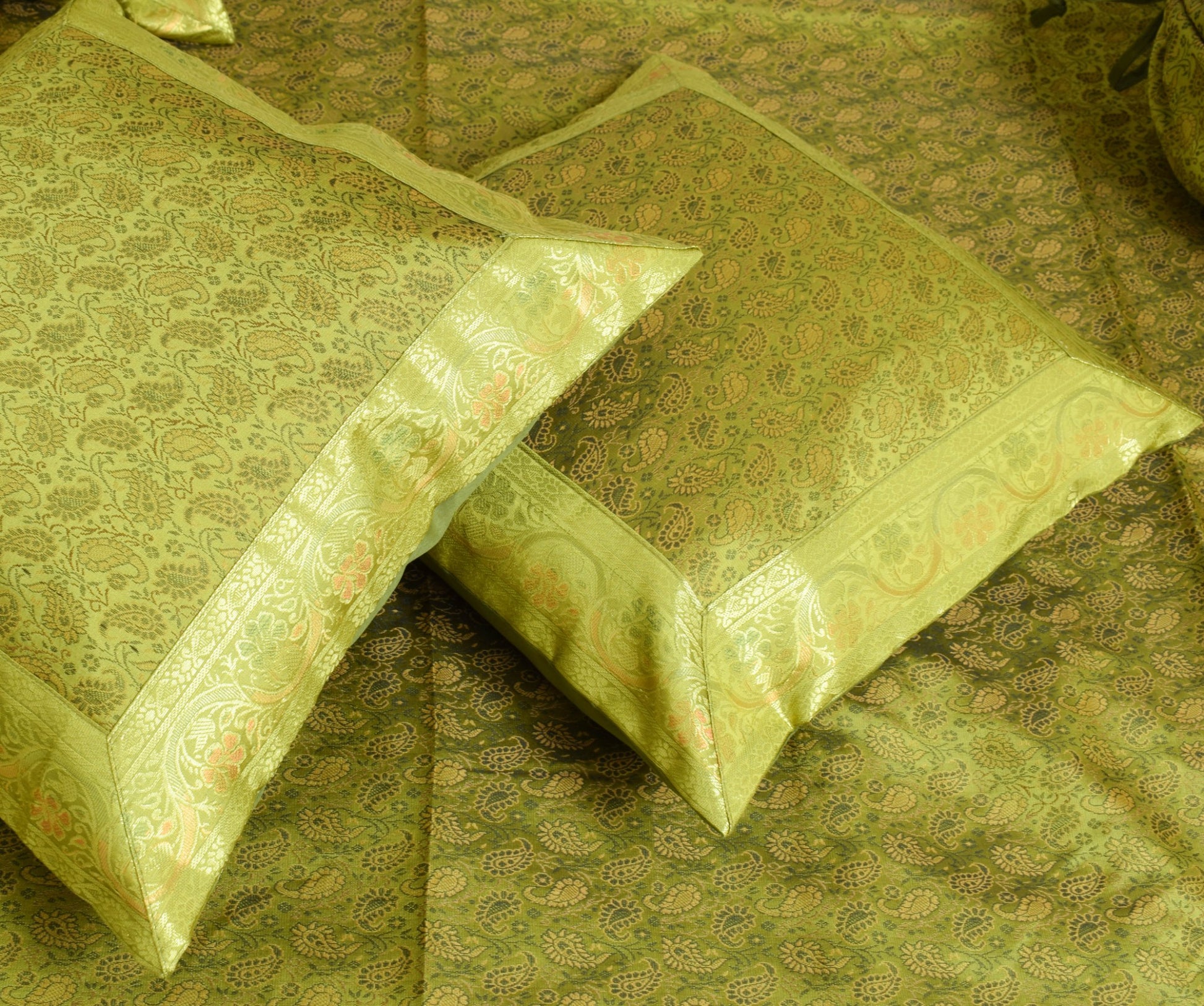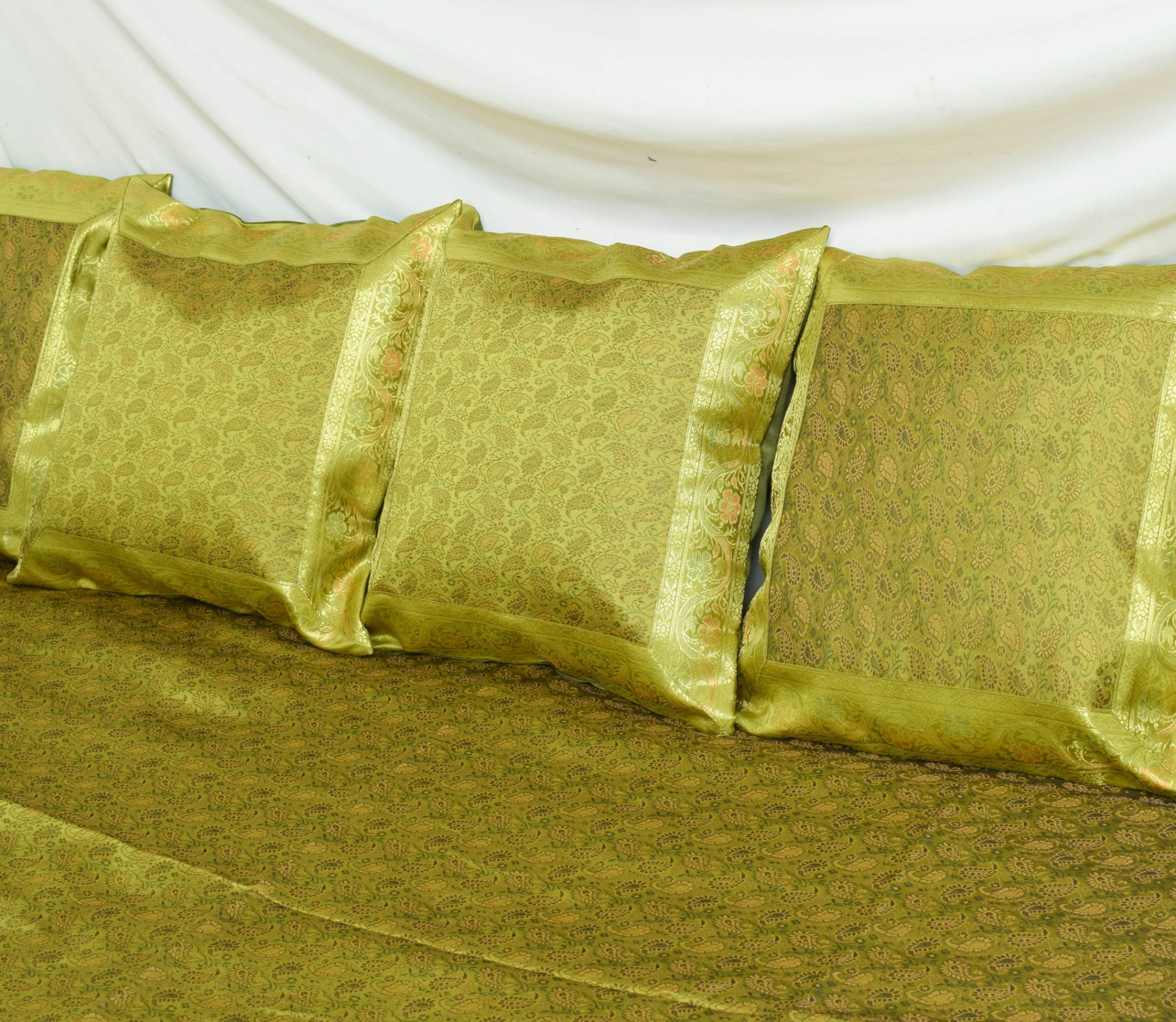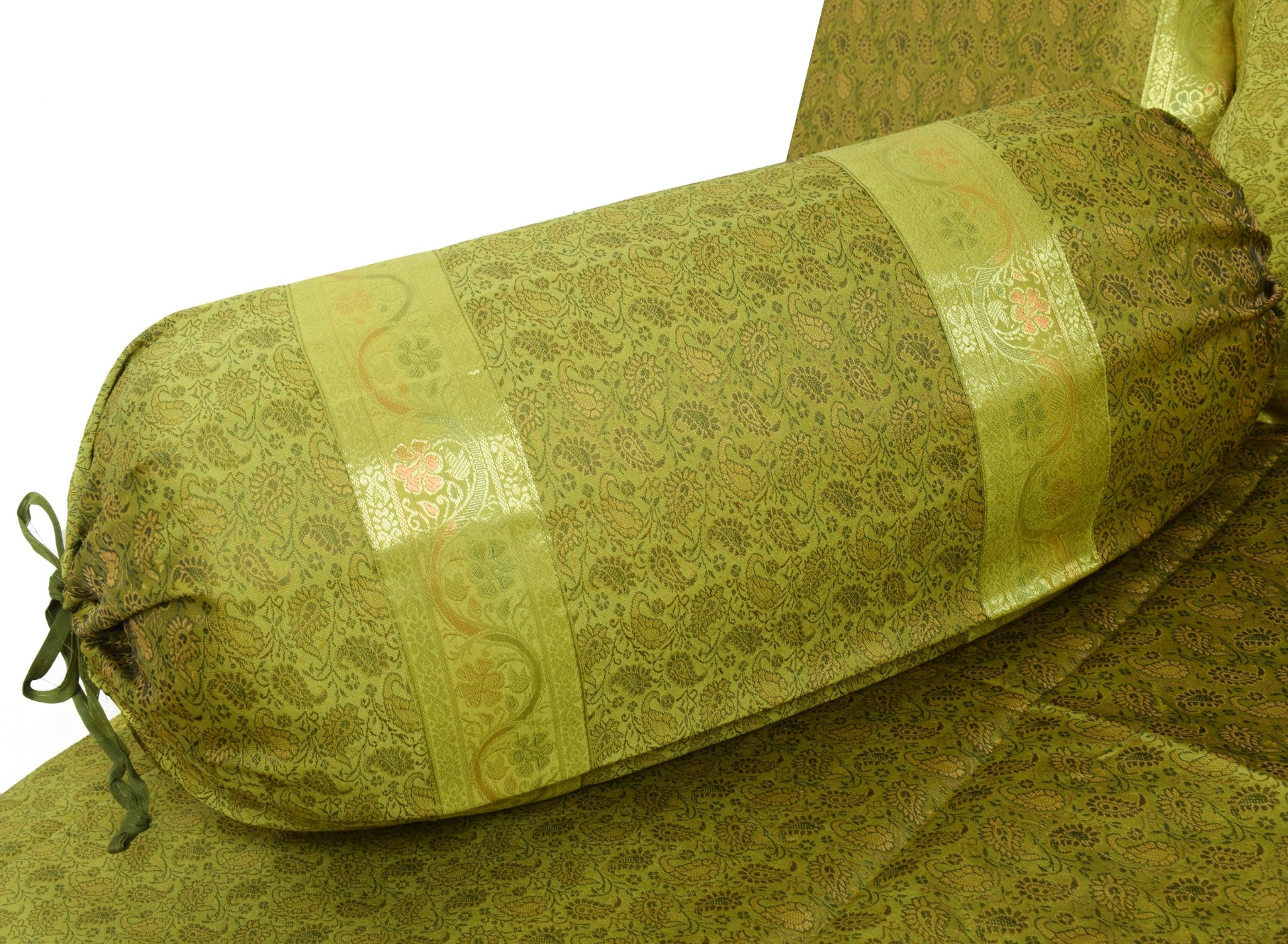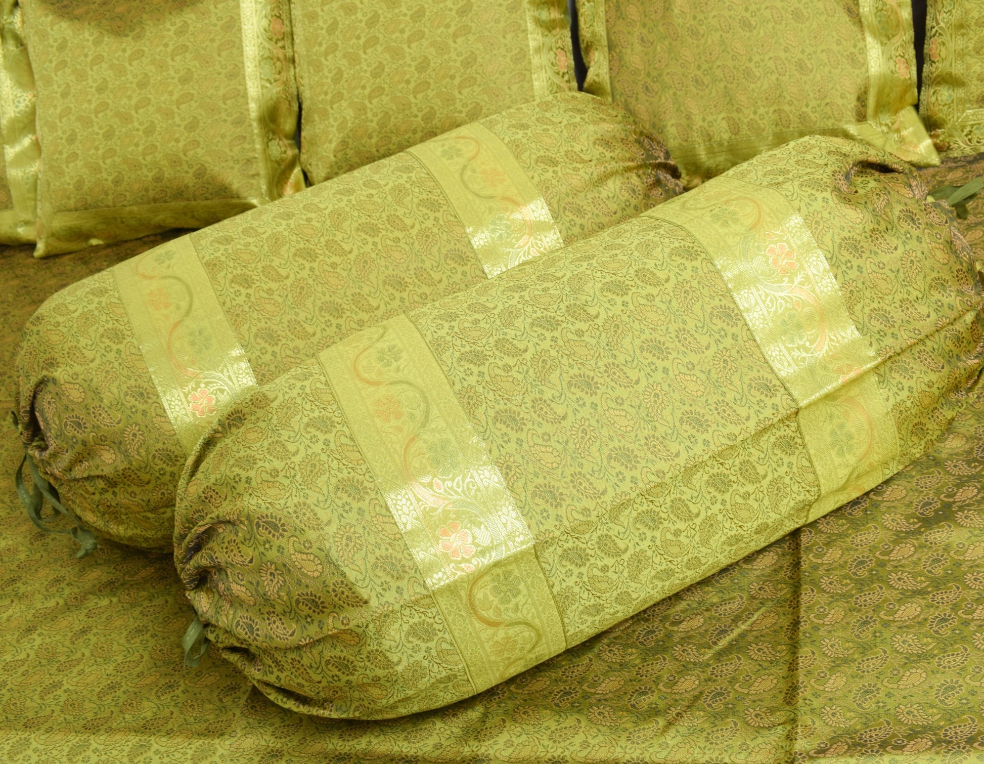 Banarasi Diwan Set Cushion & Bolster Cover Green Silk & Woven Zari Brocade