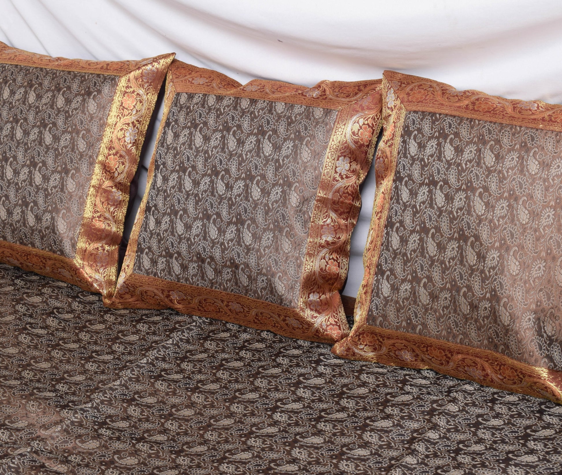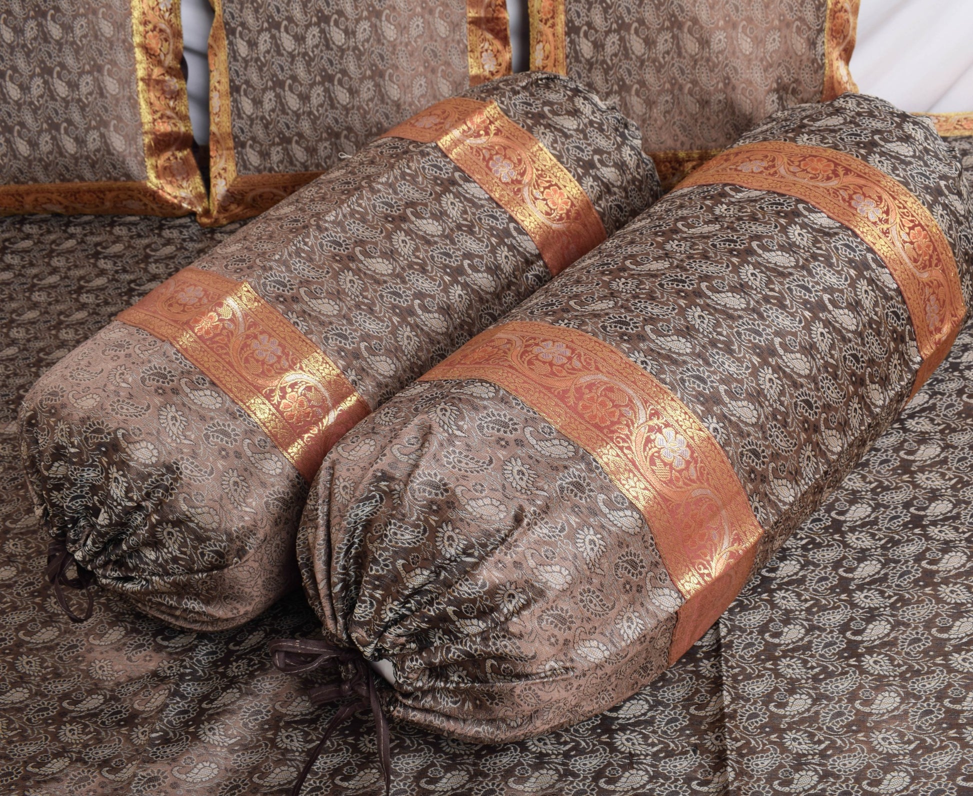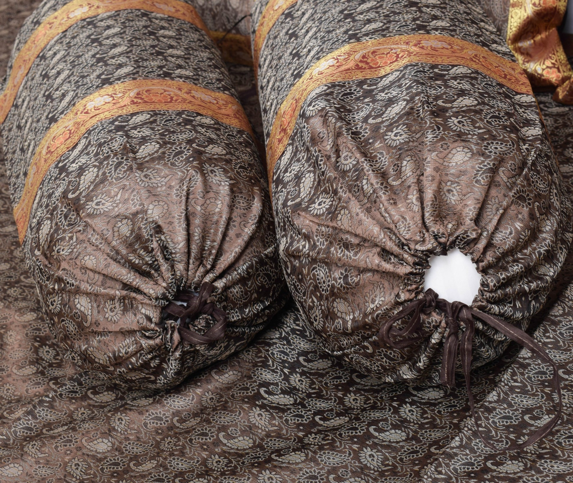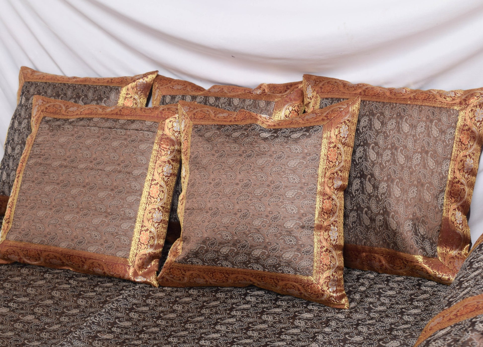 Banarasi Diwan Set Cushion & Bolster Cover Silk & Woven Zari Brocade Brown