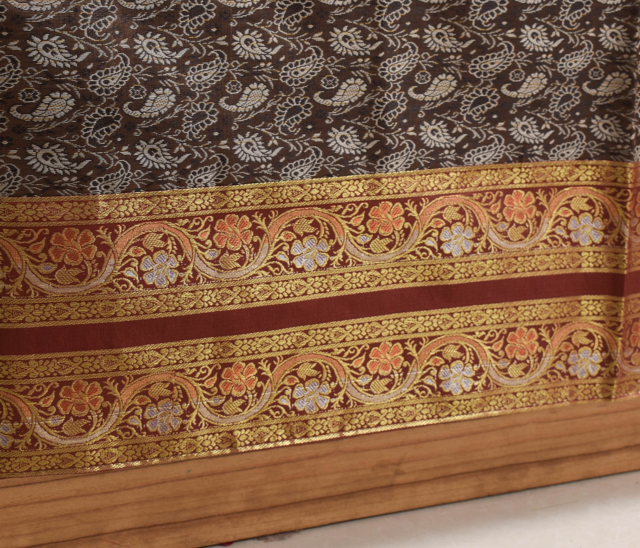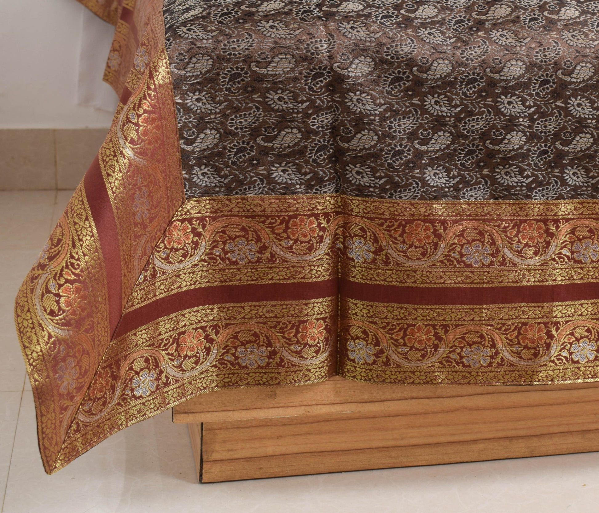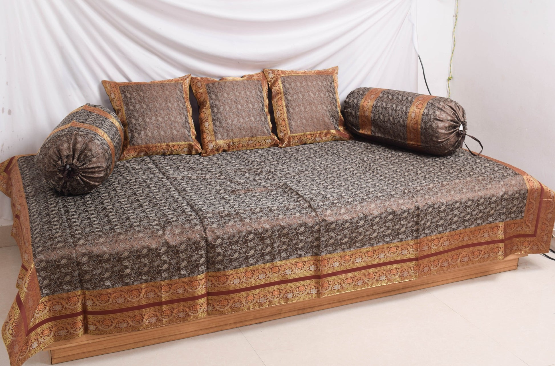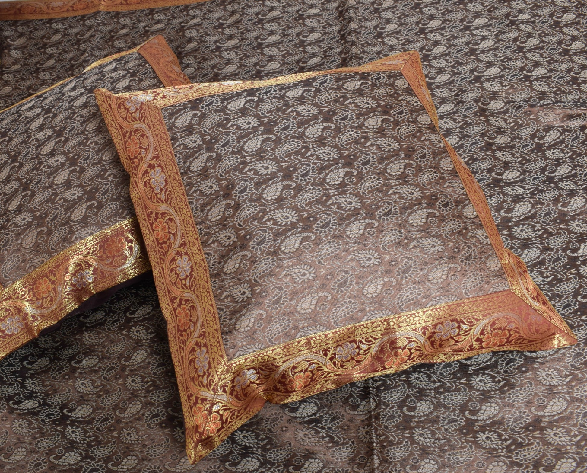 Banarasi Diwan Set Cushion & Bolster Cover Silk & Woven Zari Brocade Brown