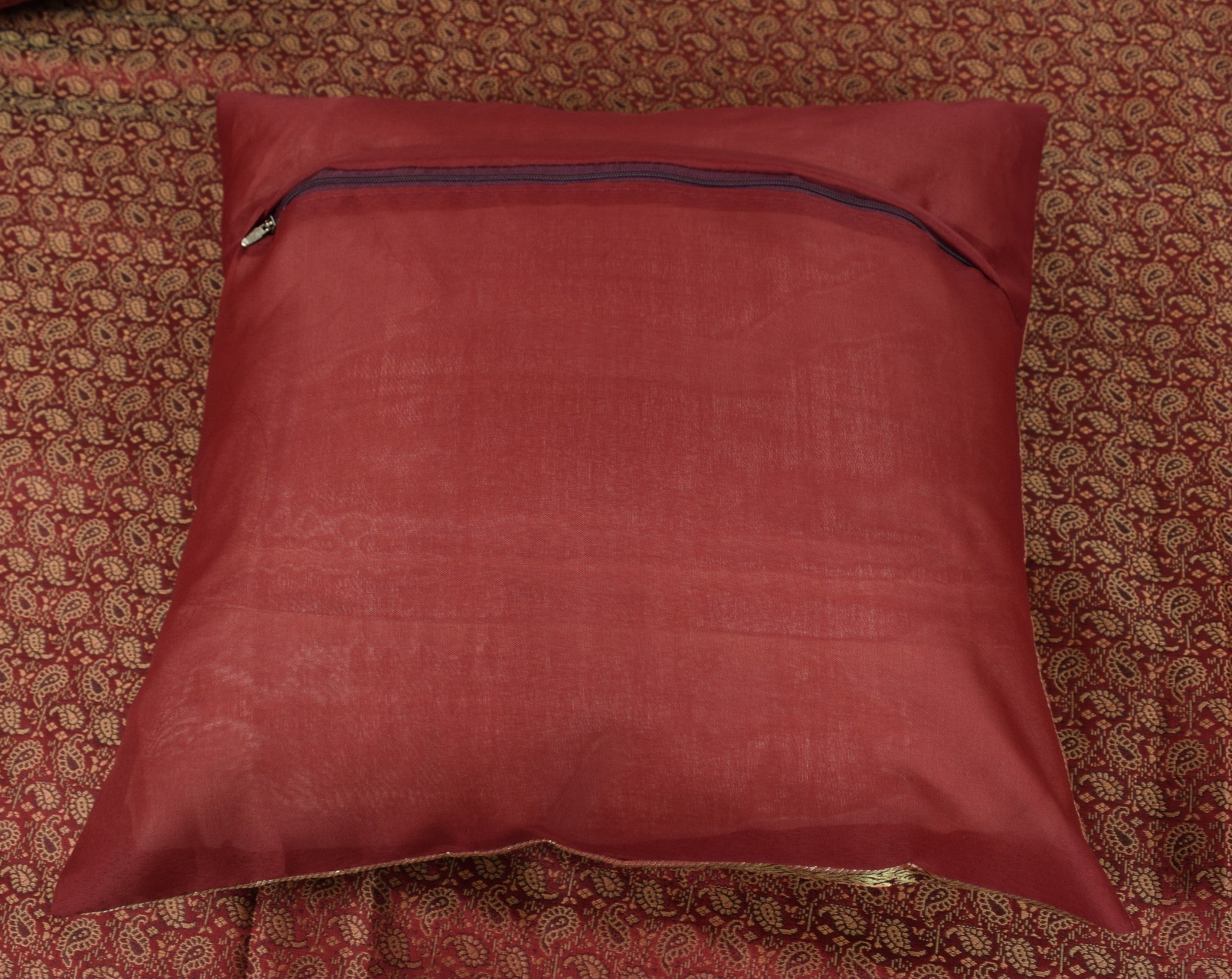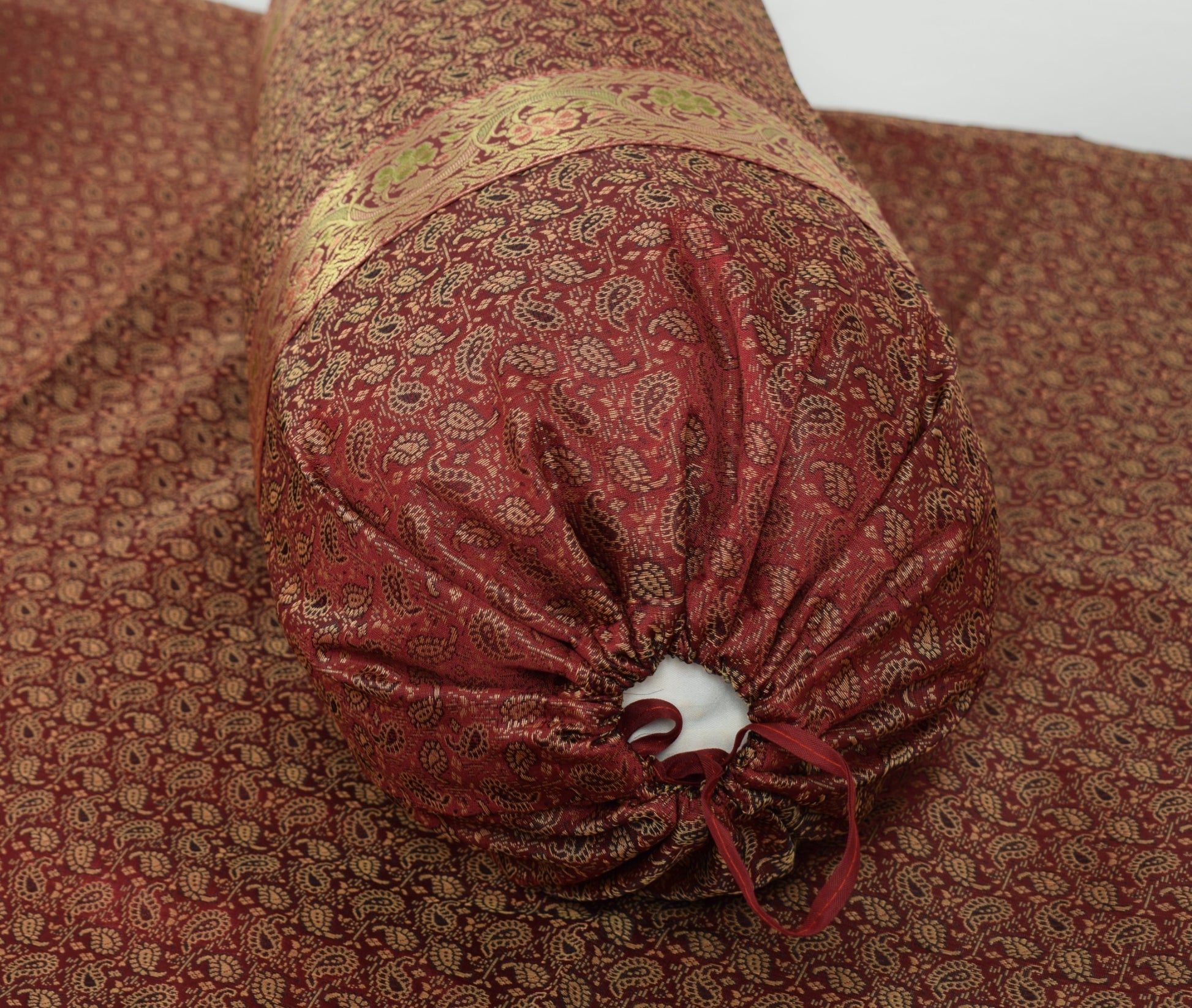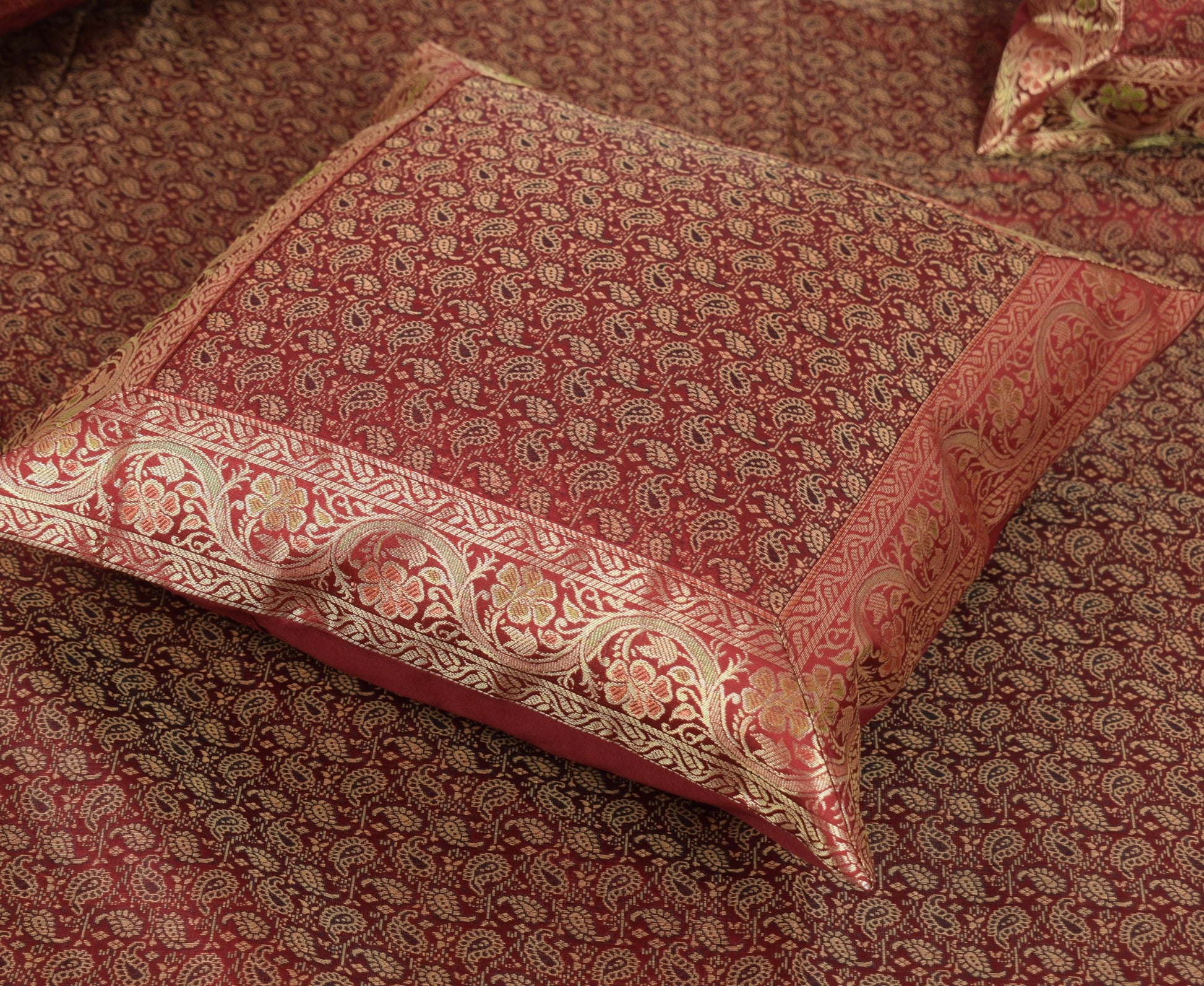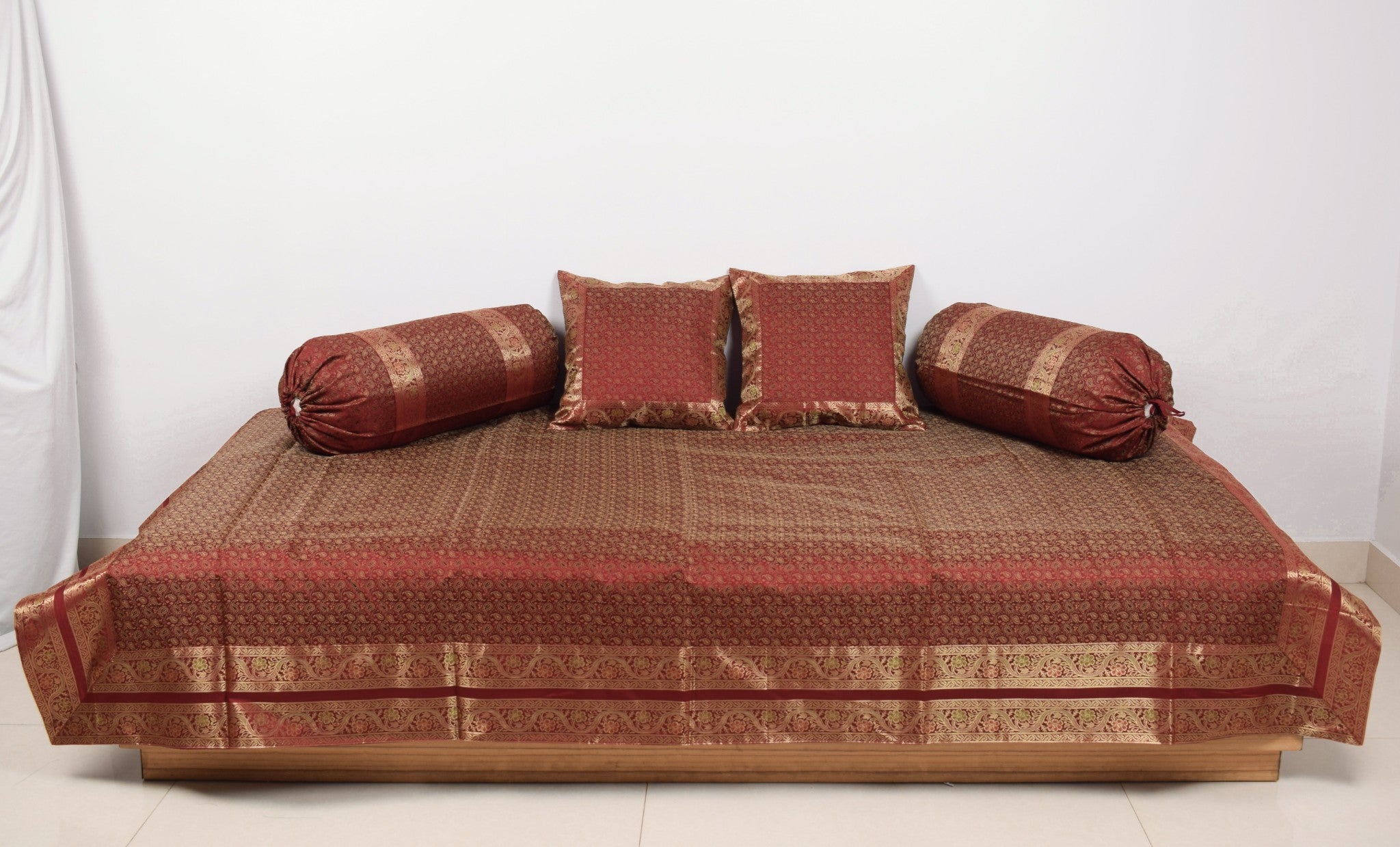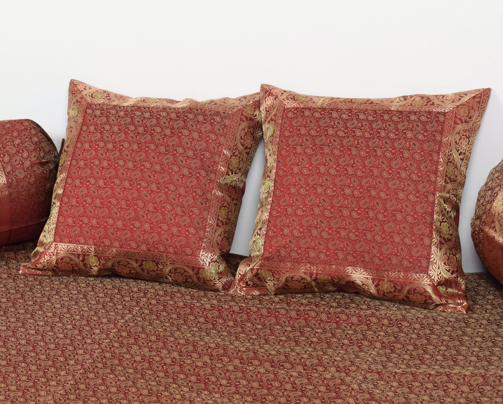 Banarasi Ethnic Maroon Diwan Set Cushion & Bolster Cover Silk Woven Zari Brocade