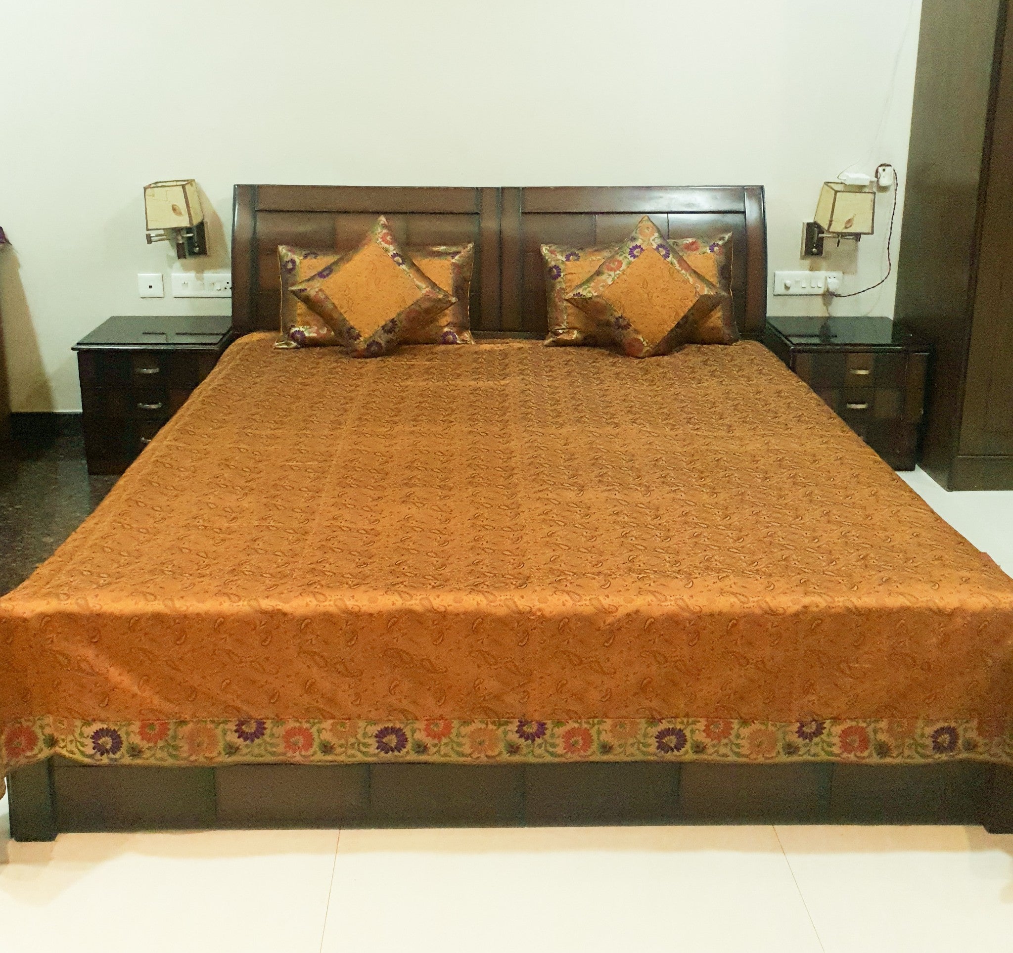 Banarasi Vastra Presents Bed Cover Set of 5 Piece in Banarasi Silk Fabric with Woven Zari Brocade Patch work in Below Dimensions:
