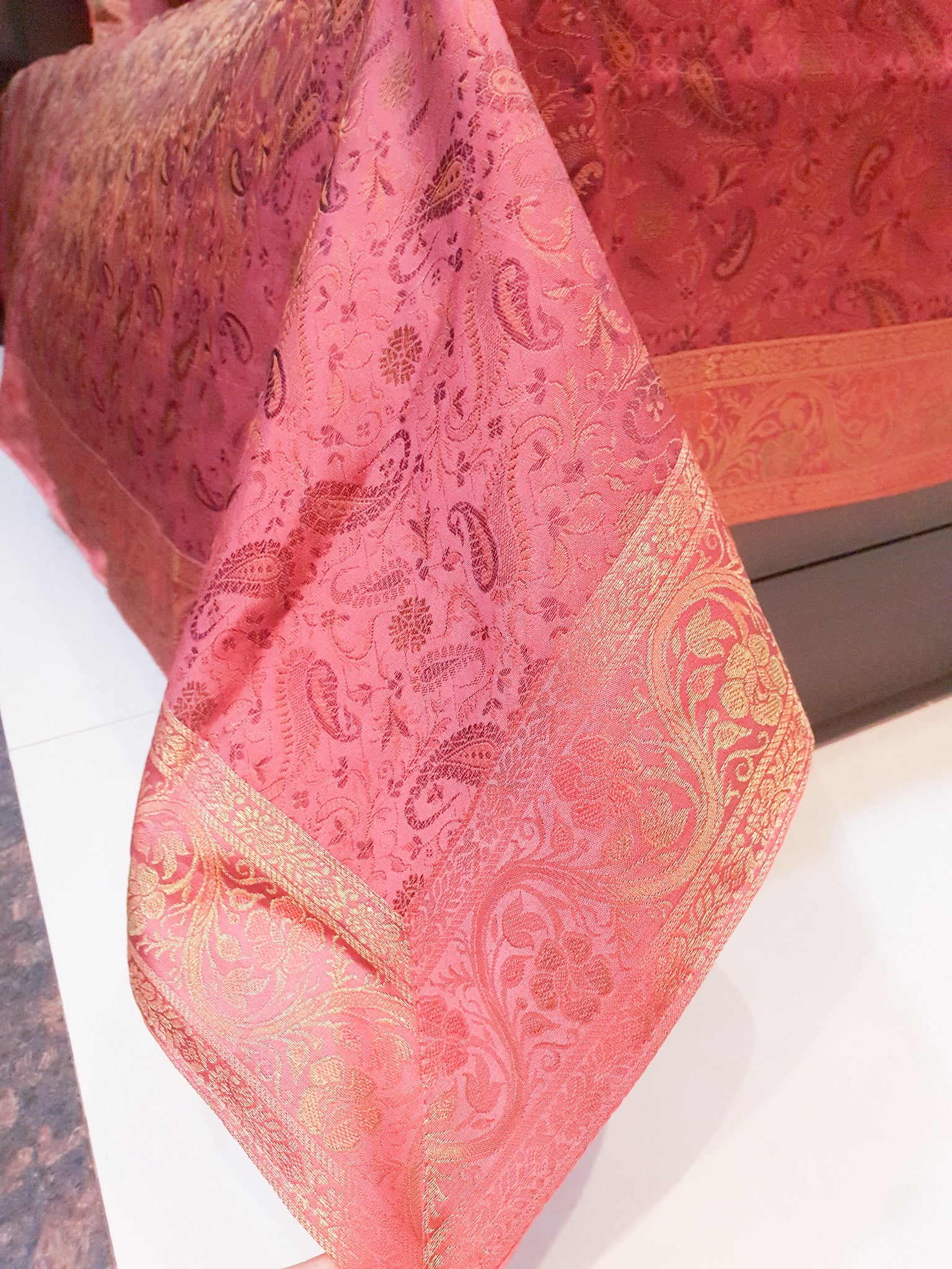 Banarasi Pink Bed Cushion & Pillow Cover Set Art Silk Woven Brocade Indian Gift