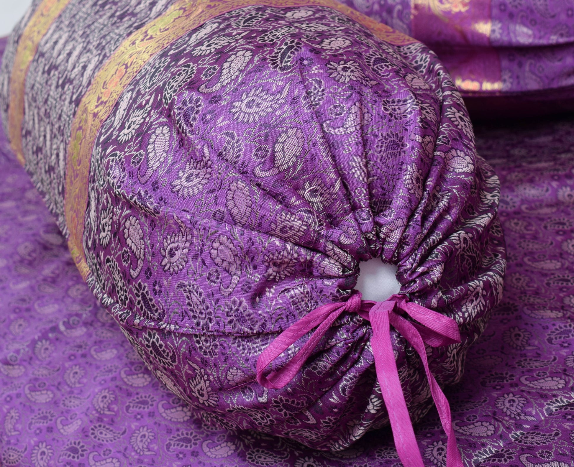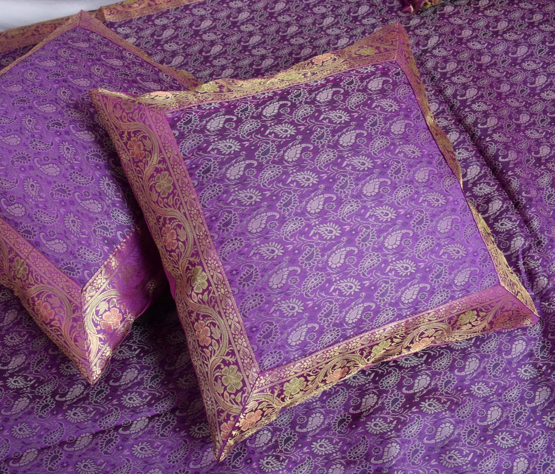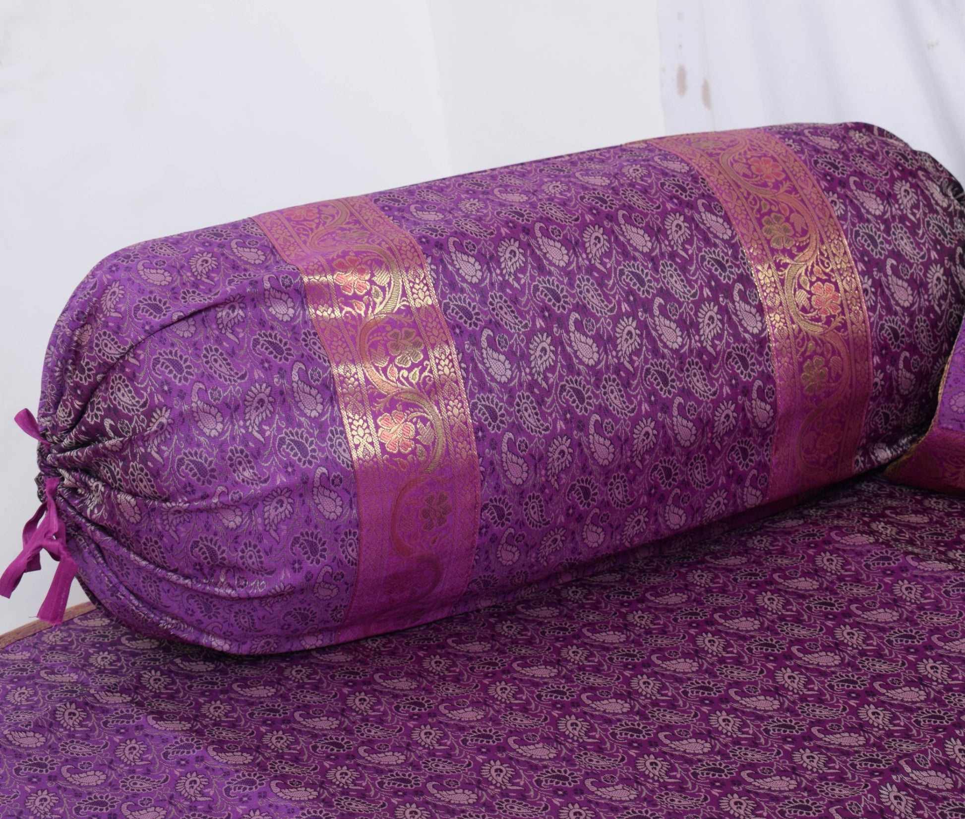 Banarasi Purple Diwan Set Cushion & Bolster Cover Silk & Woven Zari Brocade
